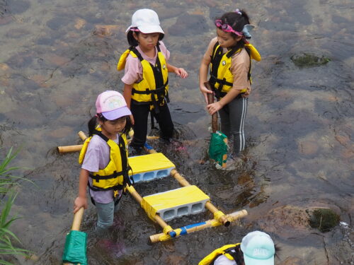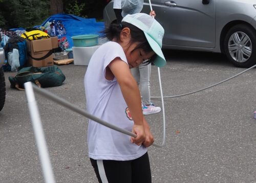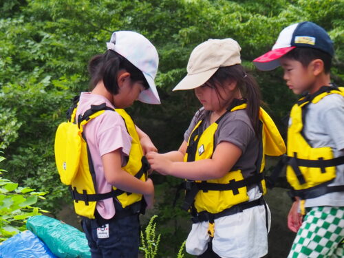 自分達でテントを設営したり、ライフジャケットを装着したり。