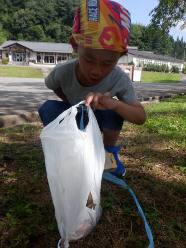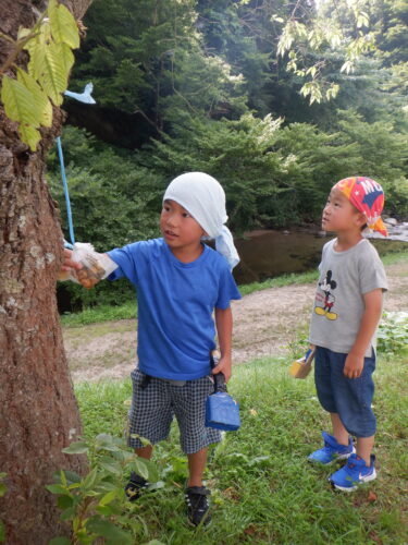 生き物はいませんでしたが、カブトムシにクワガタ、キリギリス等たくさん見つけていました。