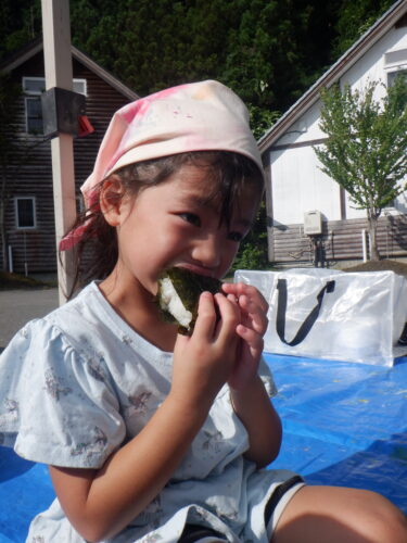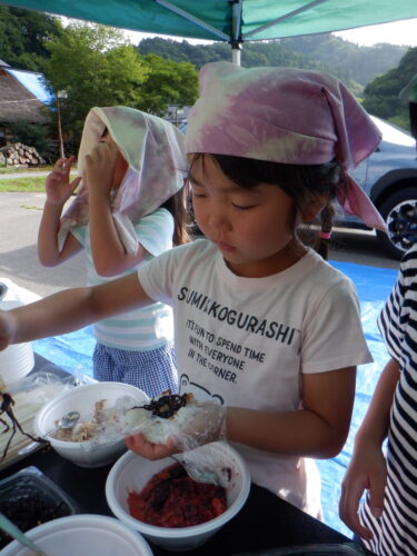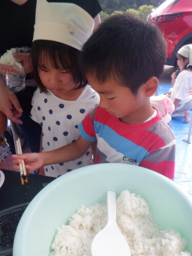 自分でオリジナルおにぎりを握っていきます。