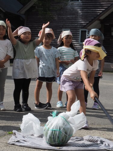 よし!スイカ割りをして食べよう!!