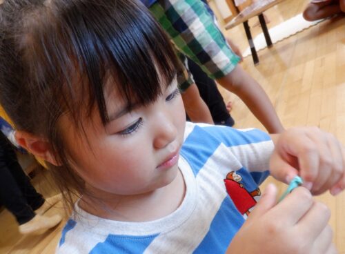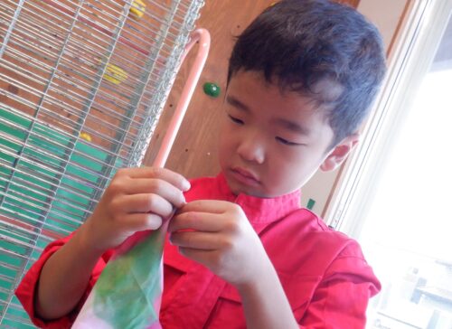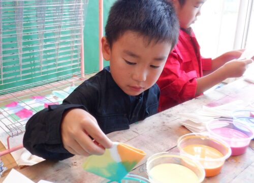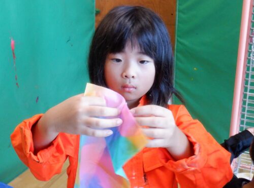 先日、秘密の活動の中で染め紙遊びを行いました。