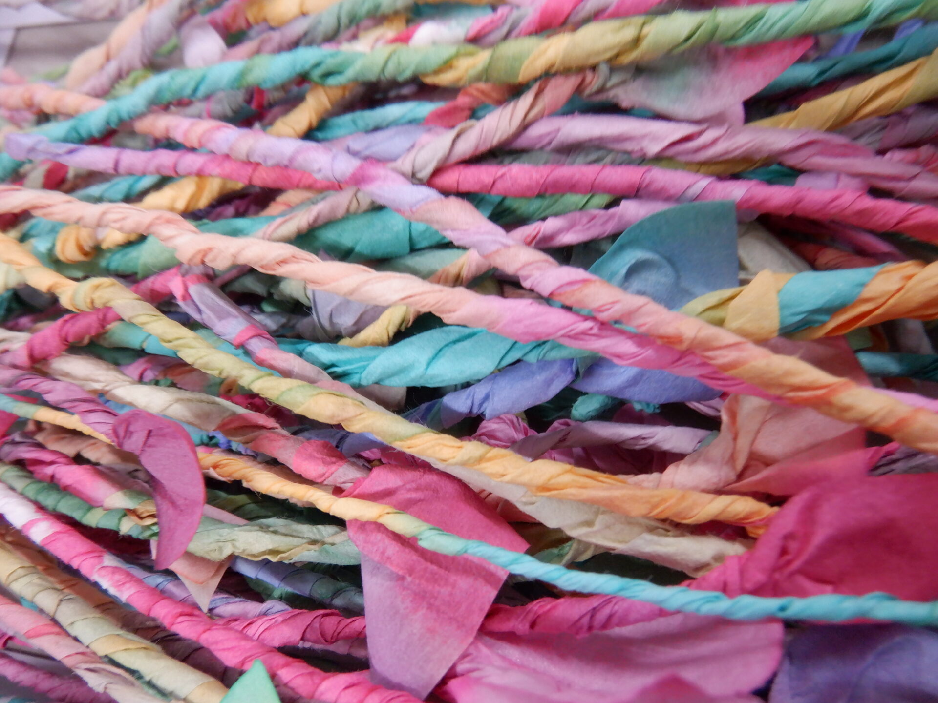 その染め紙を作品として使うのは勿論ですが、余った切れ端も無駄にはしません!