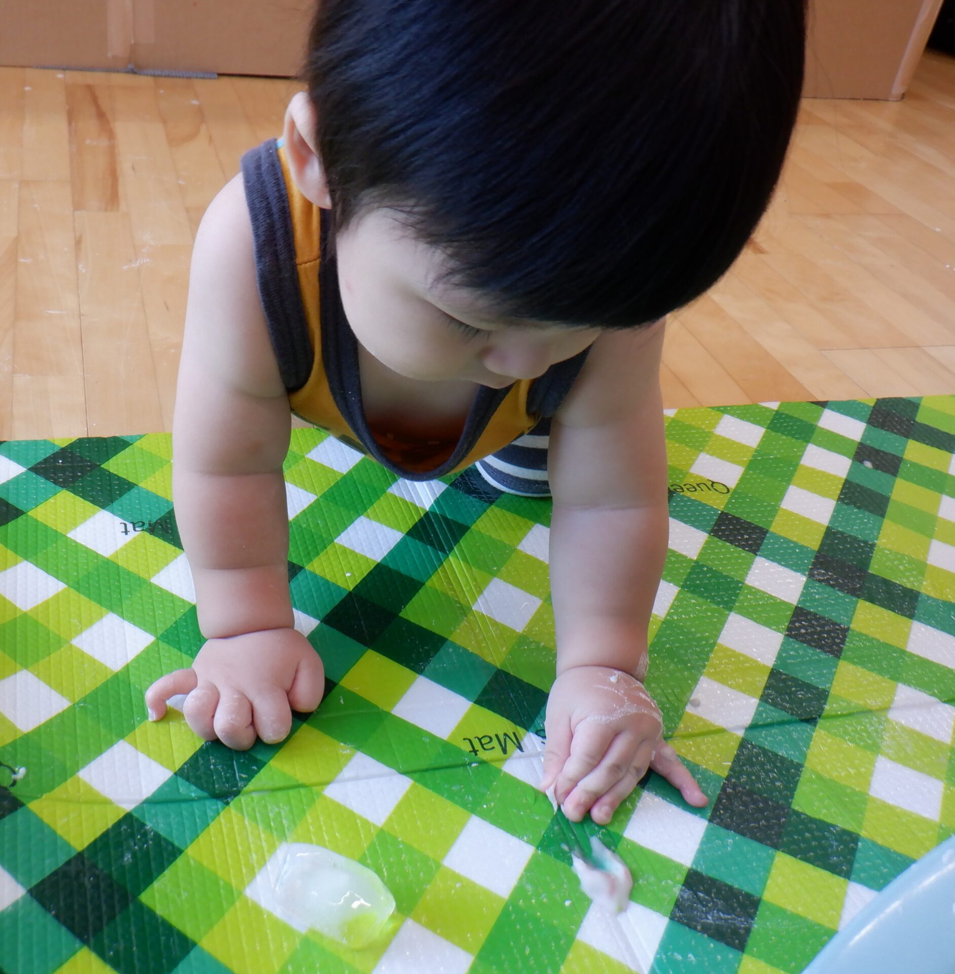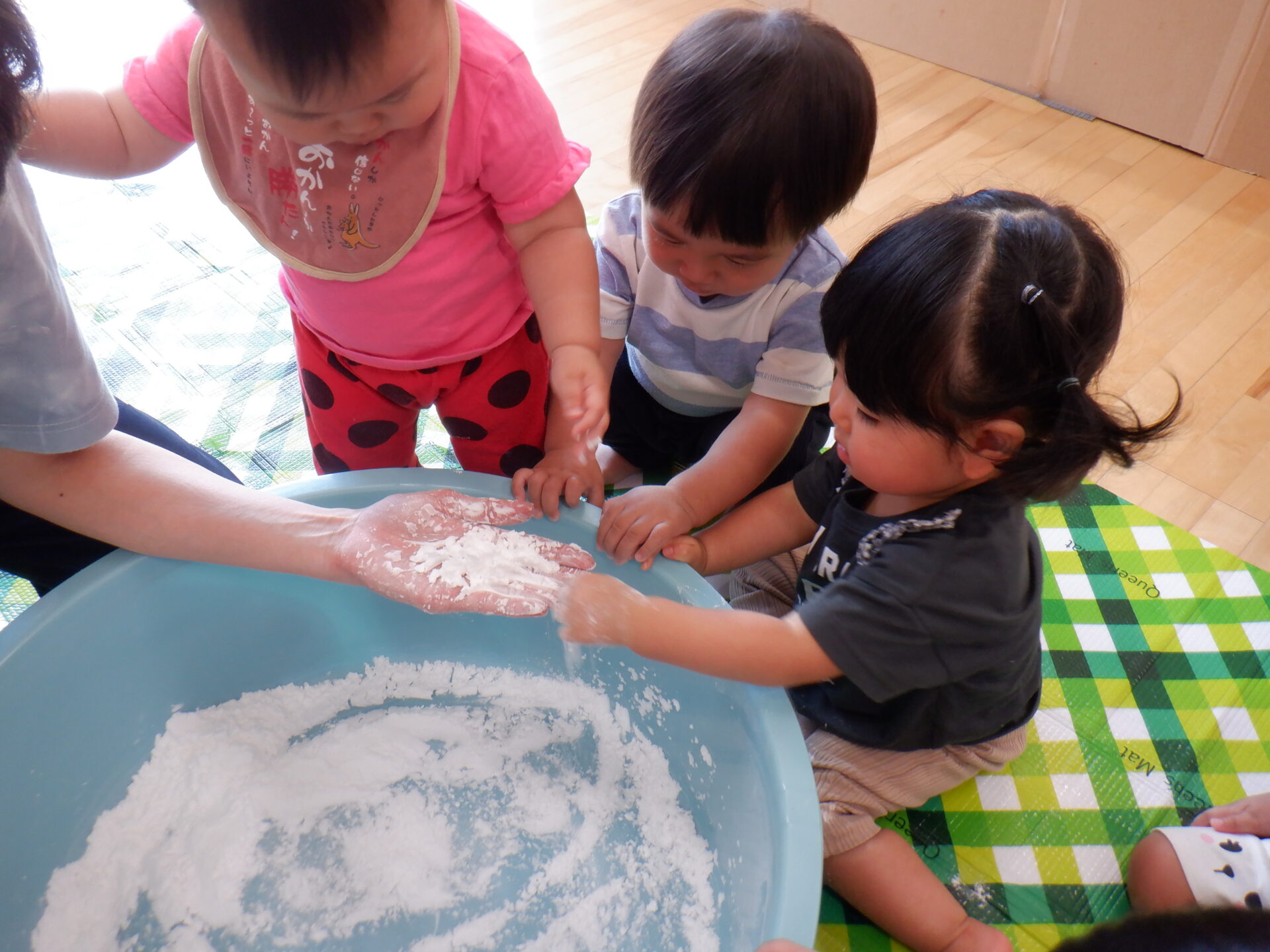 今回は片栗粉で遊びました。