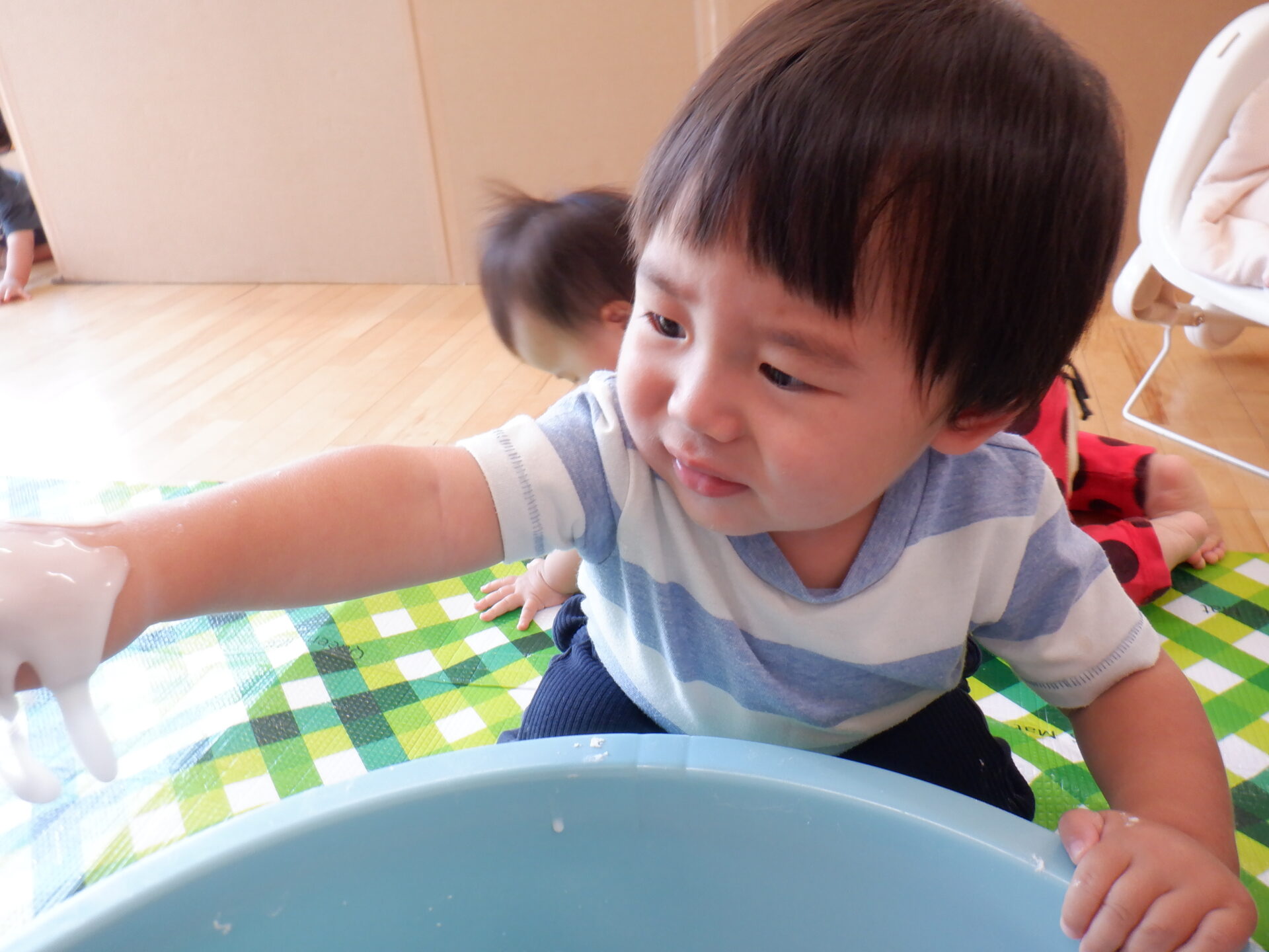不思議な感触に「なんだこれ~」という表情をする子など、いろいろな反応がみられました。