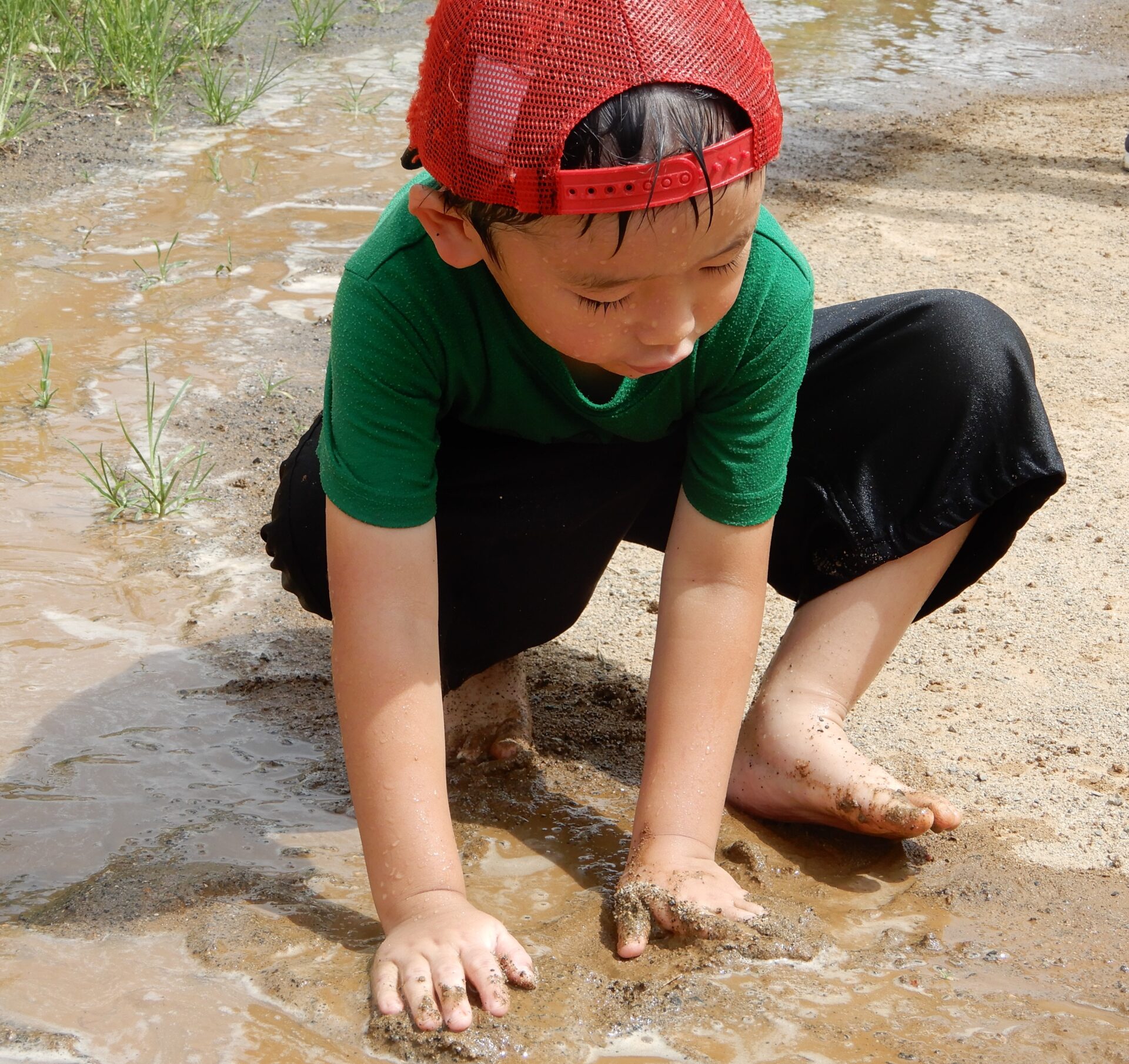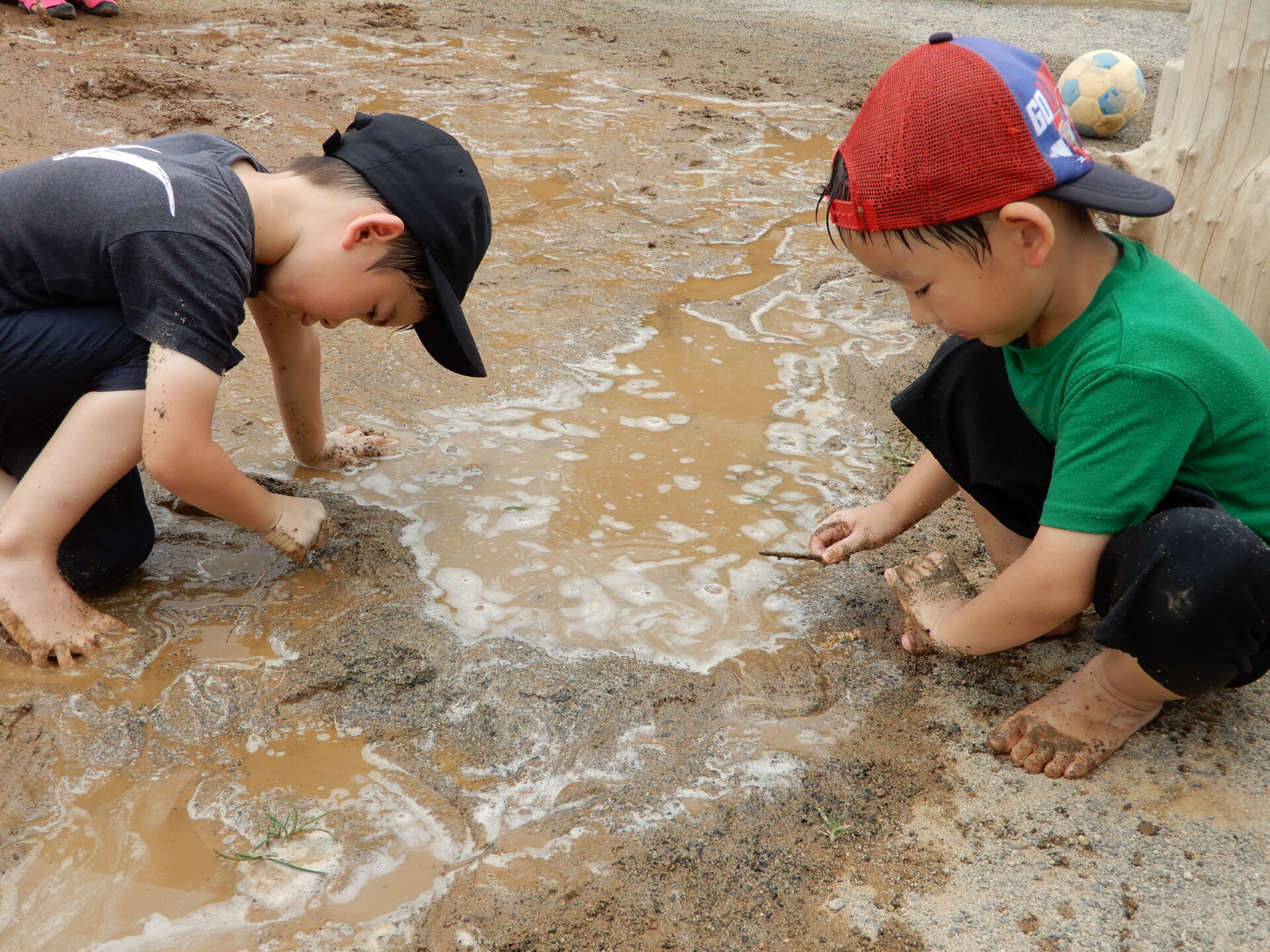 この時とばかりに・・水遊びでできた川を見つけた二人