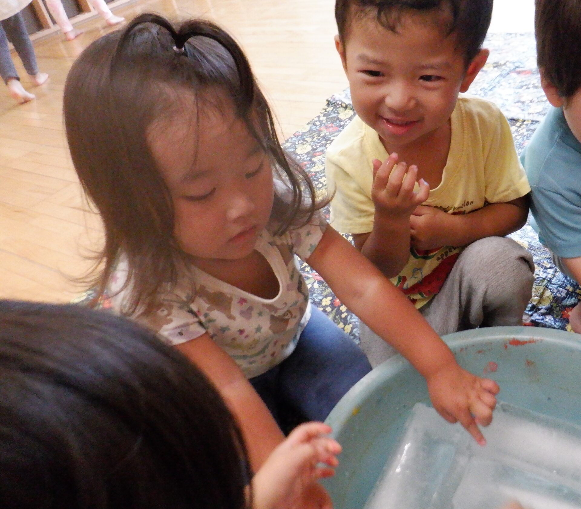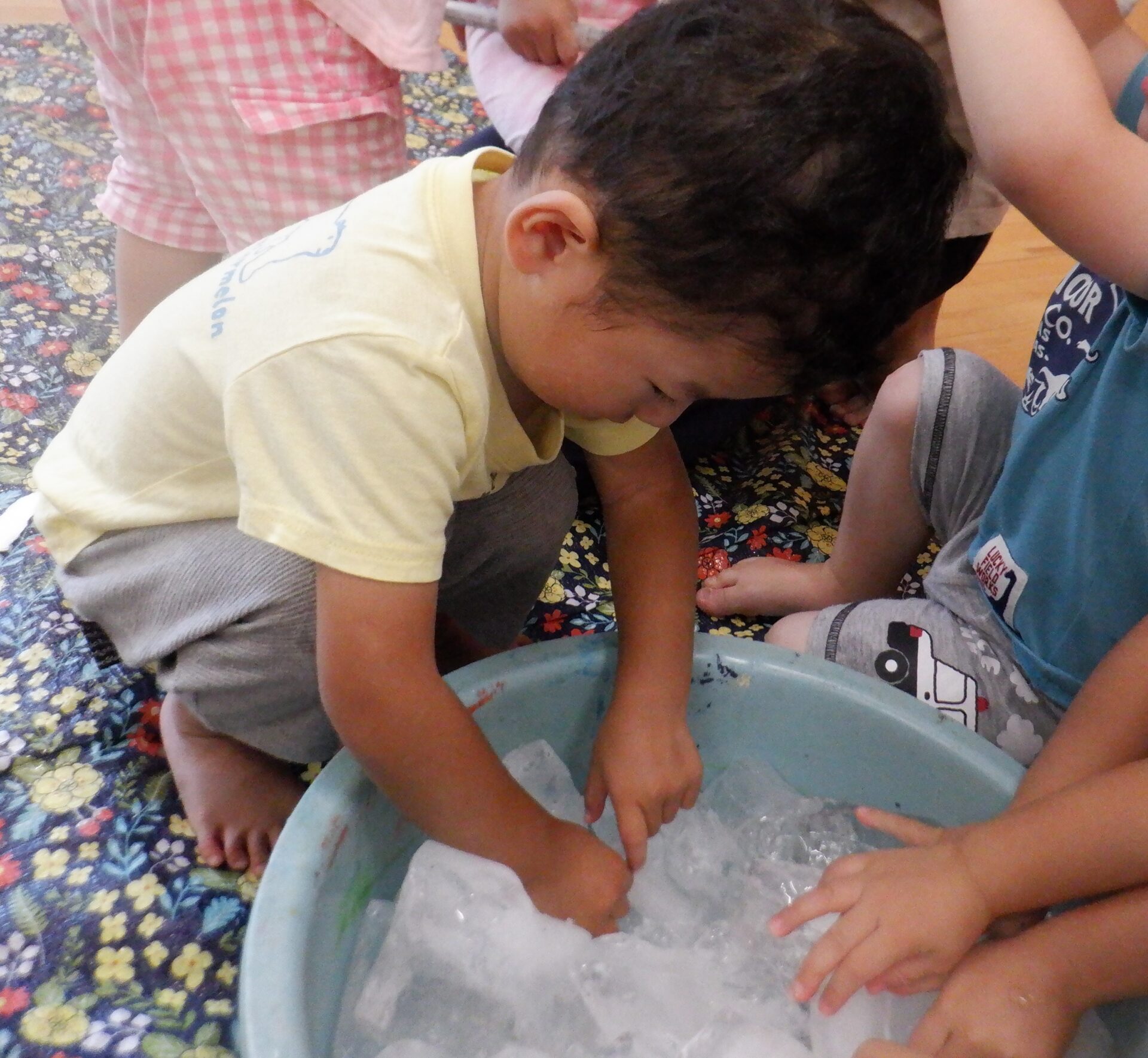 氷を観察してみたり、ちょんちょんと触ってみたり・・。