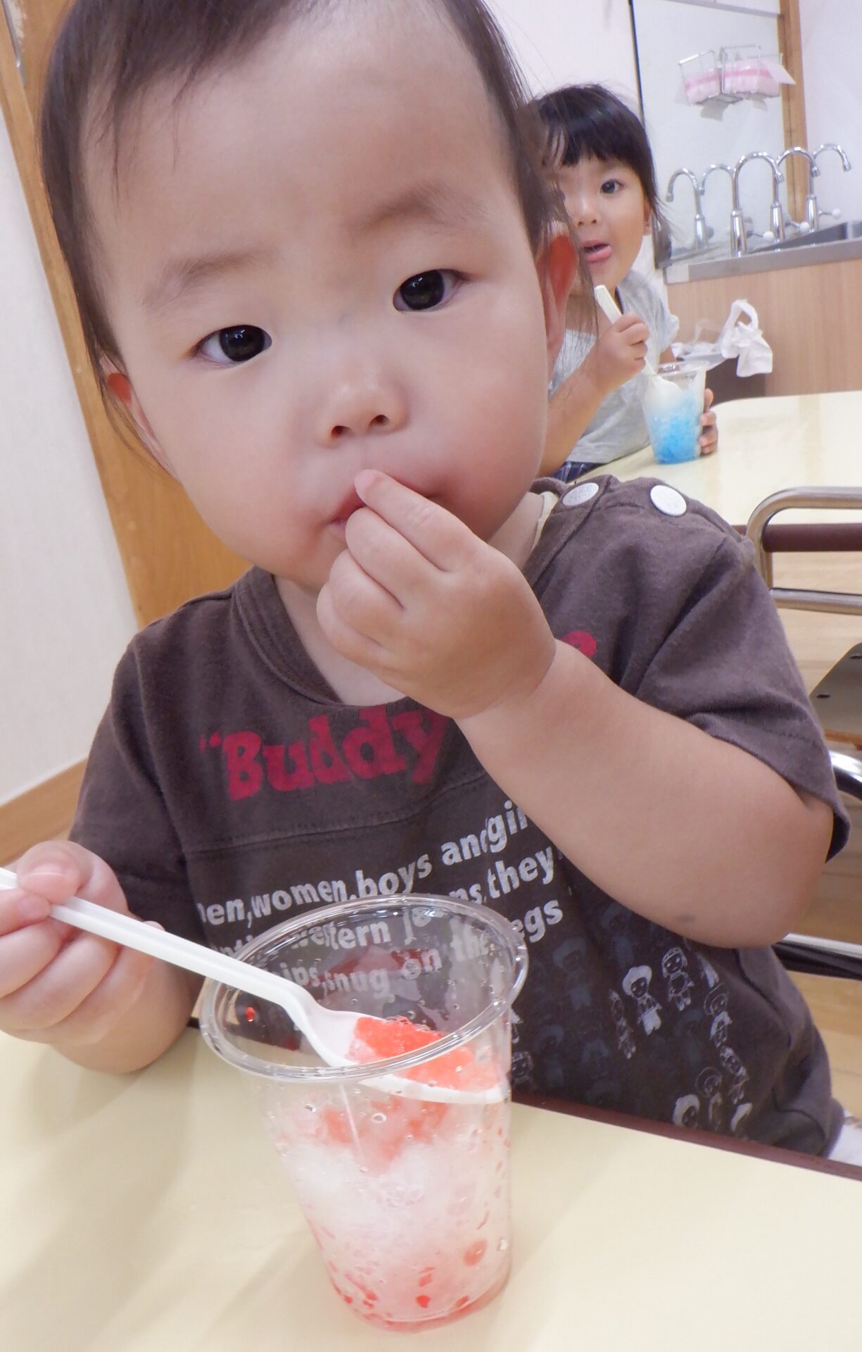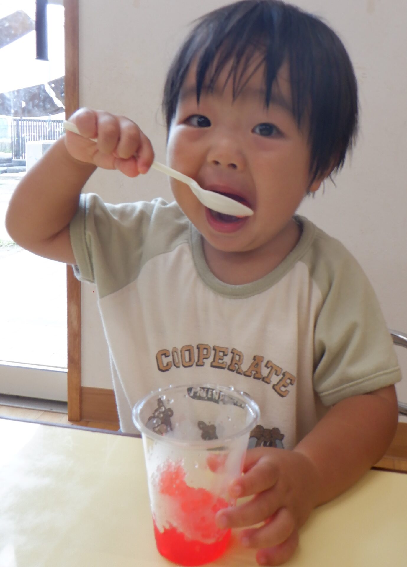 感触あそびで氷を触って冷たさを感じてきましたが、今回は実際に食べてみることにしました。