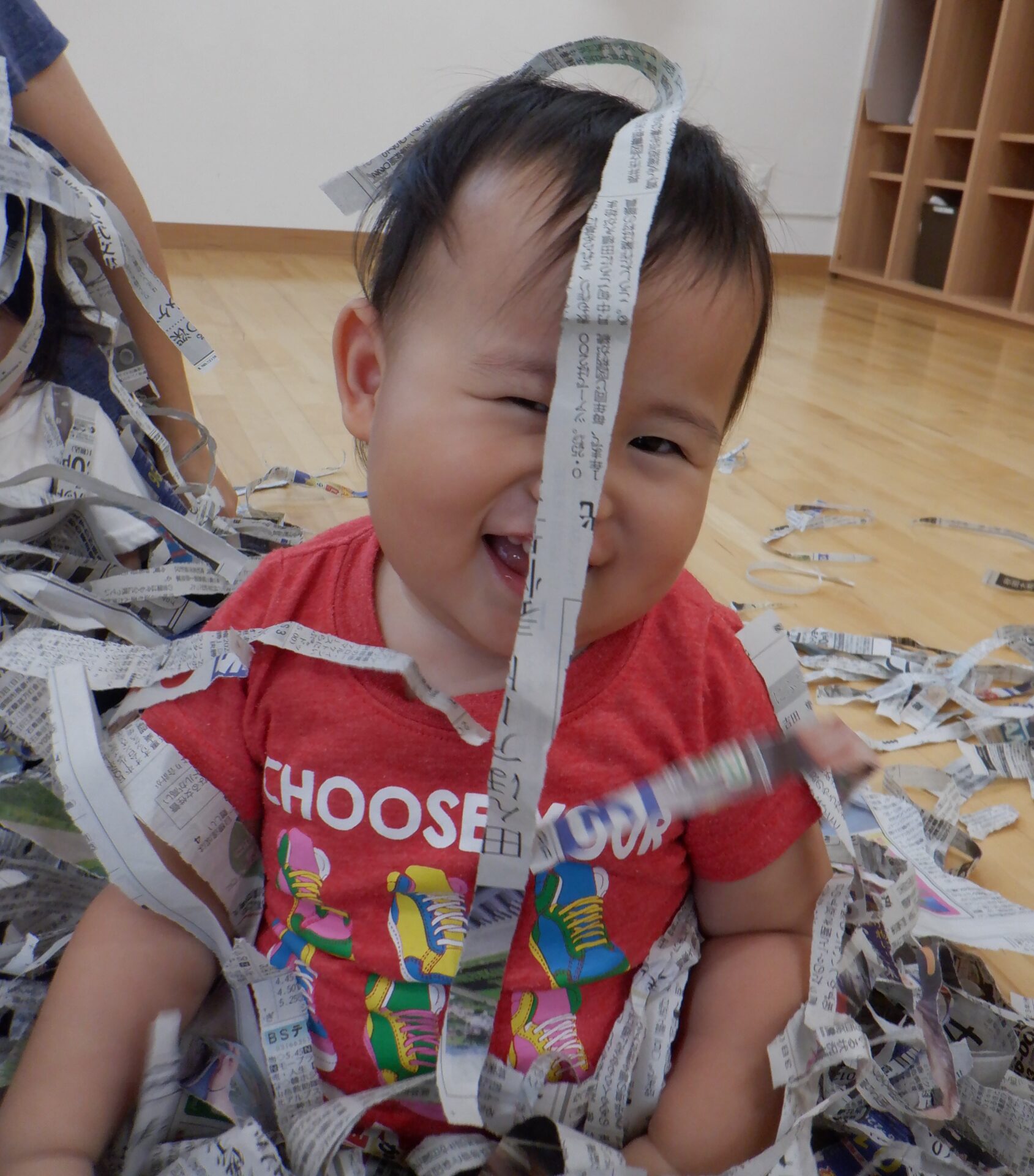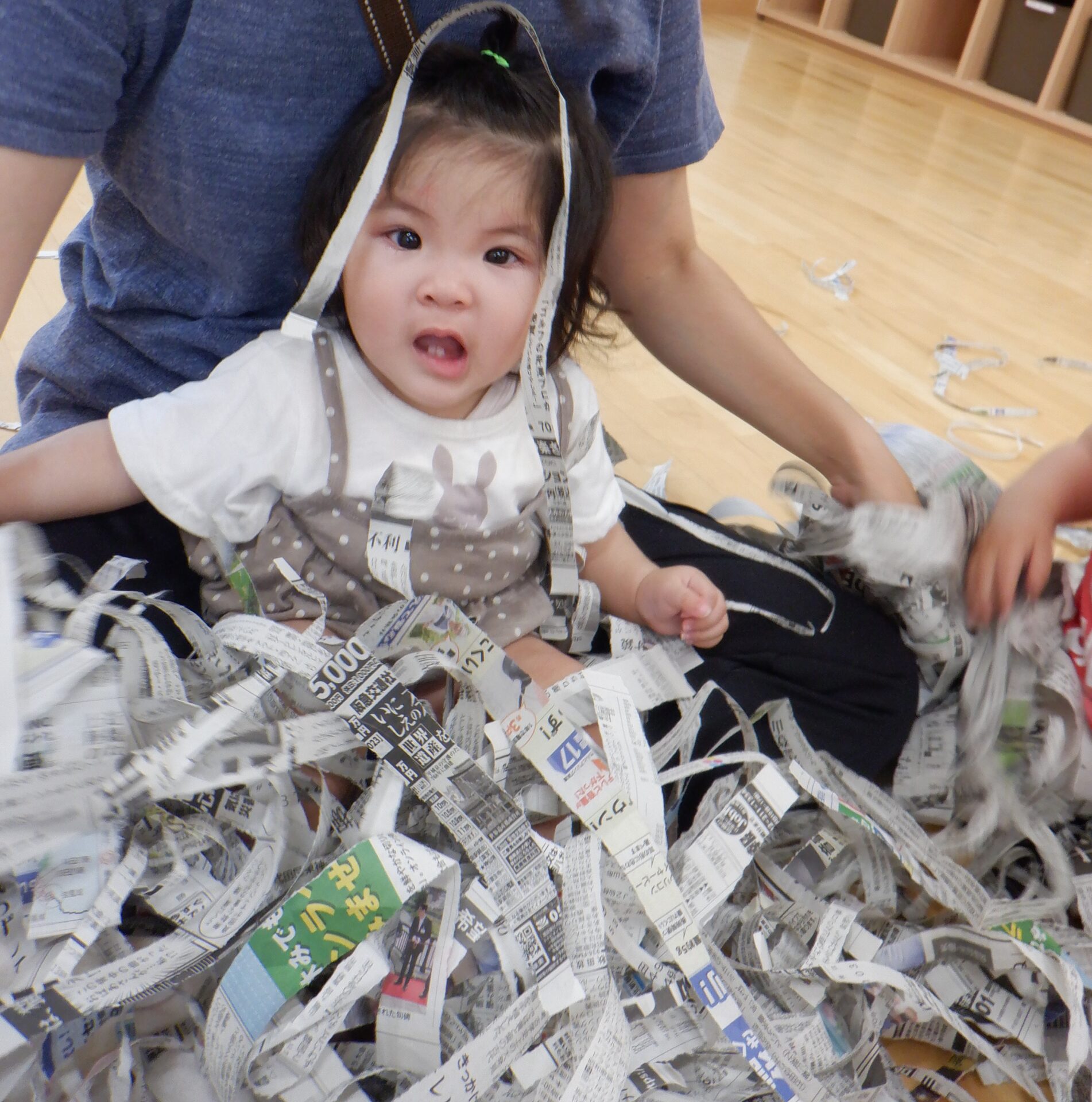 ふわふわの新聞紙の感触に笑顔を見せる子どもたちでした。