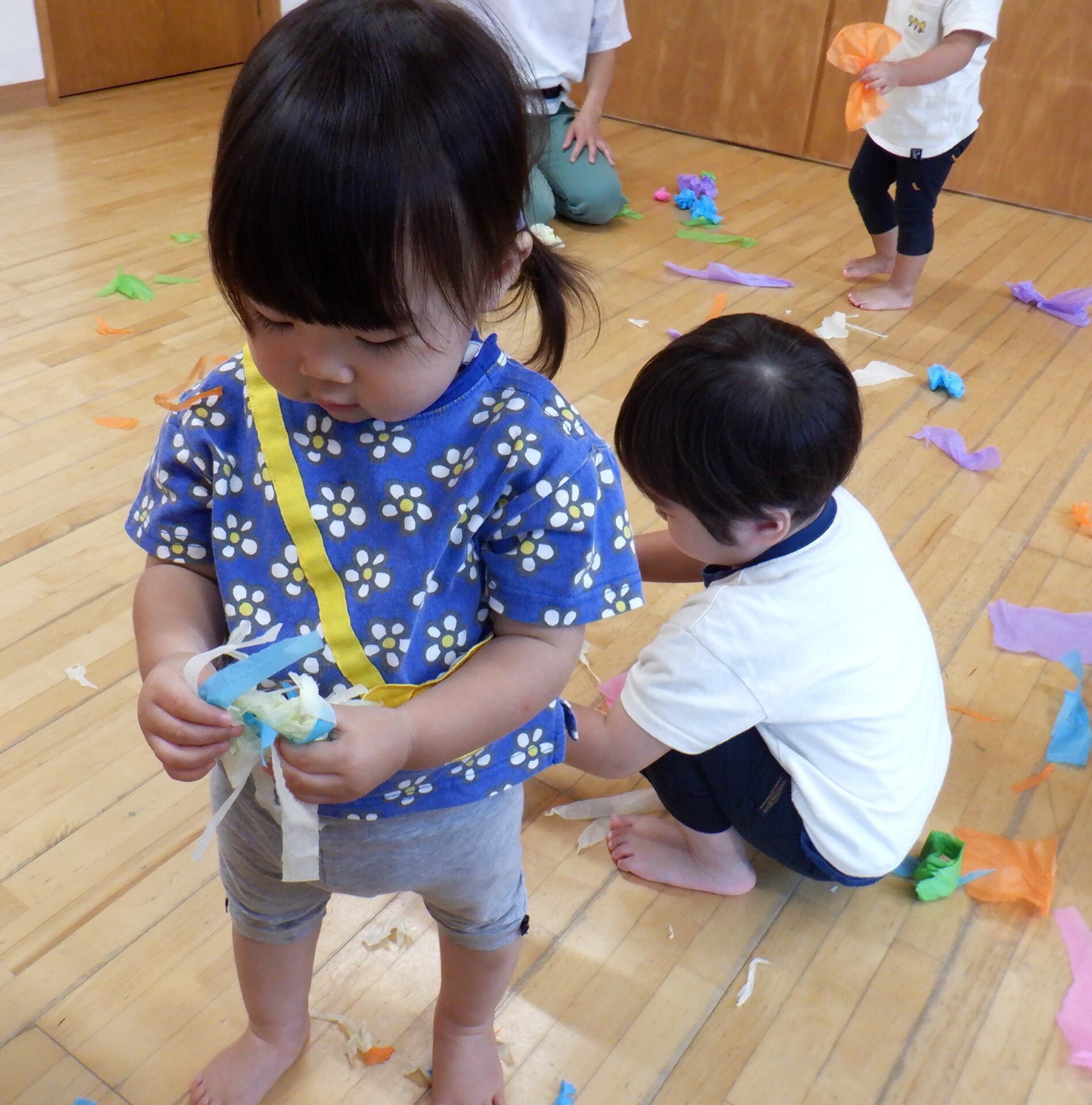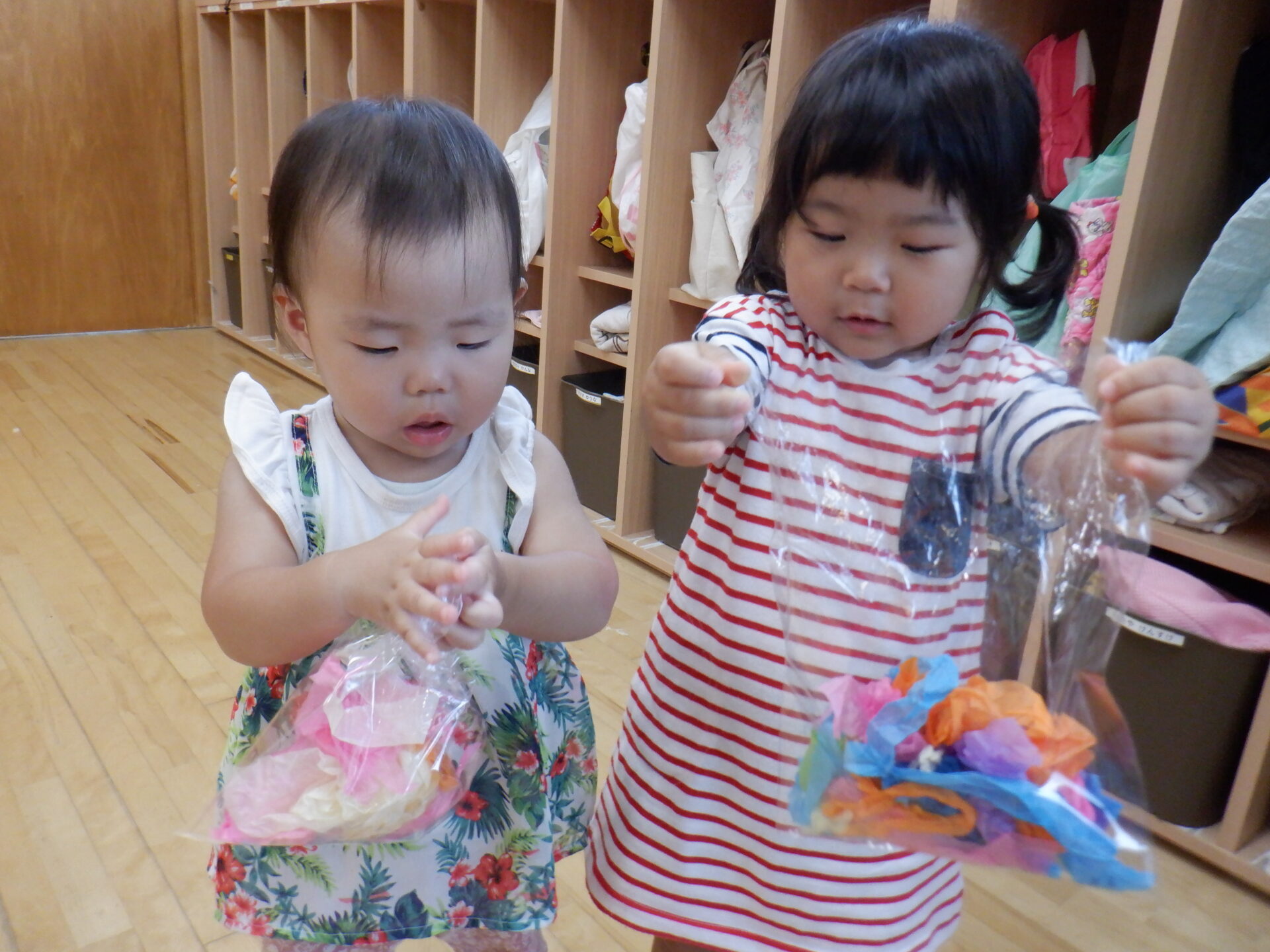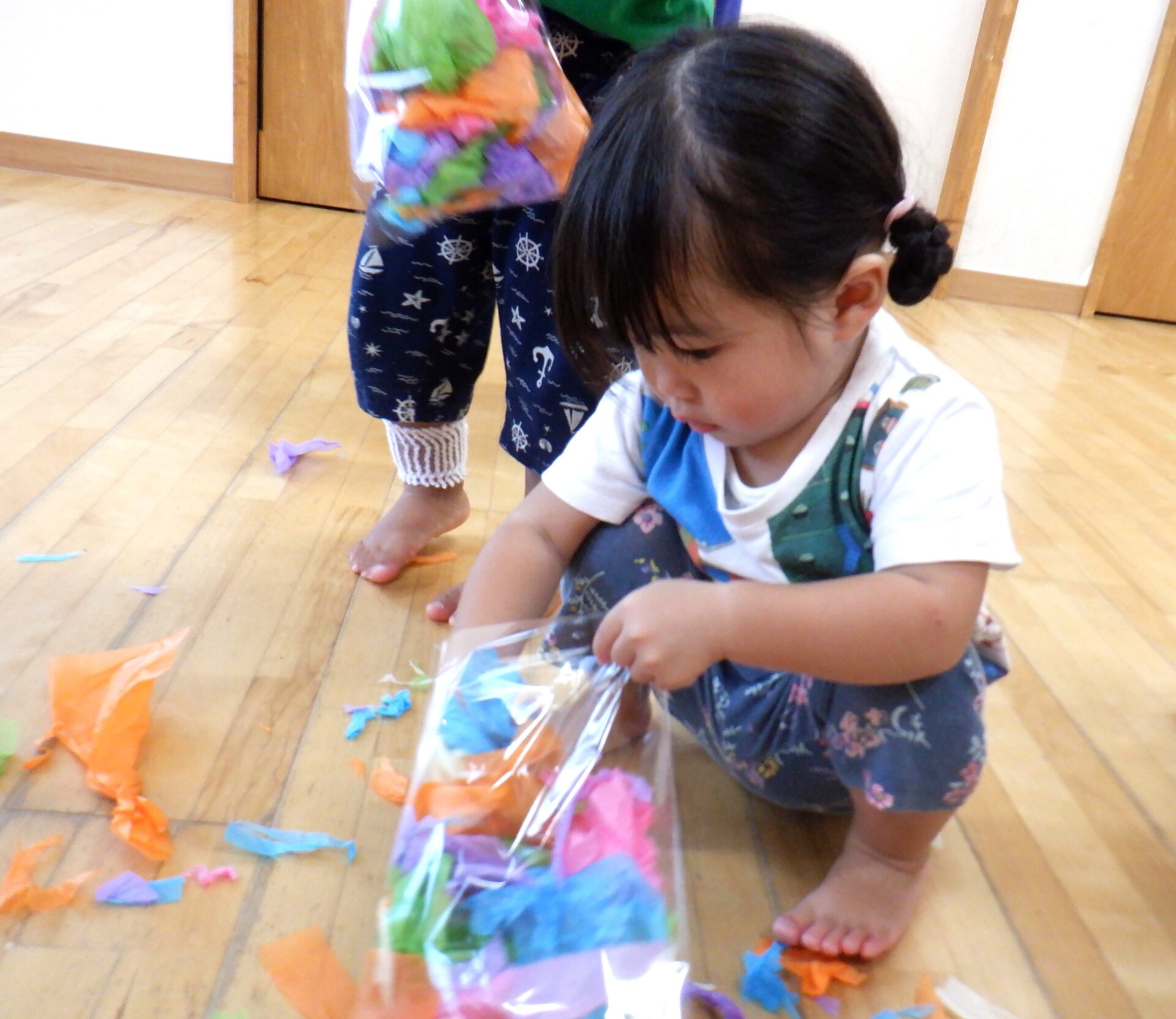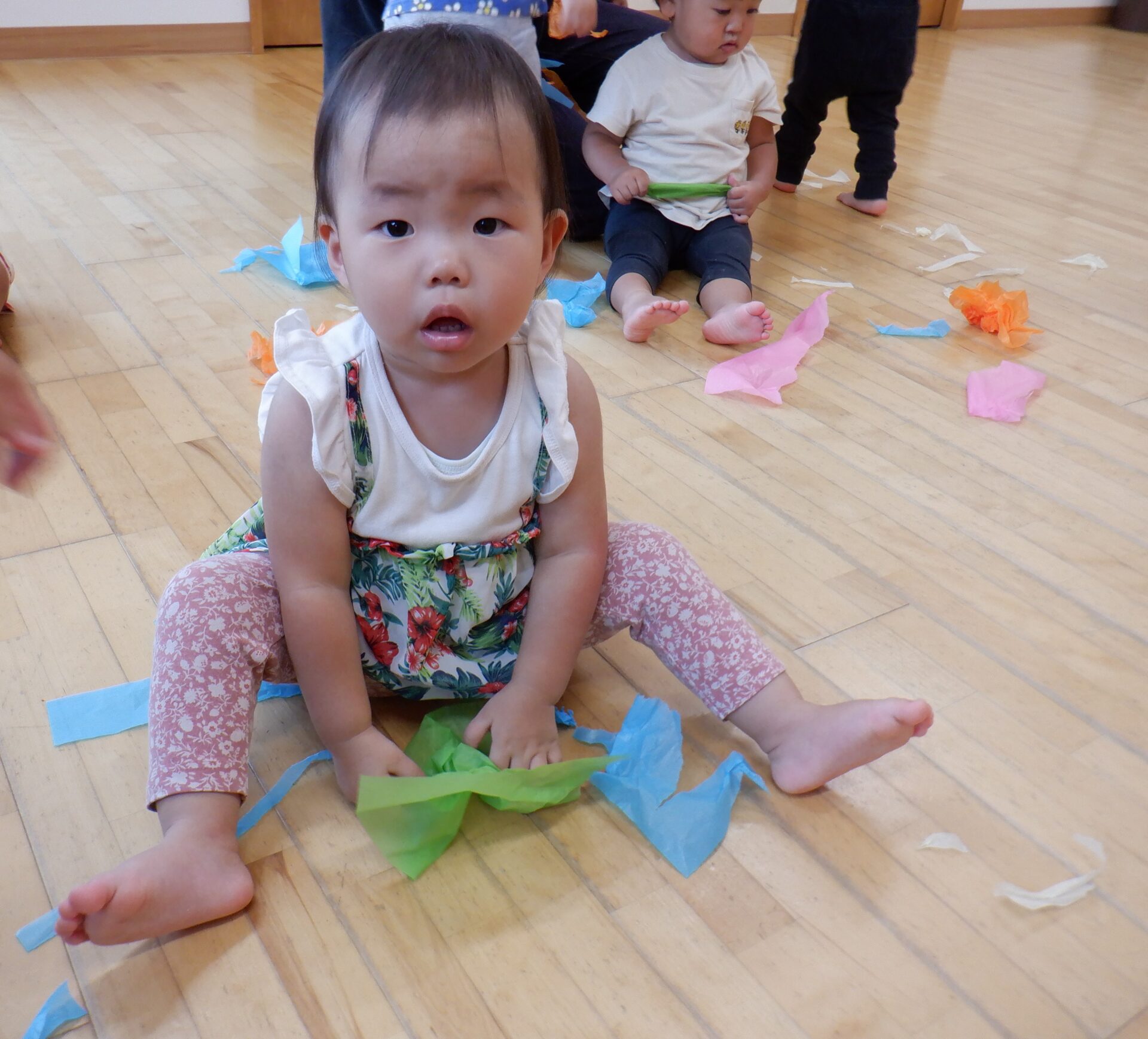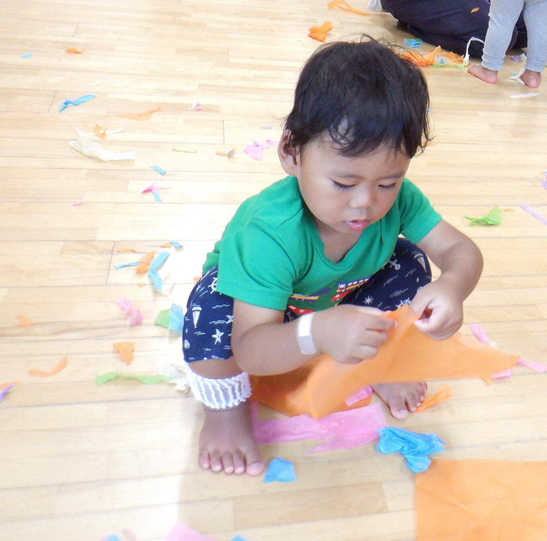 ちぎってみたり、丸めてみたり夢中になって遊んでいました♪