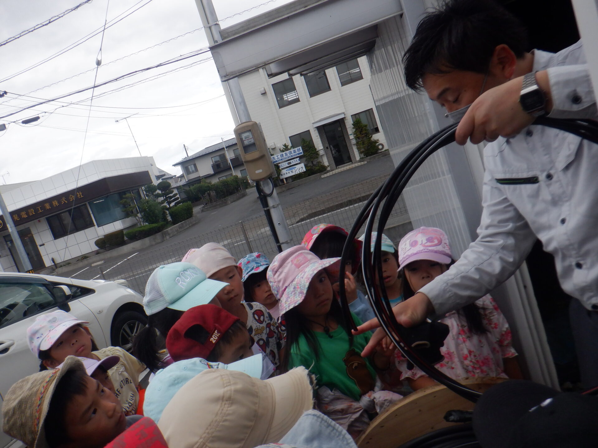2023.09.28 バオバブ組(5歳児) ブログ コイルを求めて! 毎年お世話になっている伸晃電設さんまでコイルを貰いに いざ!出発!! コイルに巻いてあったケーブルのお話をしていただきました。 一番大きなコイルも力を合わせて、子ども達だけで運びましたよ。 最後はみんなでアスレチックに挑戦しました。 一覧へ戻る