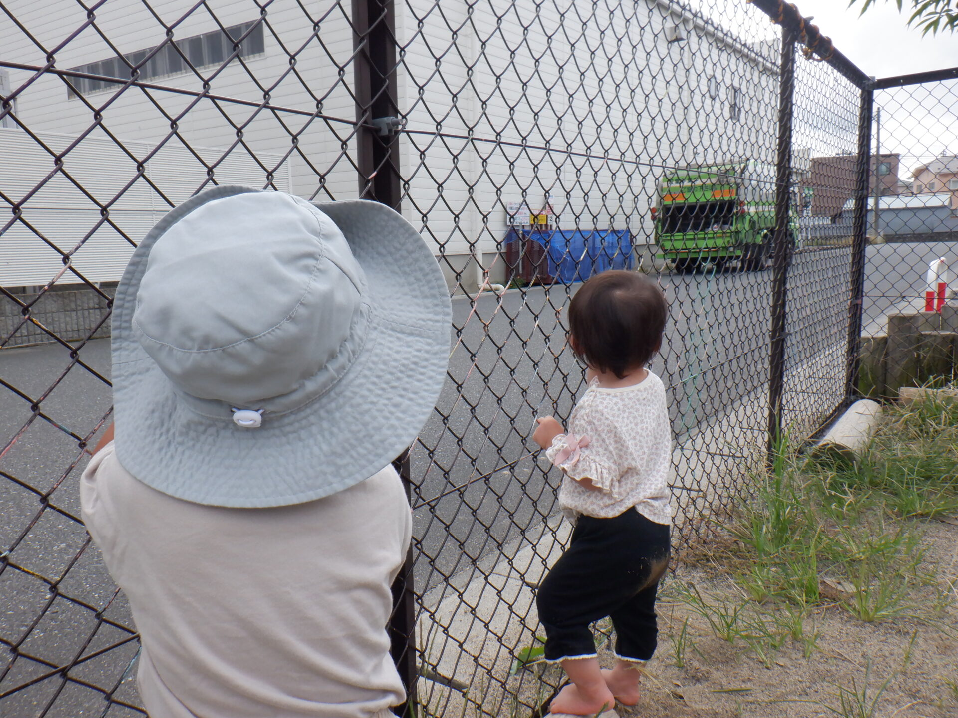 ゴミ収集車を見つけて「がんばれー!」と応援の声が響き渡っていました。