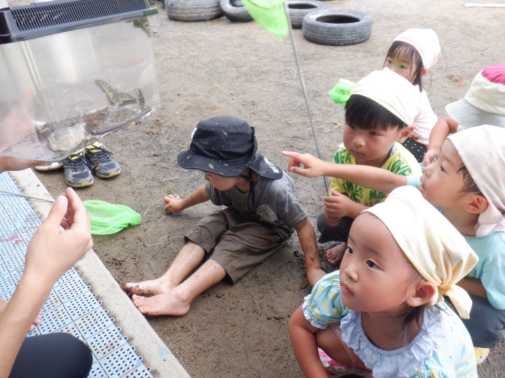 と、一人の子が歌い始め、徐々に周りの子も歌い出し蝶々の模倣をする子もいました。