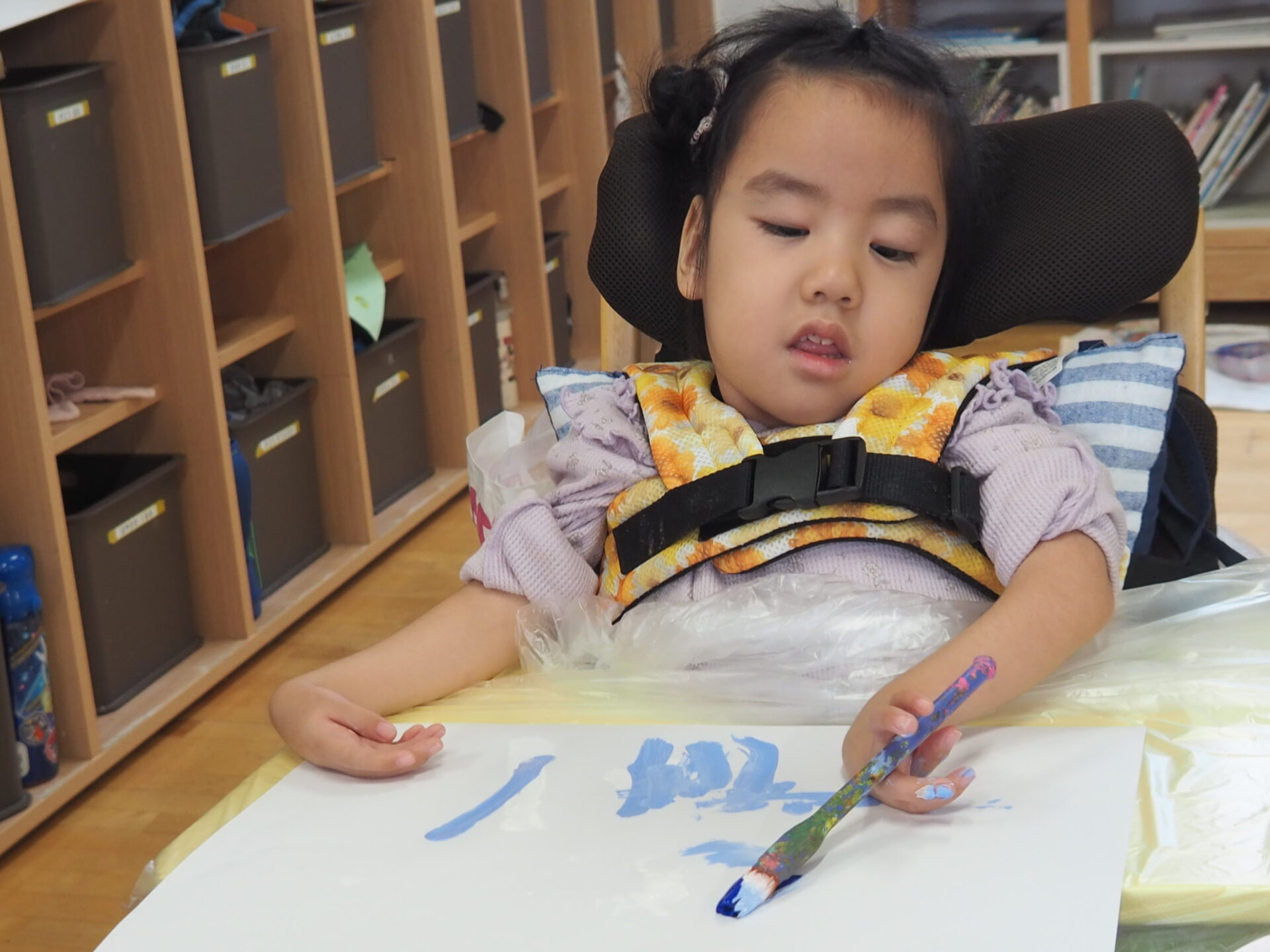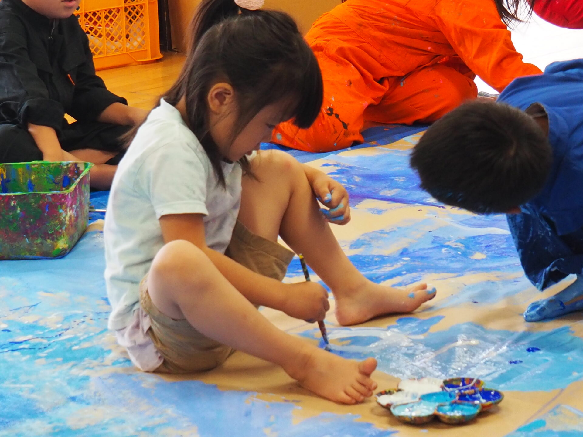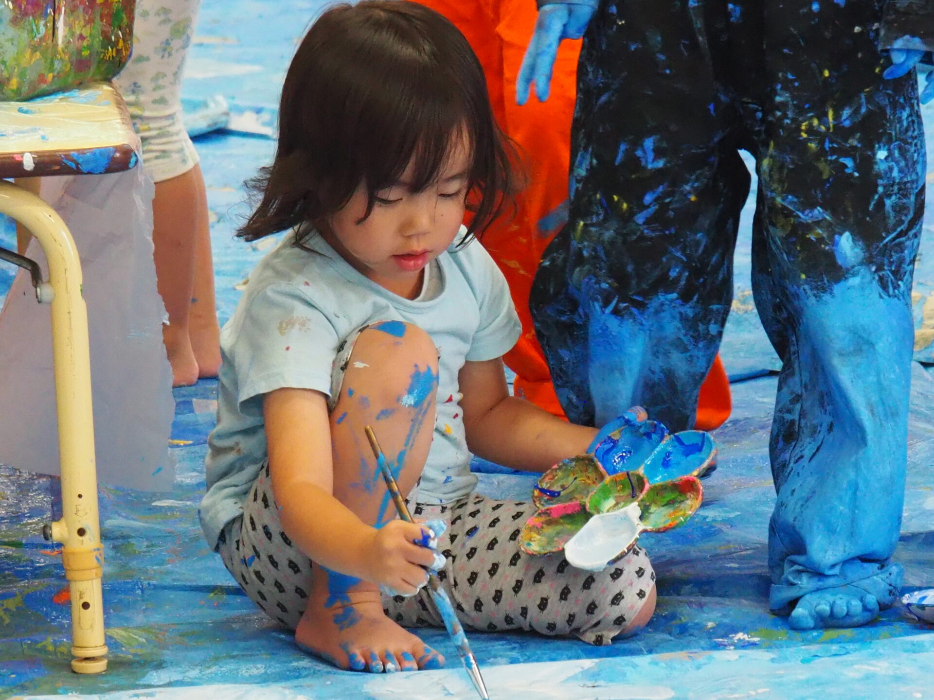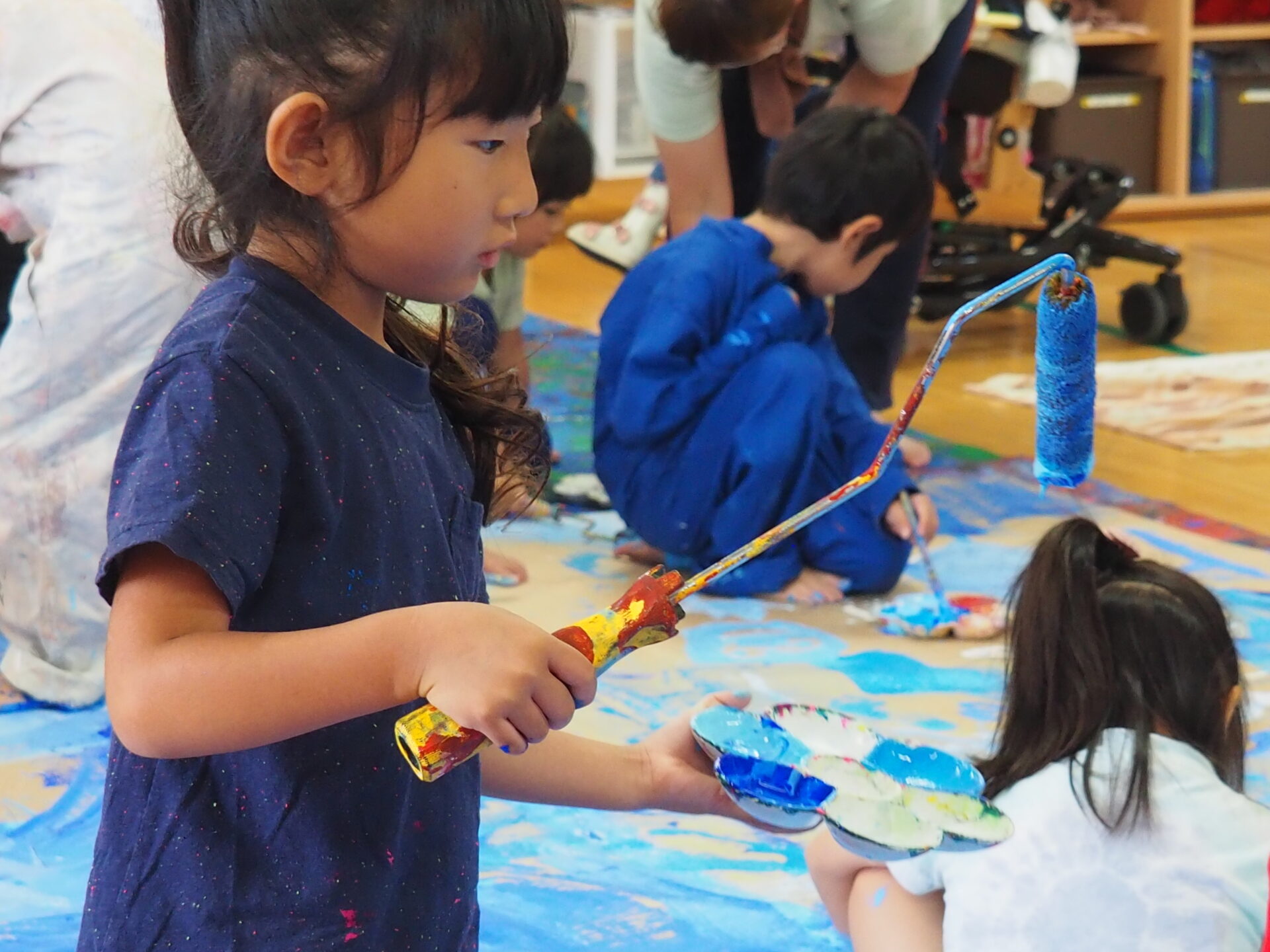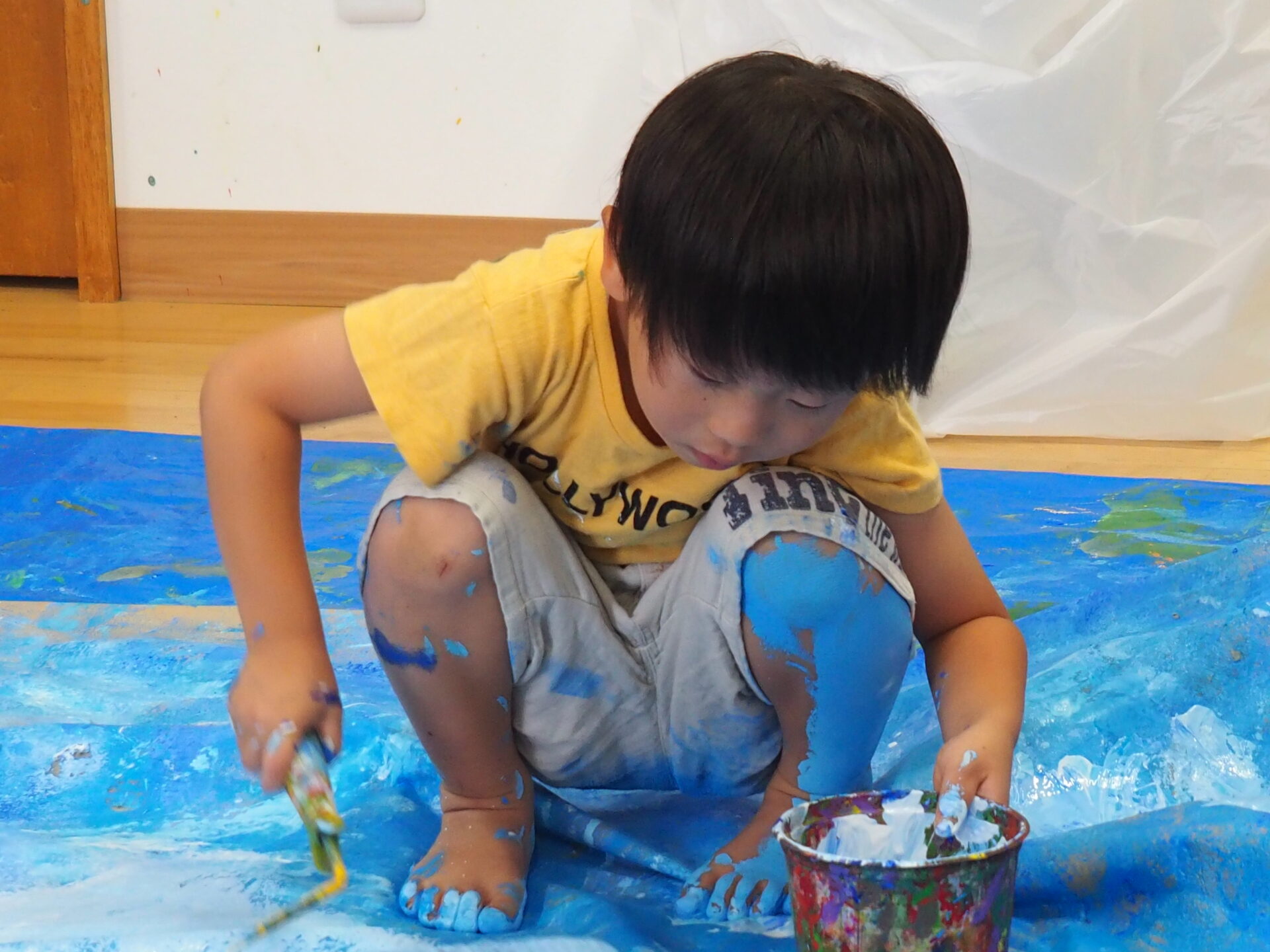 子ども達は、絵の具用の服に着替え‥遊びが始まります。