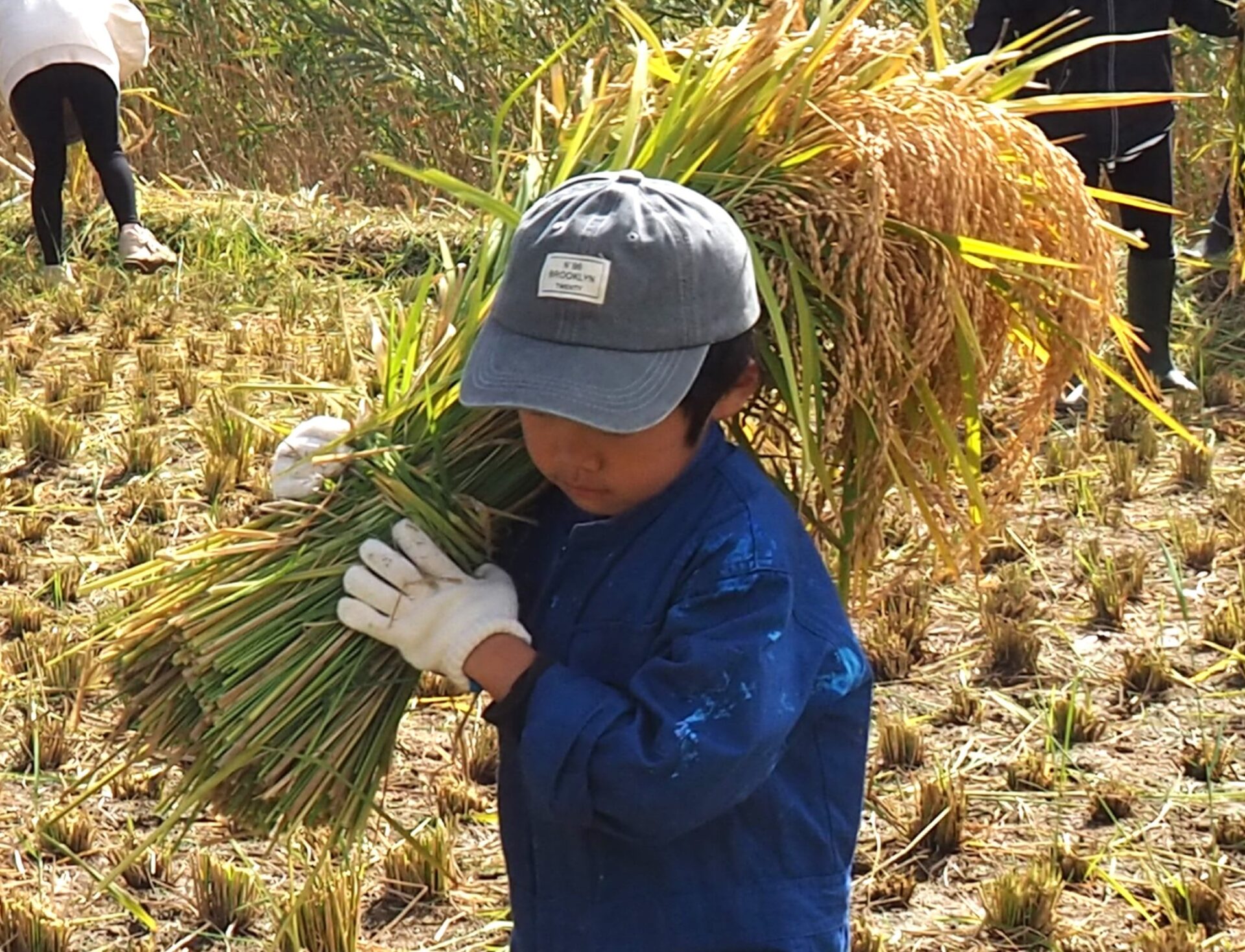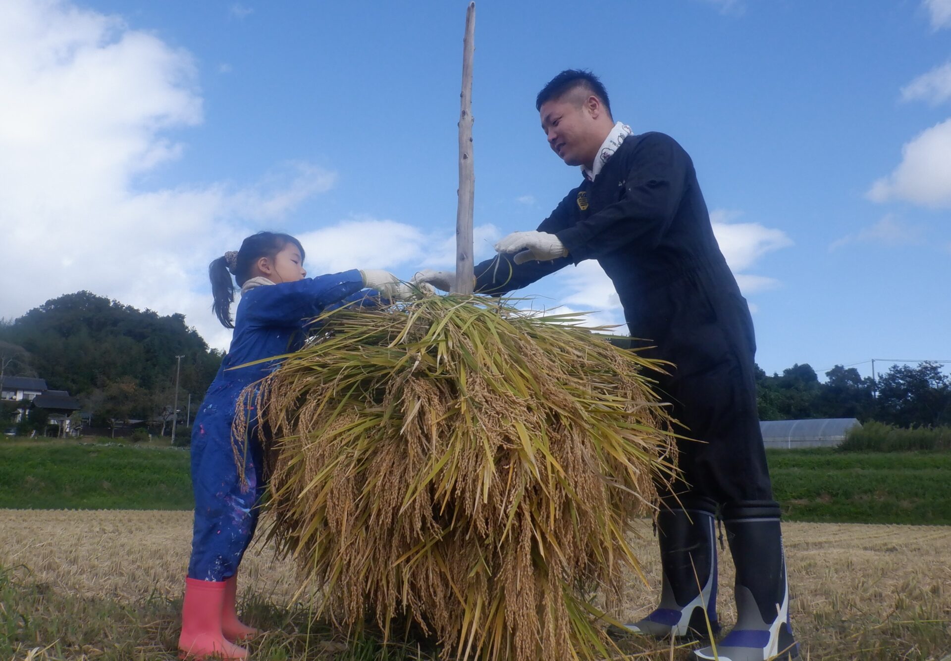 束ねた稲を肩に担いで運ぶ姿がカッコいい!!