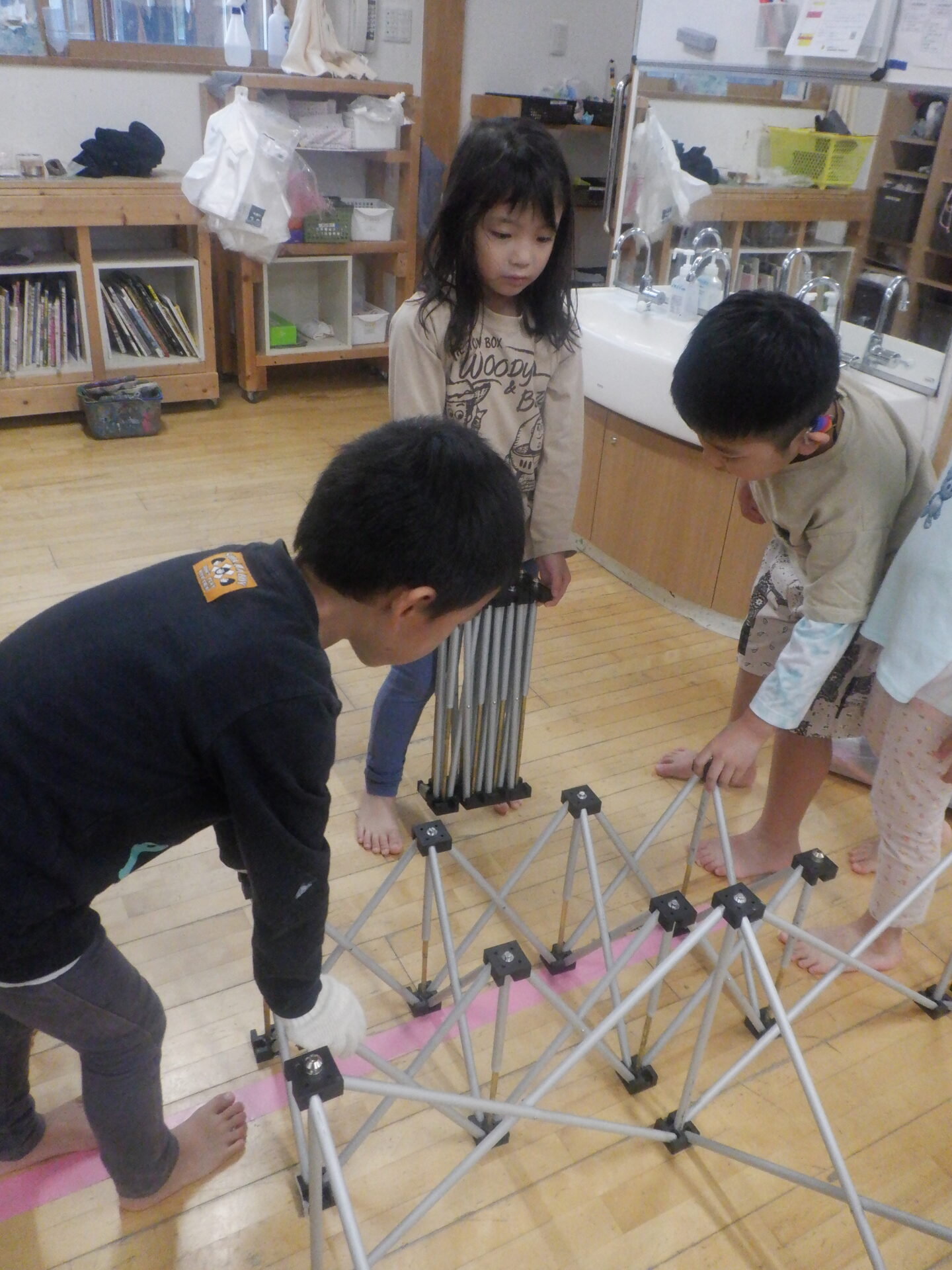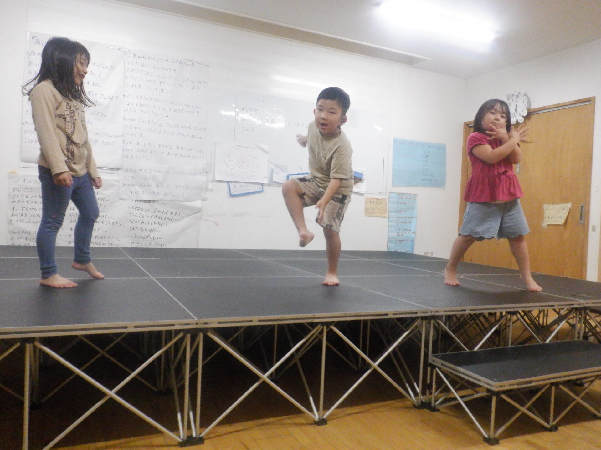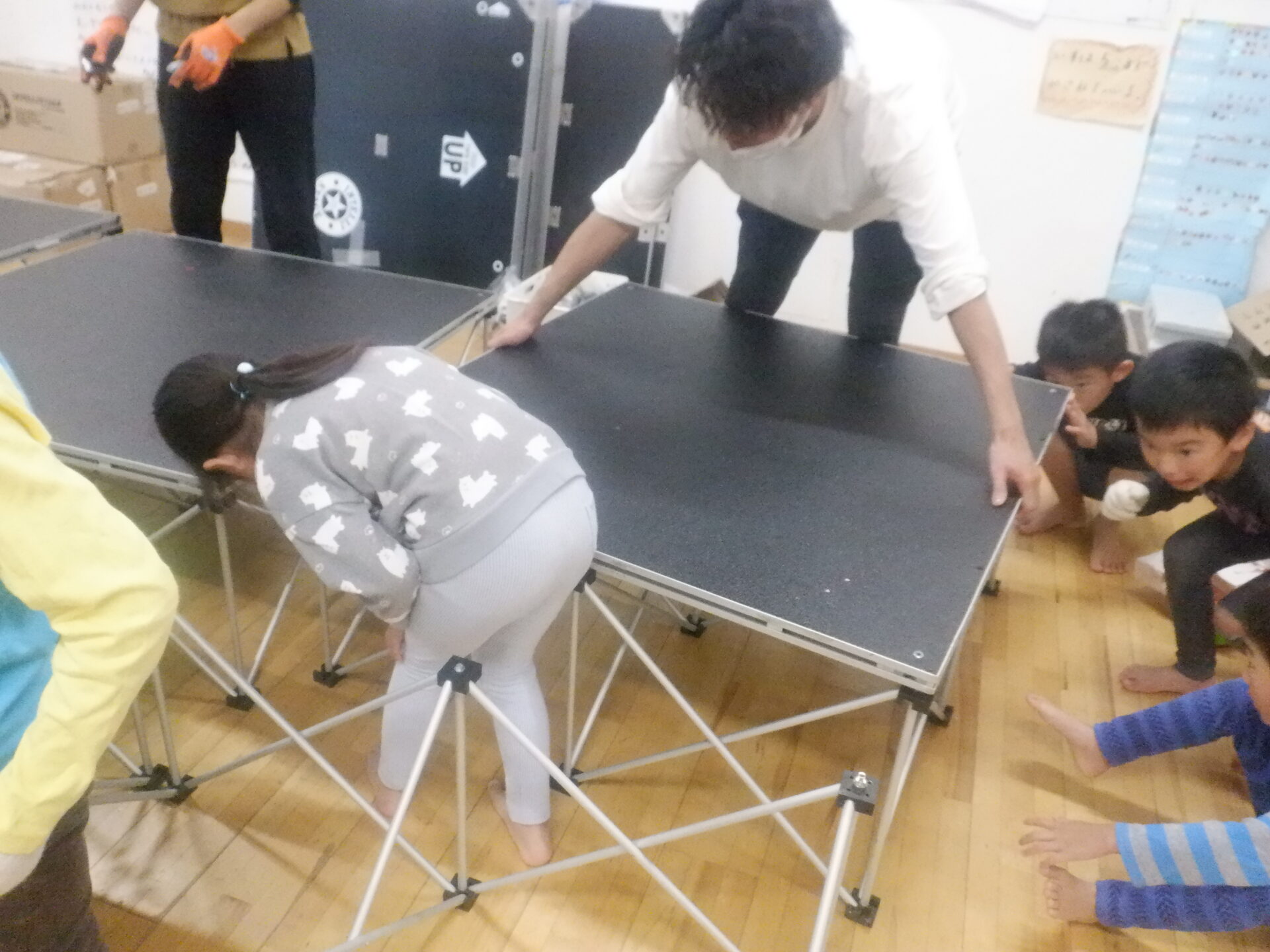 2023.10.10 バオバブ組(5歳児) ブログ 楽しみすぎて、ど~しよ!? ステージの組み立てを手伝い、「おどりた~い。」とさっそく汗を流していました。 もう、28日のフェスタが楽しみでしかたない様子の子ども達です! 一覧へ戻る