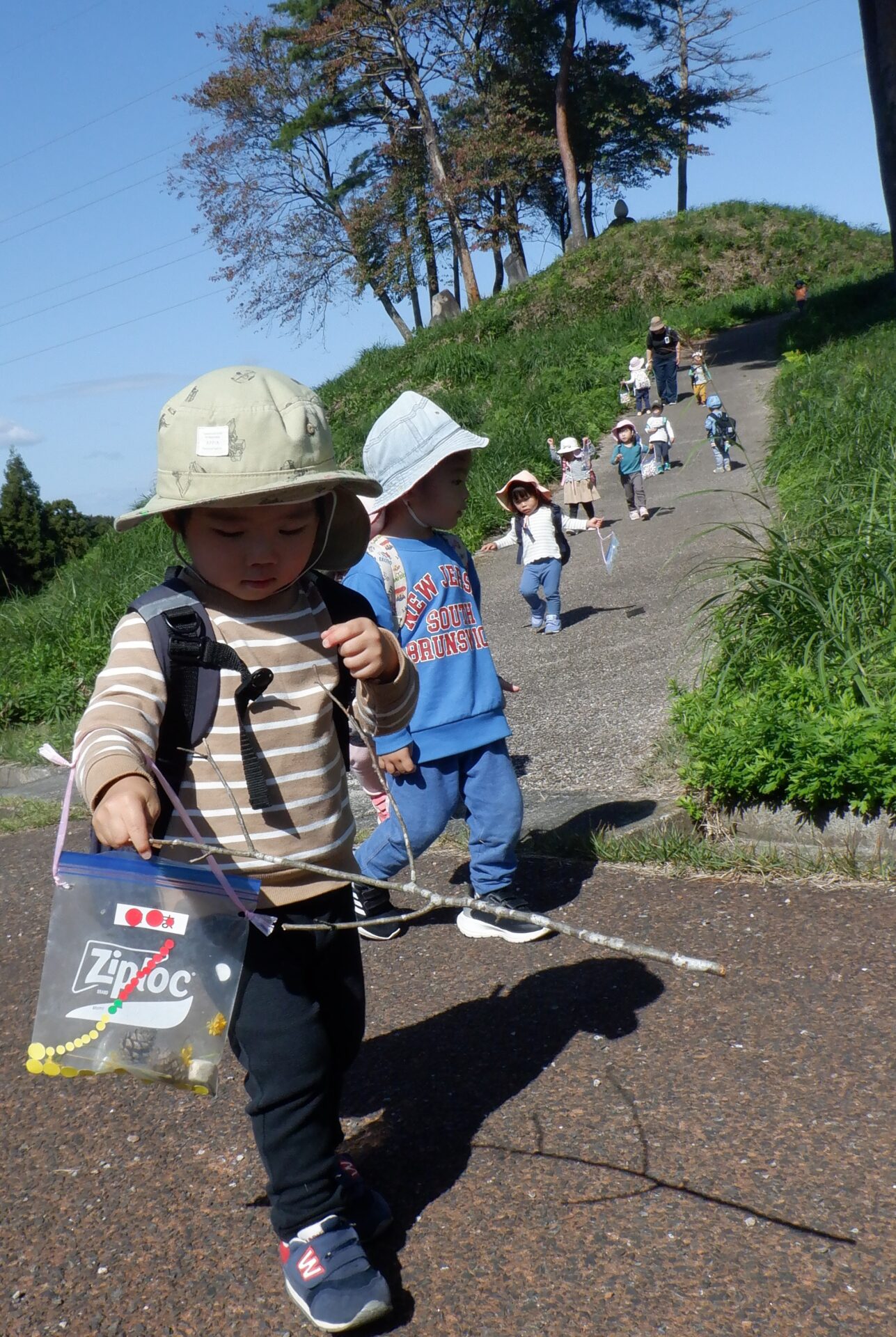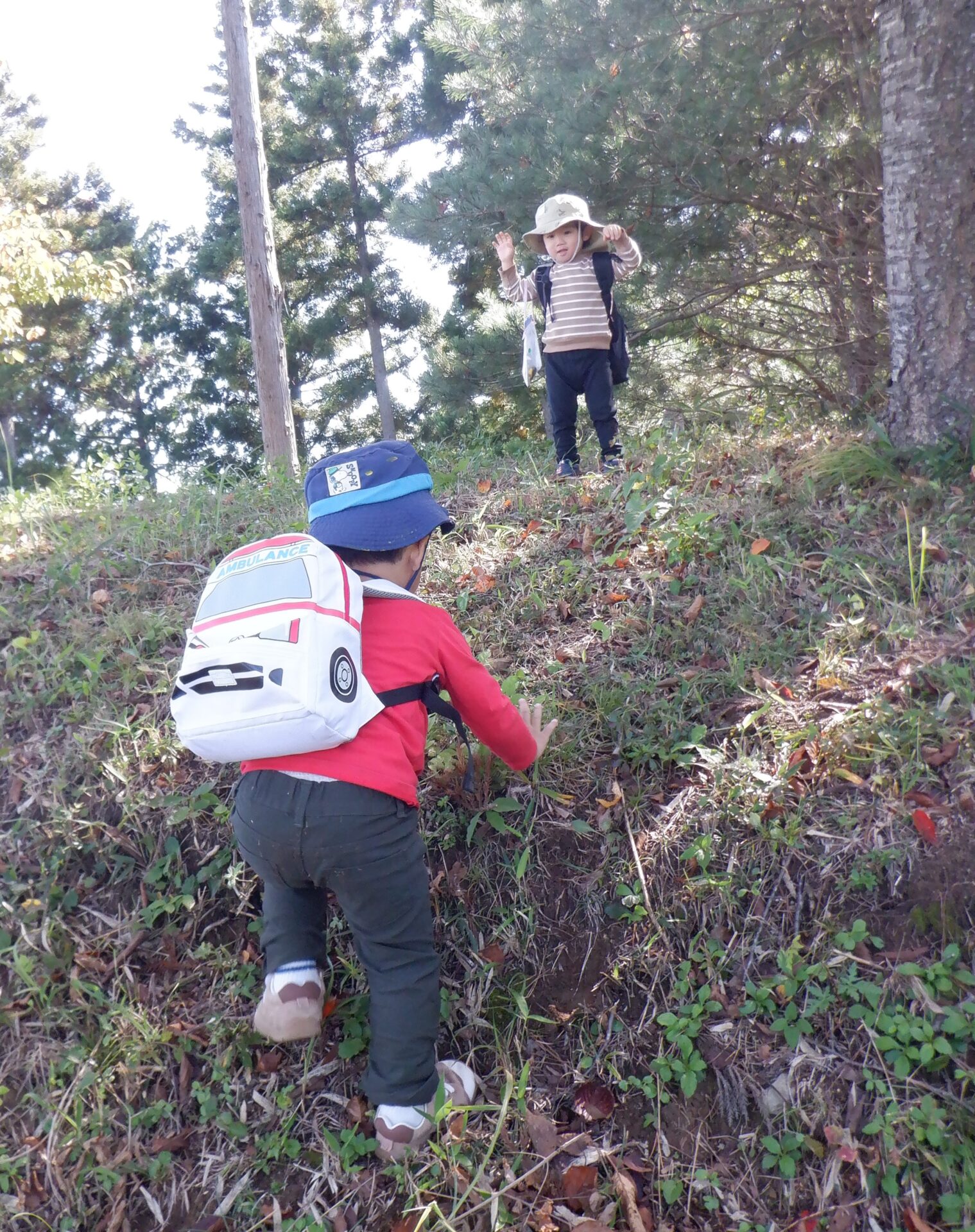 どんぐり拾いに、ふわふわドーム、前回行かなかった細道などを探索してきました。以前よりも足腰がたくましくなっており、坂道も駆け上がっていきます。