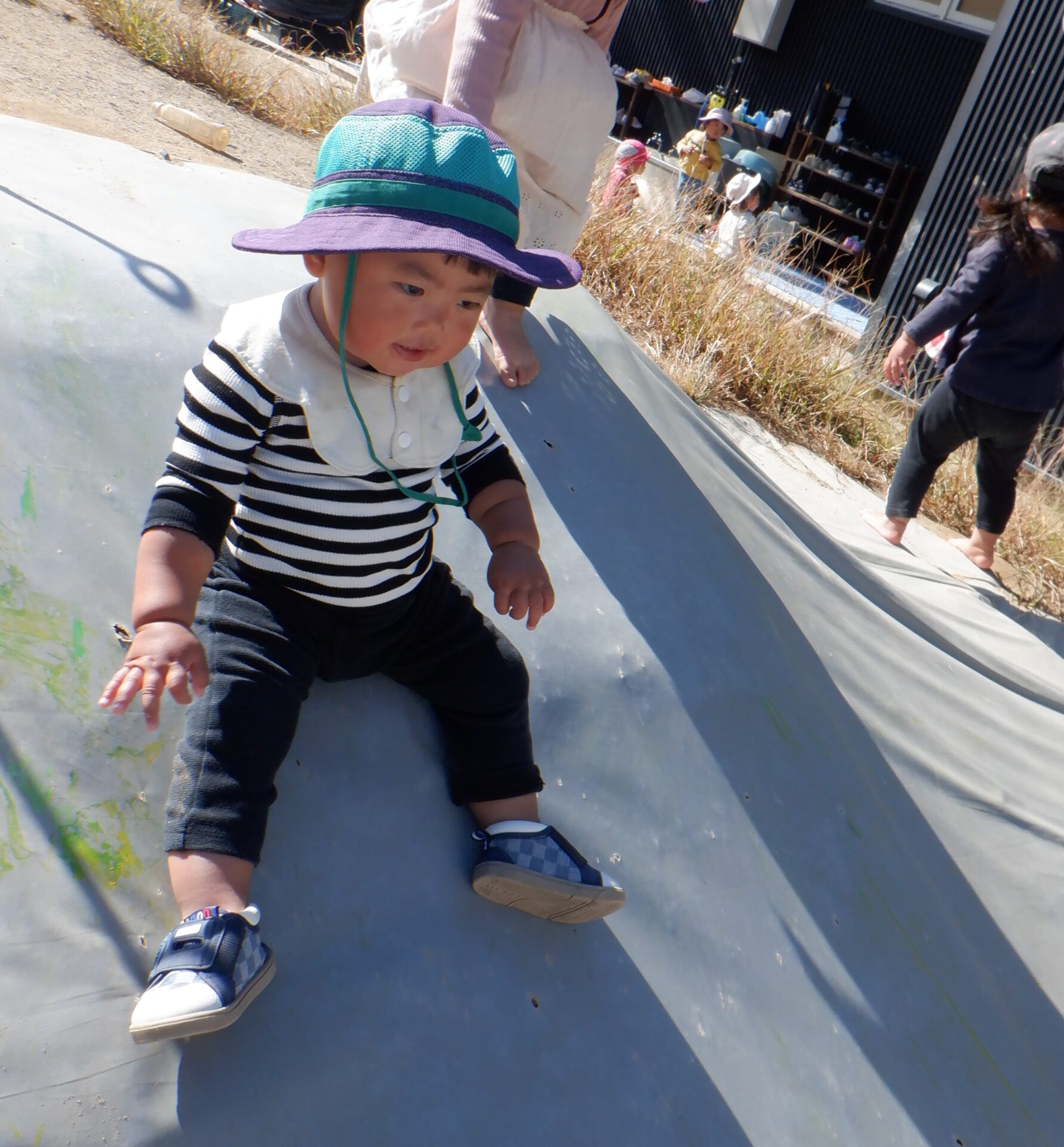 早速、初めてのすべり台に挑戦!