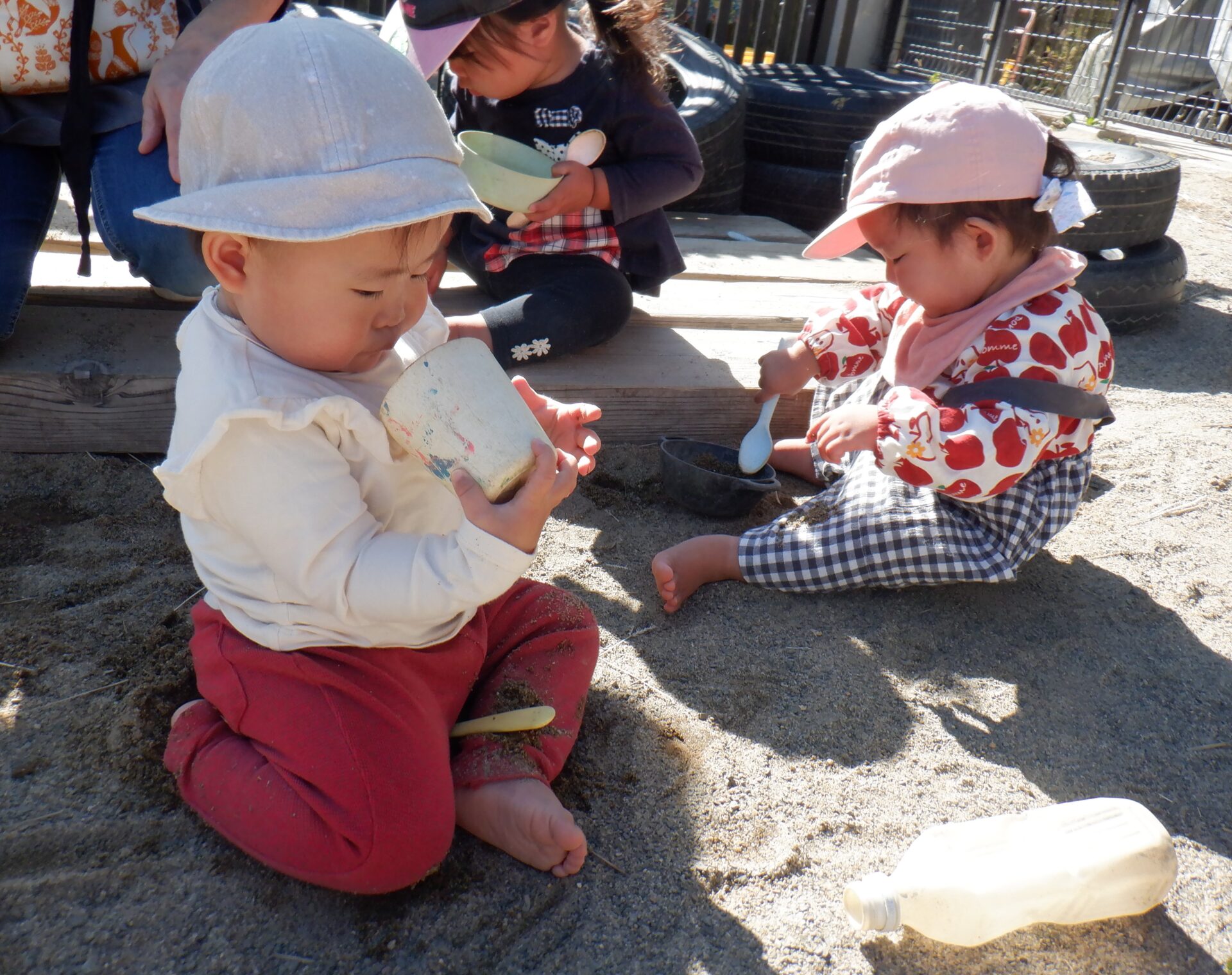 砂場ではシャベルを使うことを楽しんでます!!