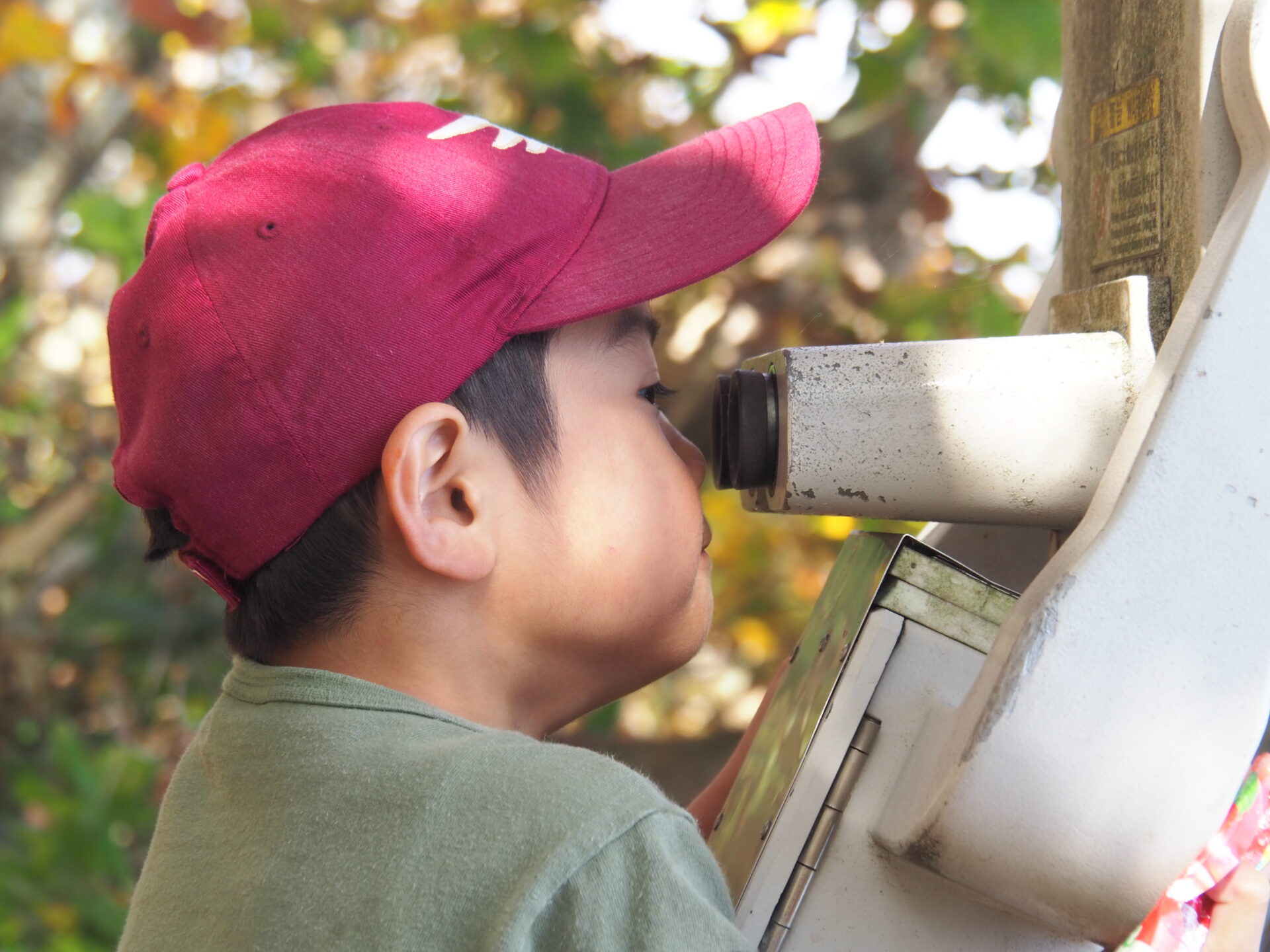 山頂では”フェスタごっこ”が始まったり、望遠鏡を覗いたりしてリラックス。