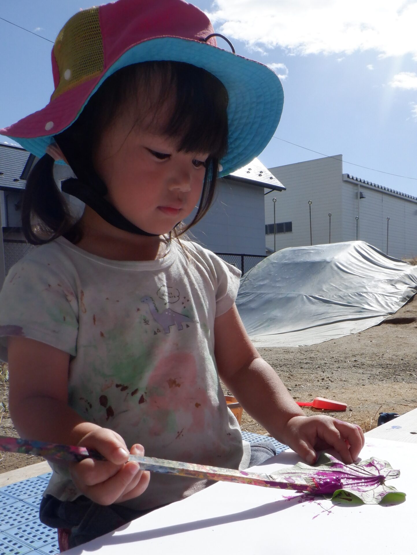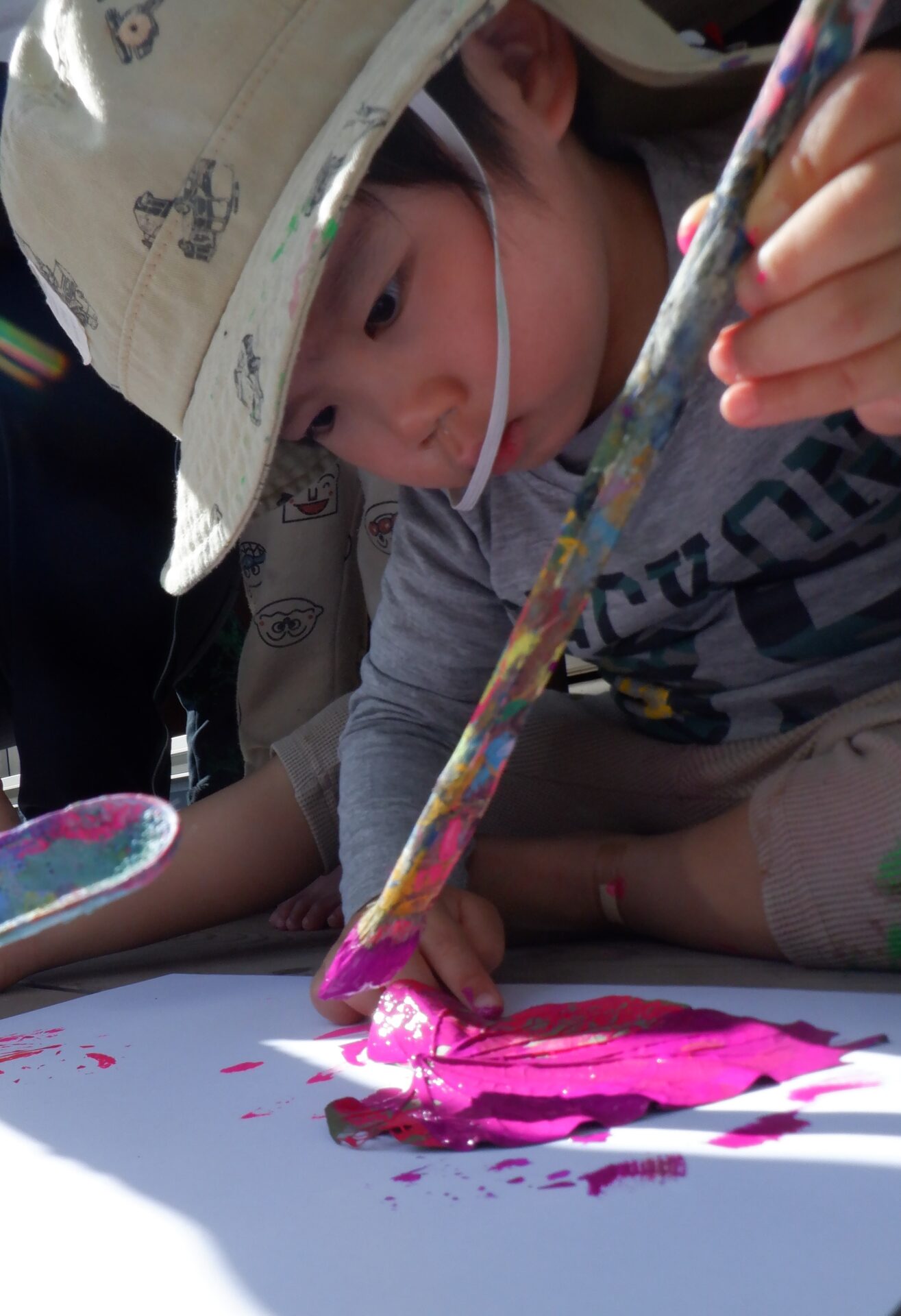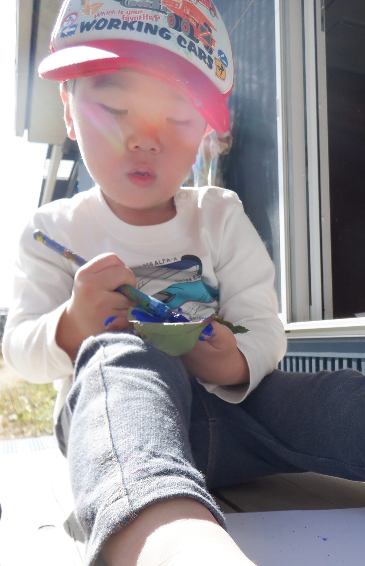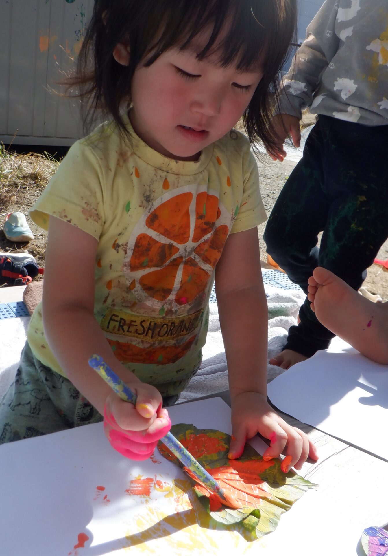 葉っぱからはみ出さないようにと集中して塗っています。