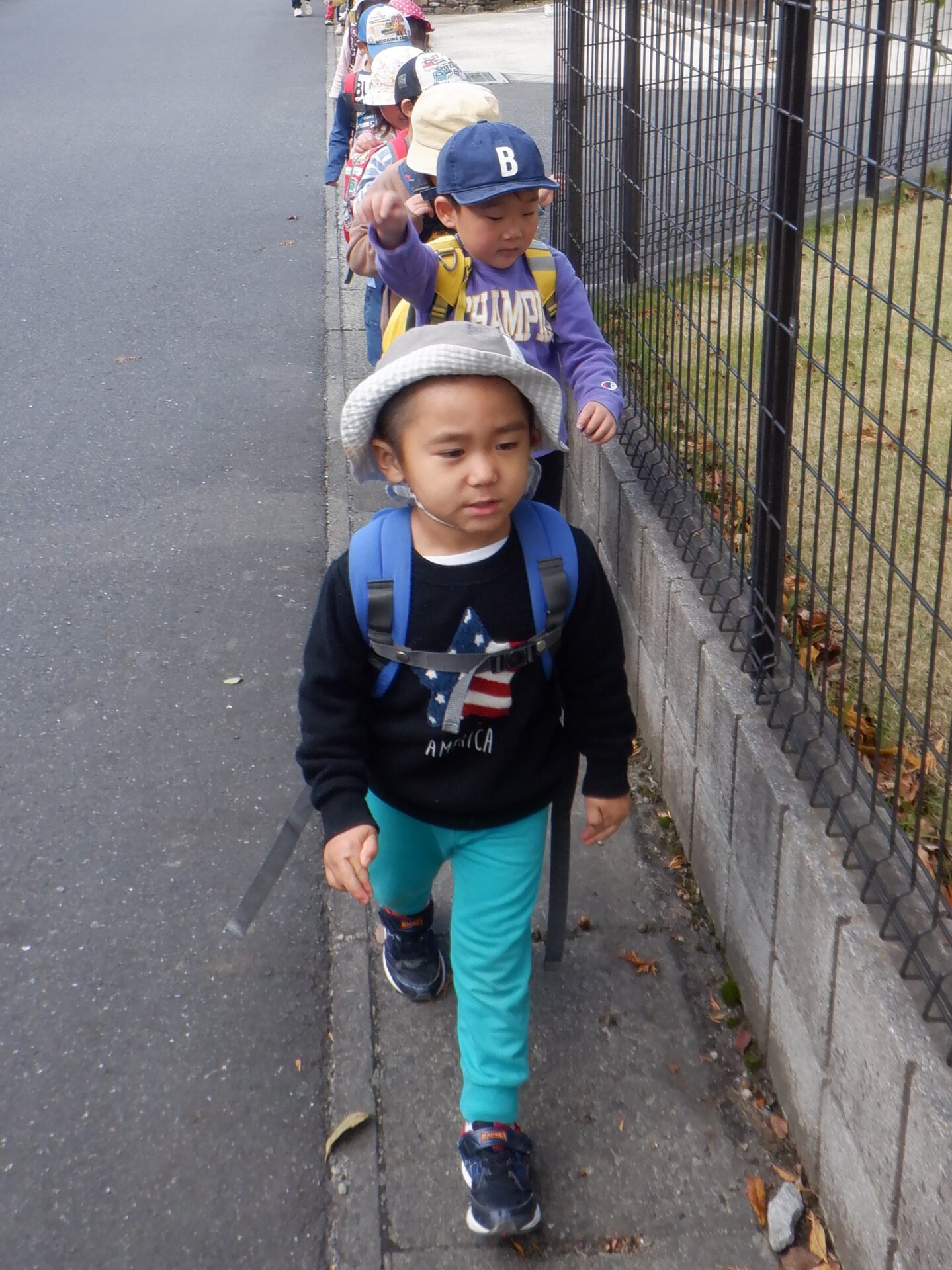 と、気合いを入れて歩く子どもたち。