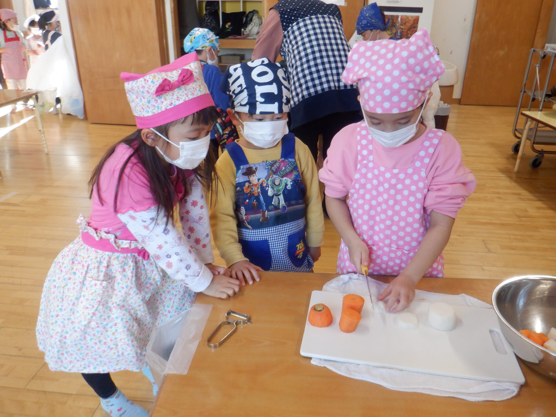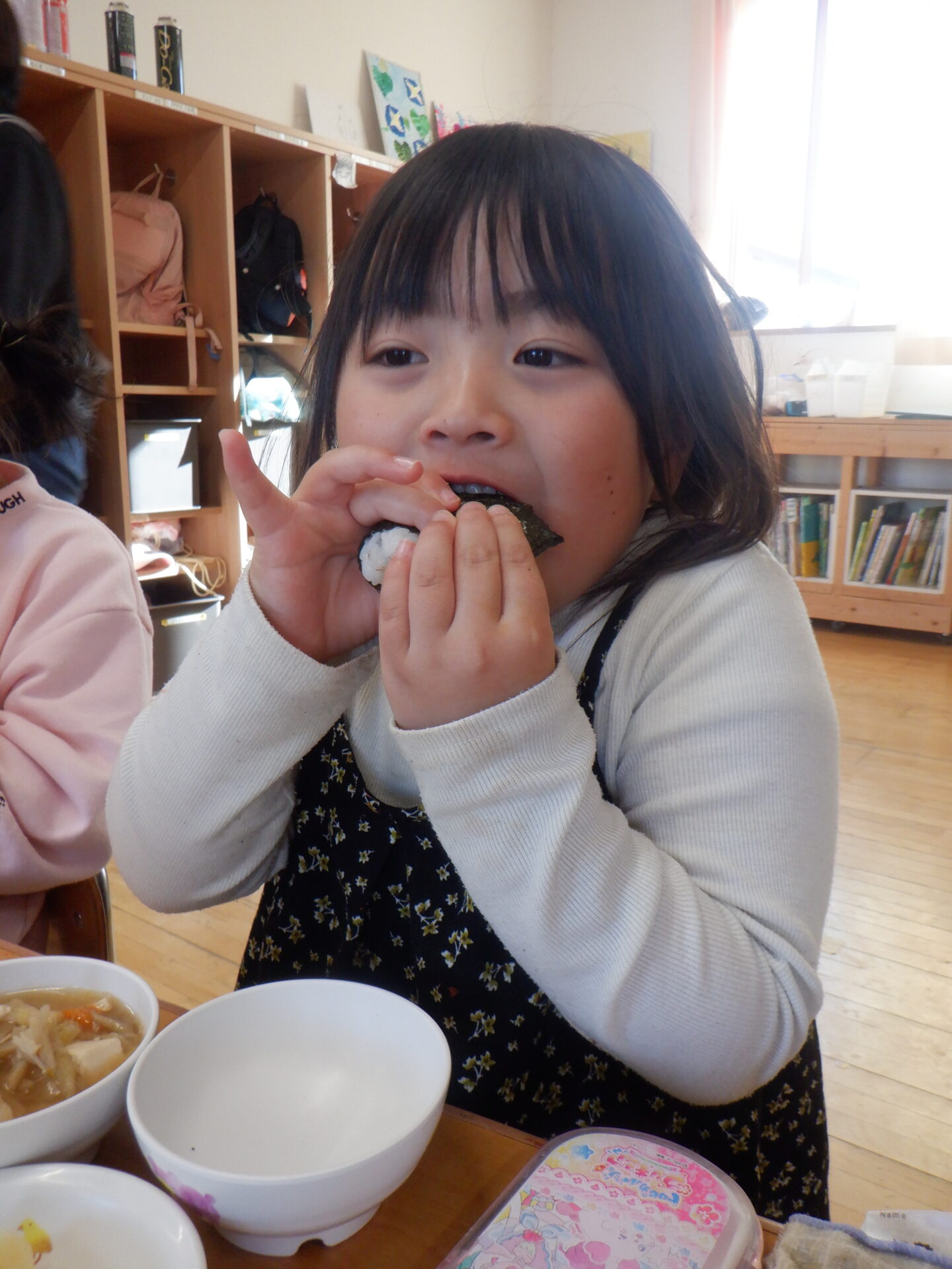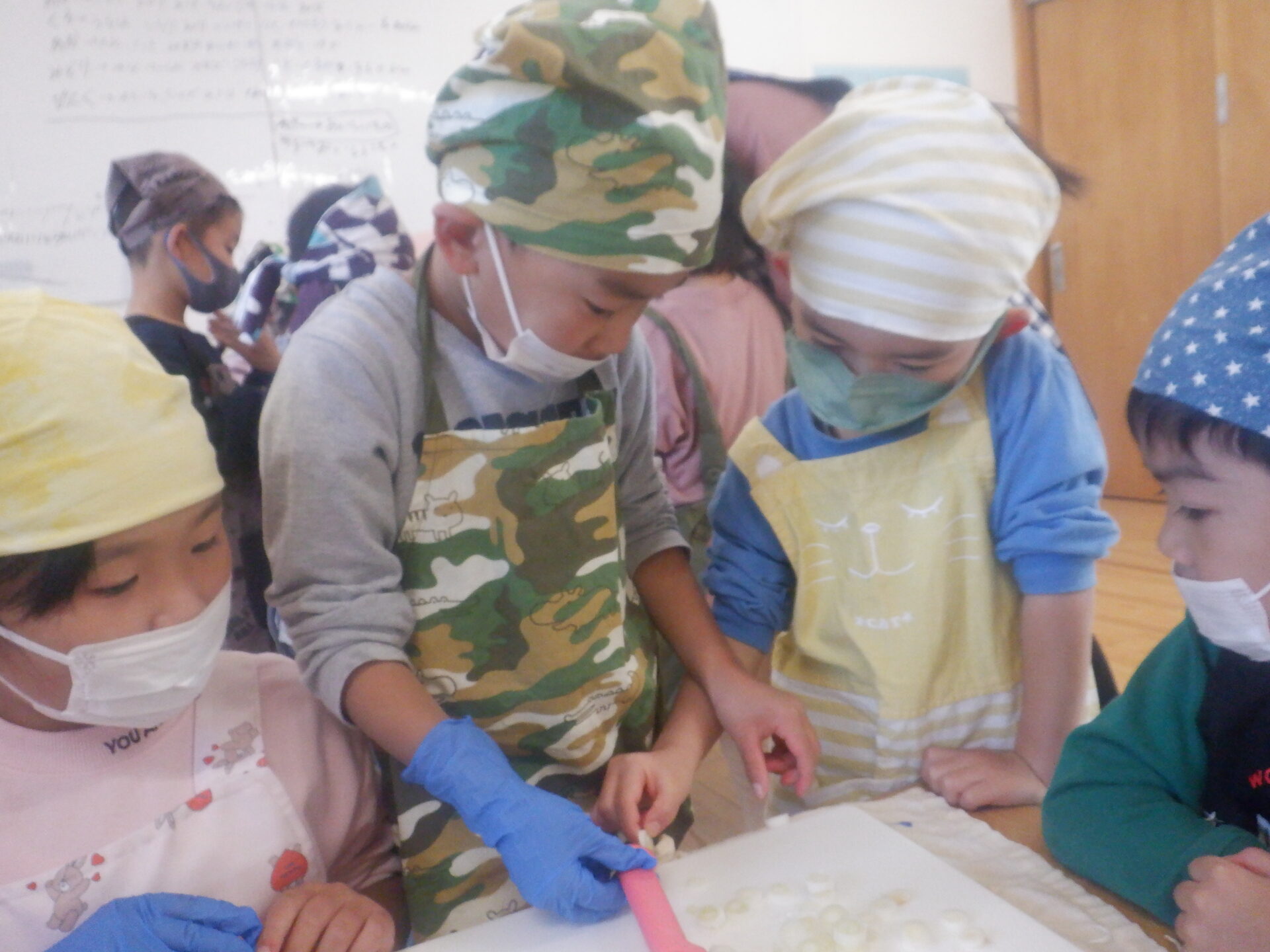 2023.11.22 にじ組(4歳児) バオバブ組(5歳児) ブログ 今日は、新米パーティーの日。 自分たちでしっかり脱穀し準備しました。 バオバブ組のお兄さんお姉さんの上手な包丁の使い方、クッキングの仕方をまねしてにじ組も野菜の切り方にチャレンジ! おにぎりの具はバオバブ組が担当しました。(納豆キムチ・焼肉・スパム・卵焼きなど) 好きな具を選んで握って大きな口の中へ…。 お腹いっぱいで、幸せな日になりました。 一覧へ戻る