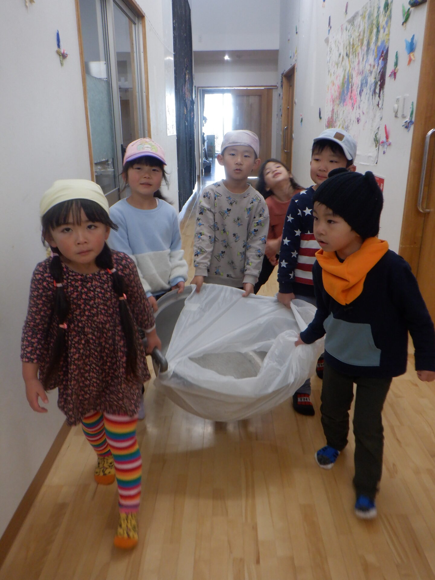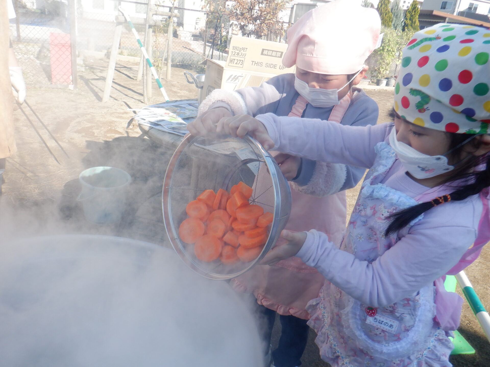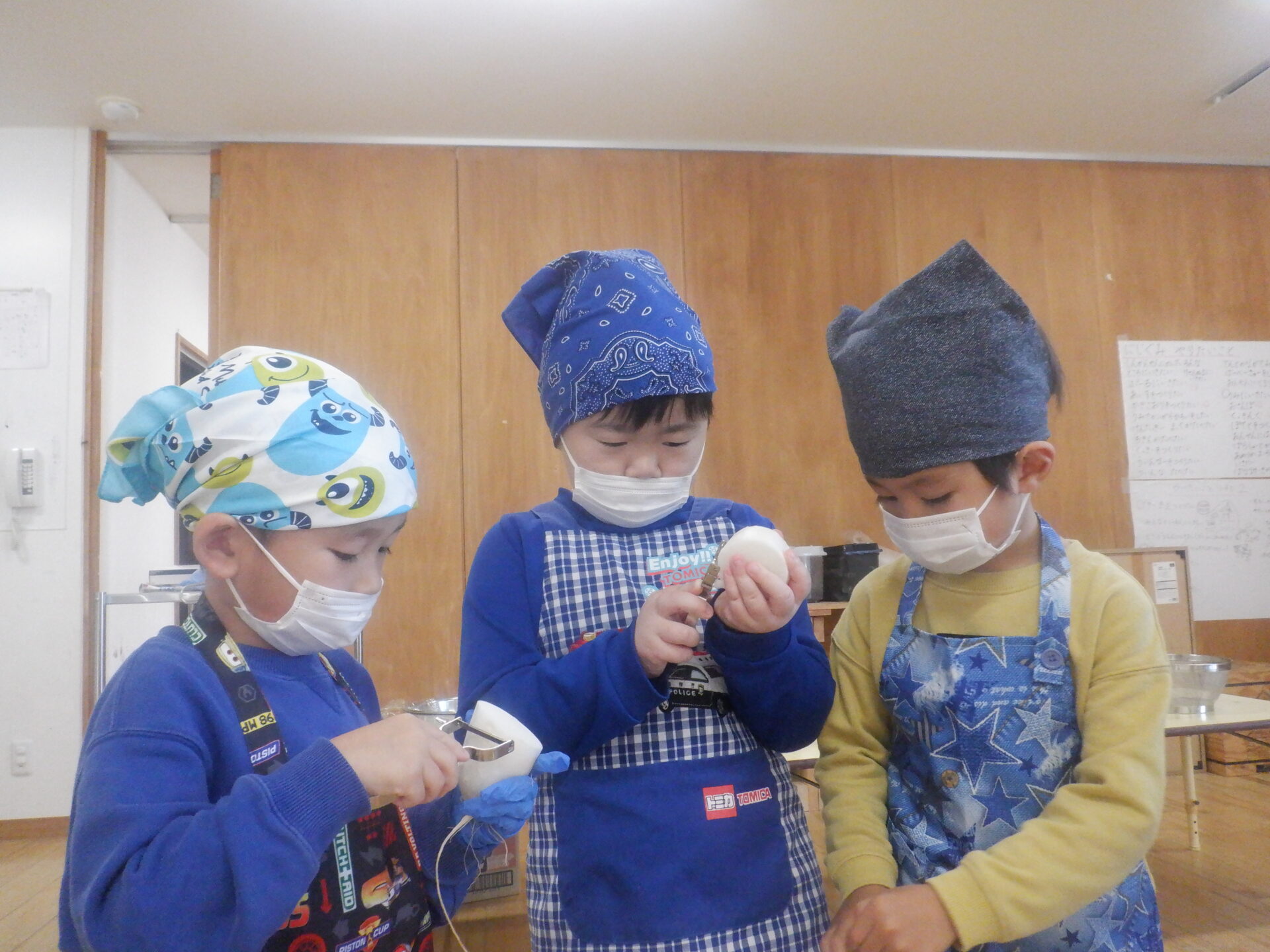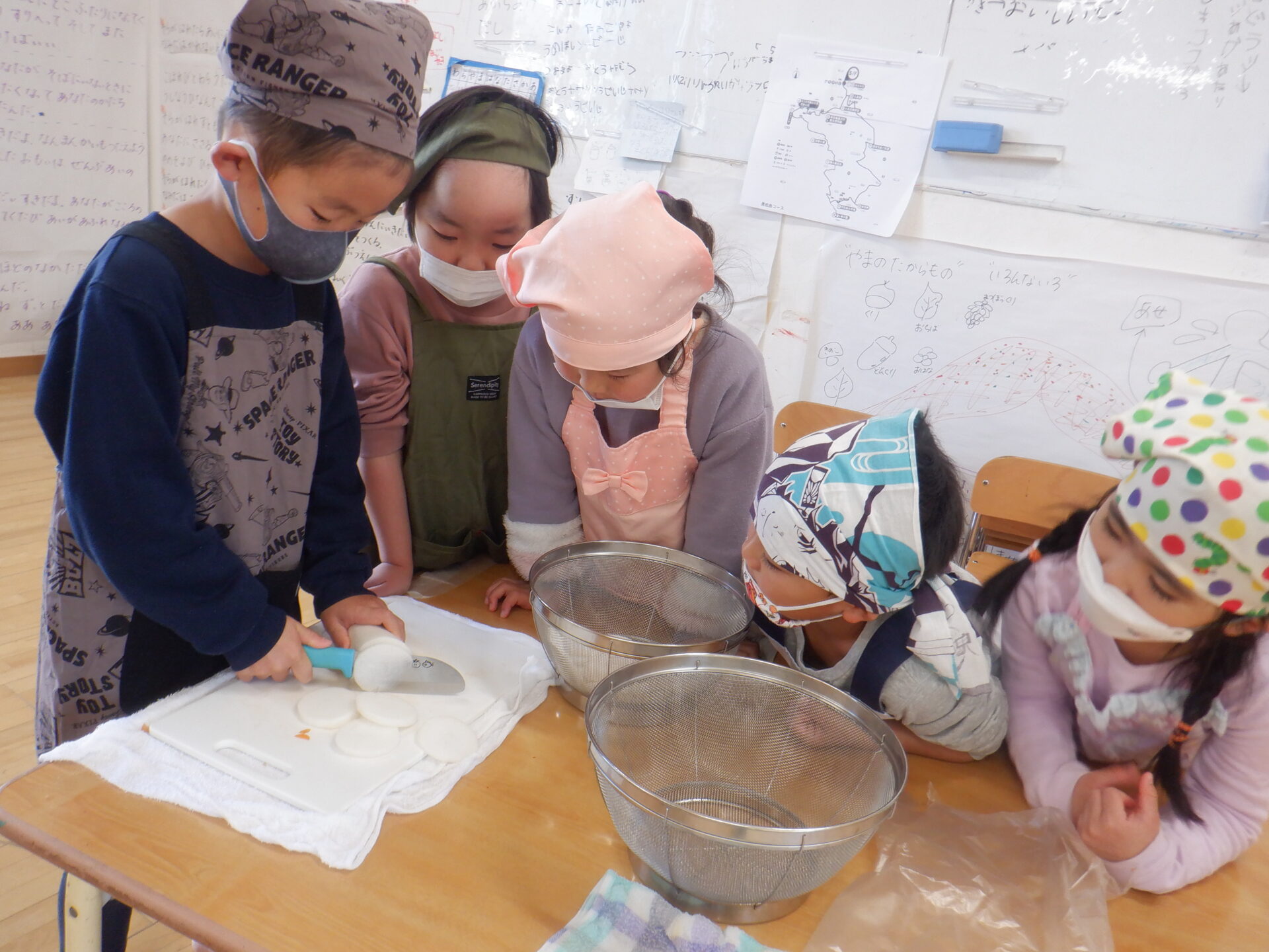 2023.11.22 にじ組(4歳児) バオバブ組(5歳児) ブログ 今日は、新米パーティーの日。 自分たちでしっかり脱穀し準備しました。 バオバブ組のお兄さんお姉さんの上手な包丁の使い方、クッキングの仕方をまねしてにじ組も野菜の切り方にチャレンジ! おにぎりの具はバオバブ組が担当しました。(納豆キムチ・焼肉・スパム・卵焼きなど) 好きな具を選んで握って大きな口の中へ…。 お腹いっぱいで、幸せな日になりました。 一覧へ戻る