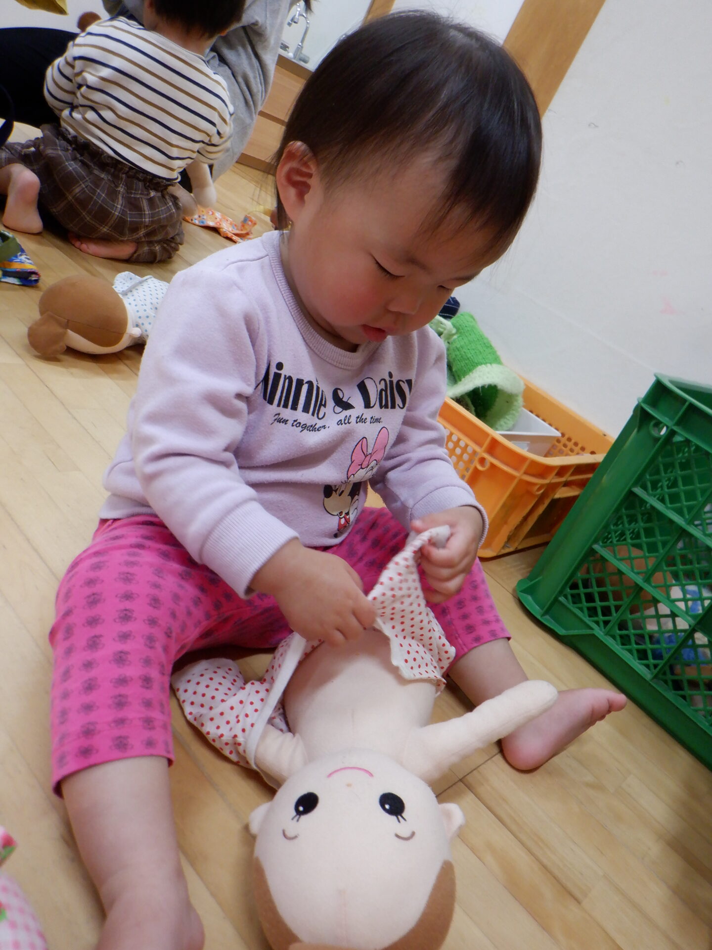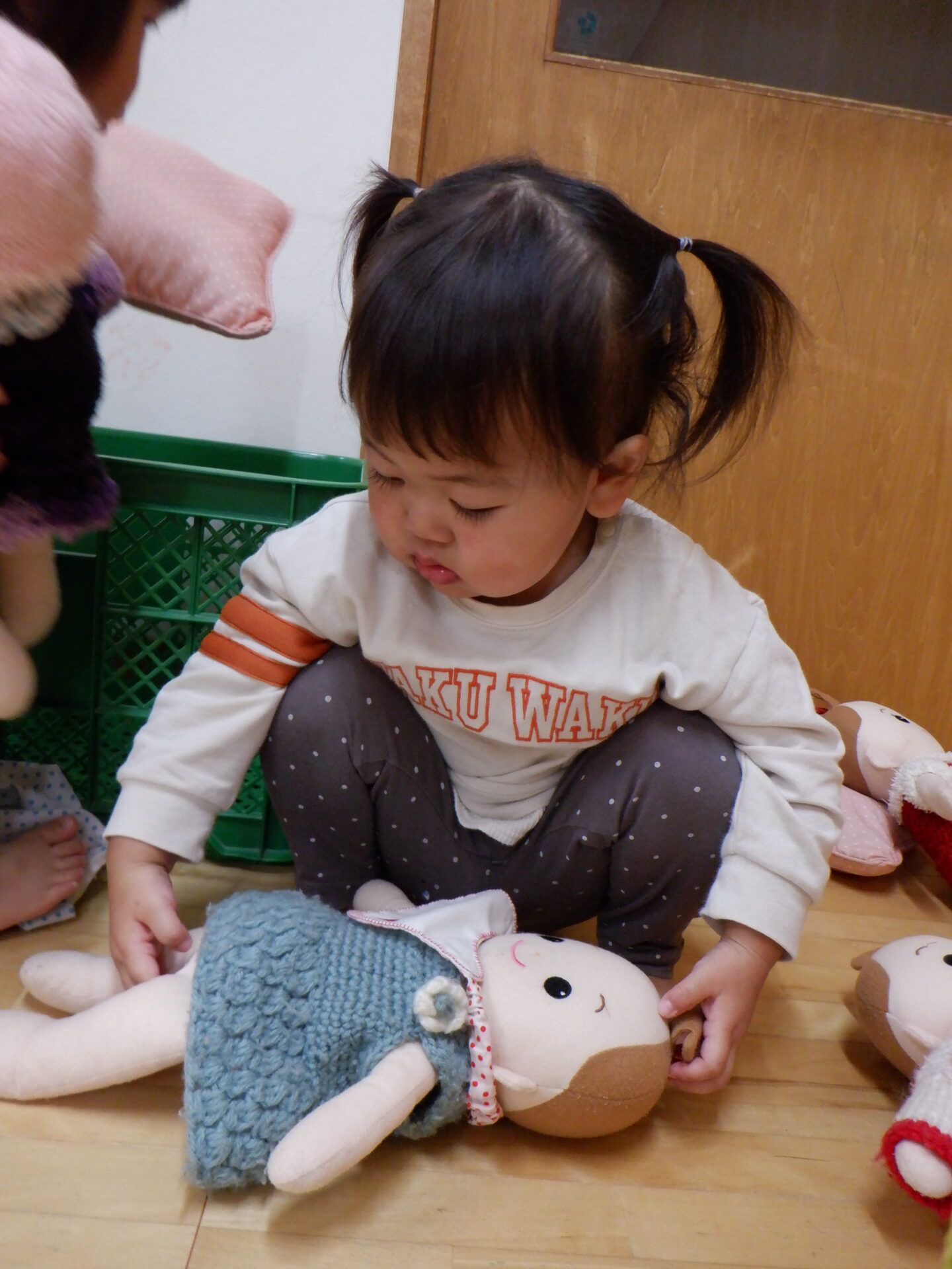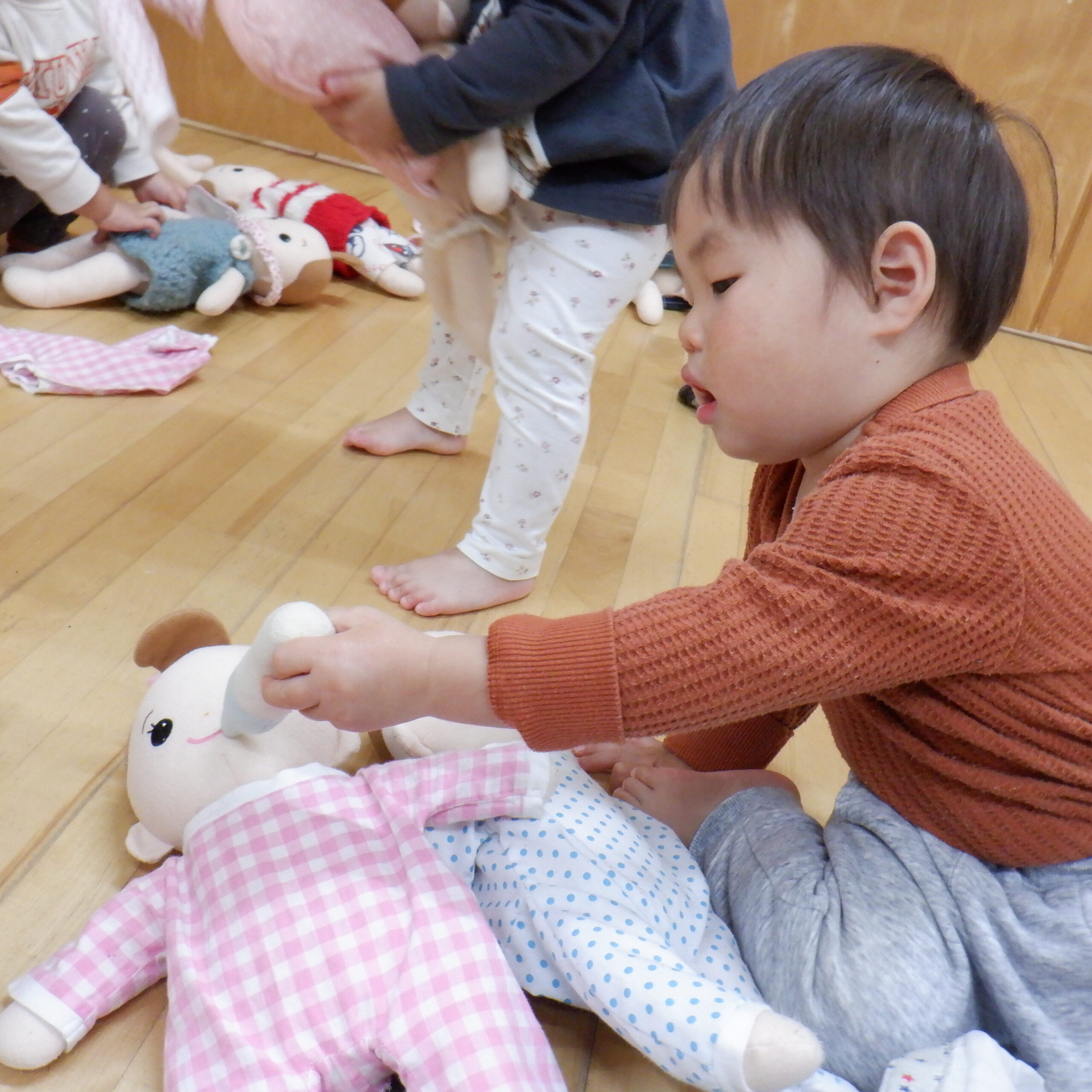 お部屋を覗いてみると赤ちゃんのお世話をする子ども達の姿がありました。
