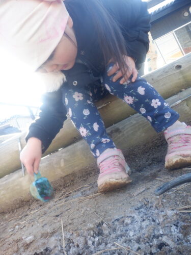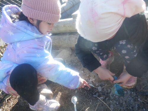 園庭には、たくさんの氷や霜柱が出来上がります。