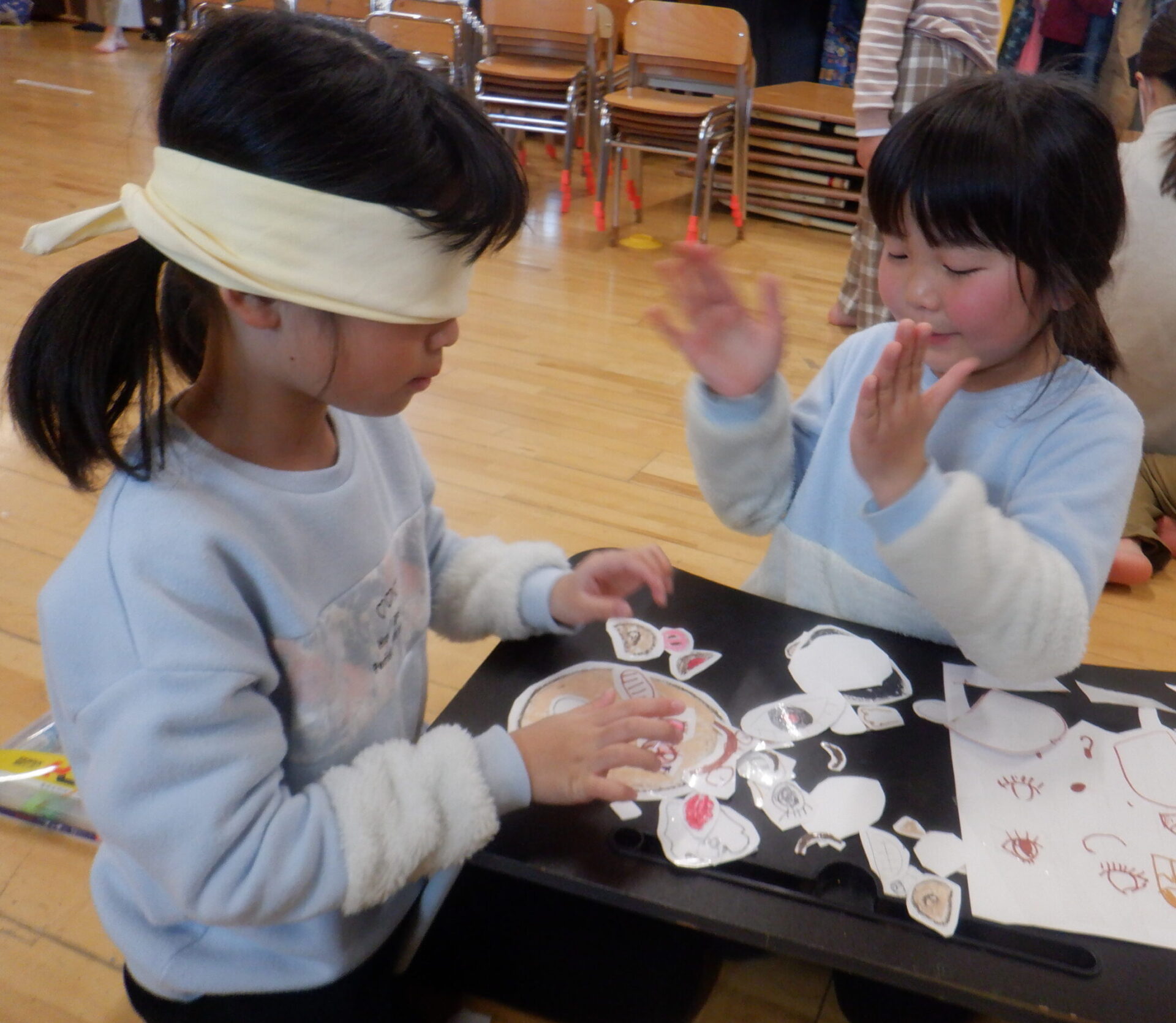 福笑いのルールを友達同士で決め、完成した顔を見ると・・・。