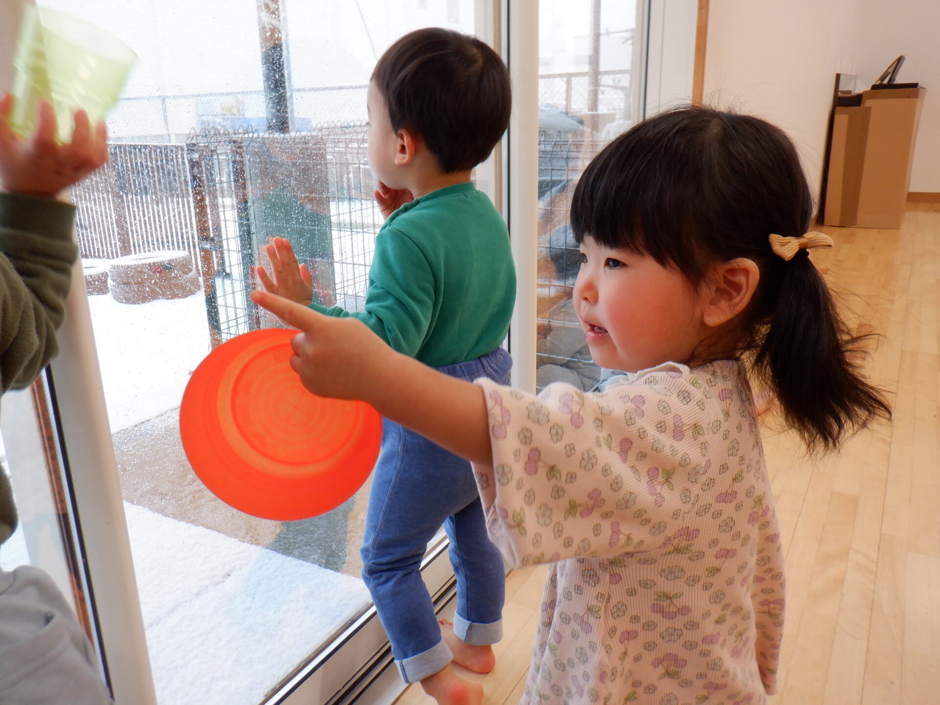 と、お庭を見に集まる子ども達。