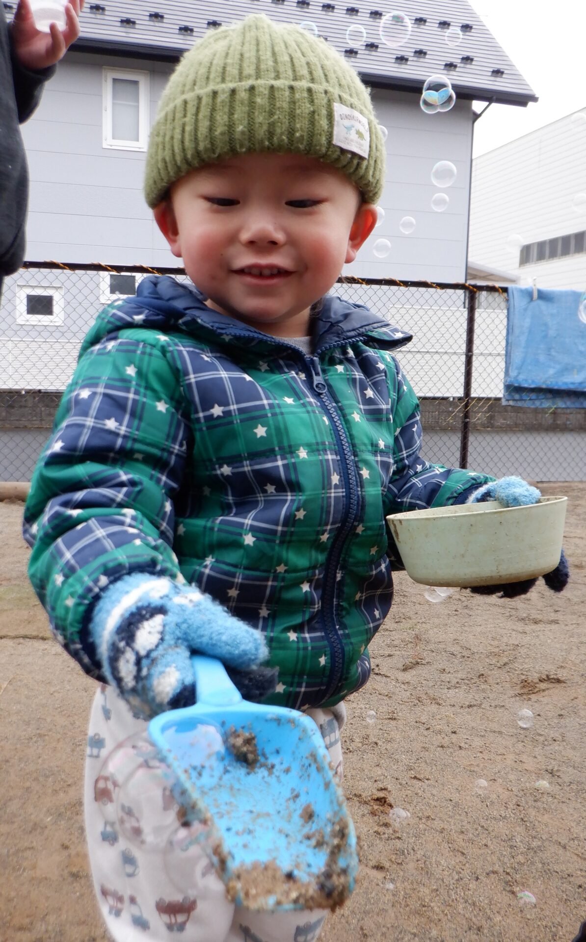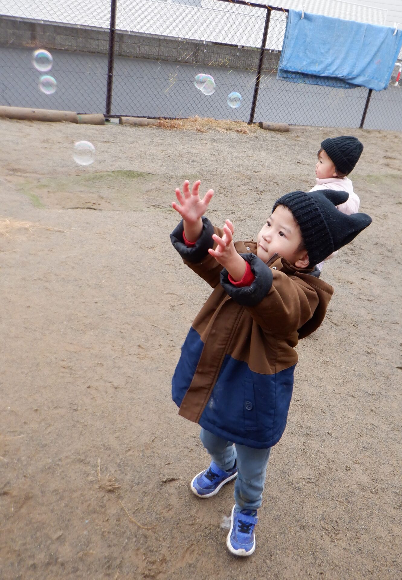 手を伸ばしてシャボン玉を捕まえようとしてみたり・・・