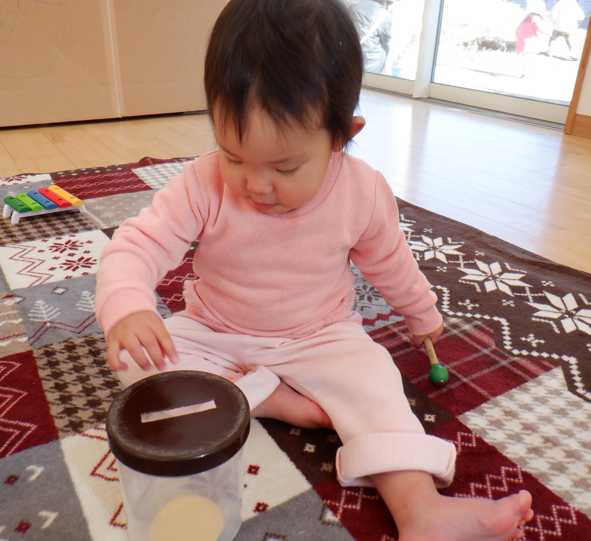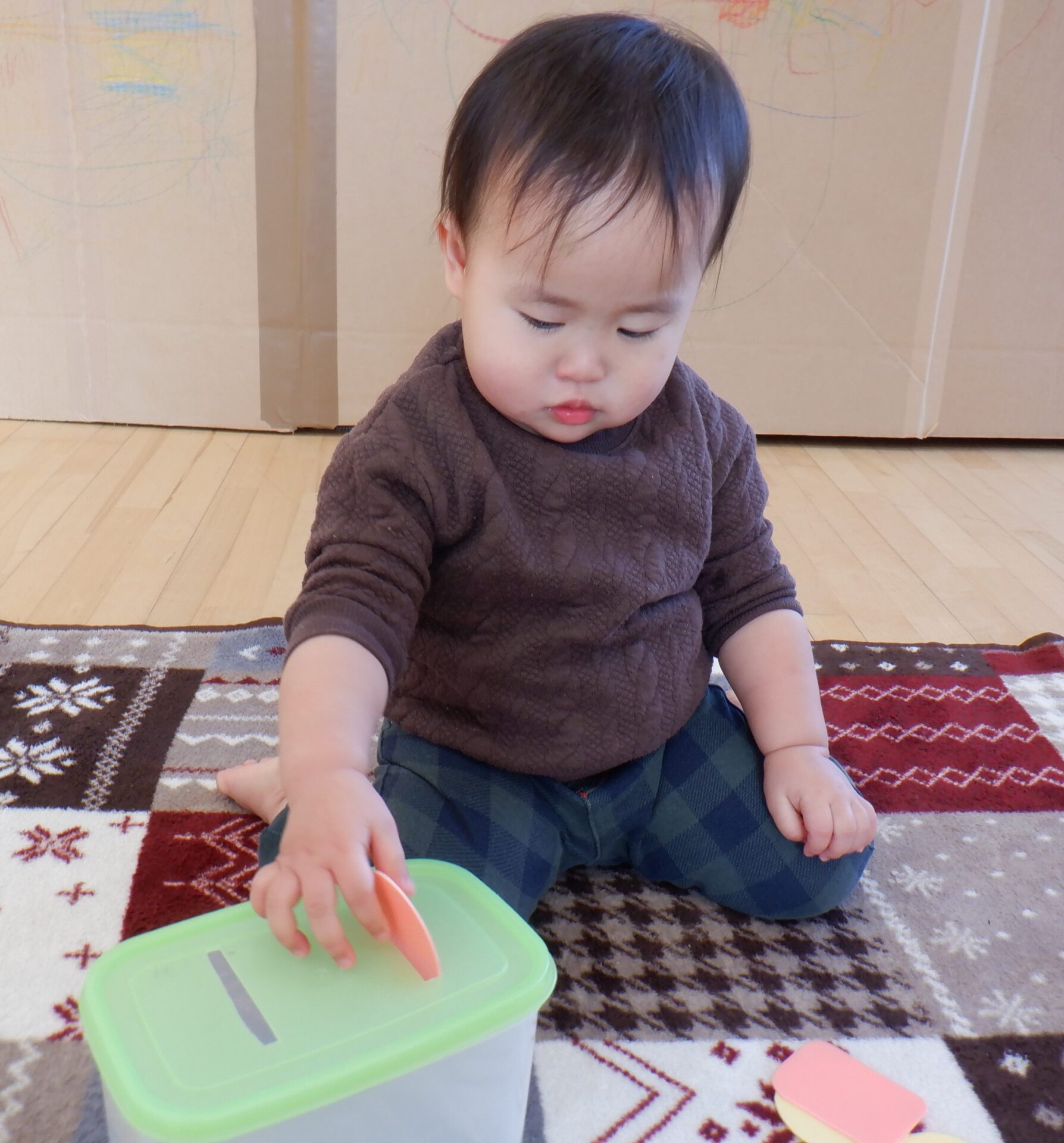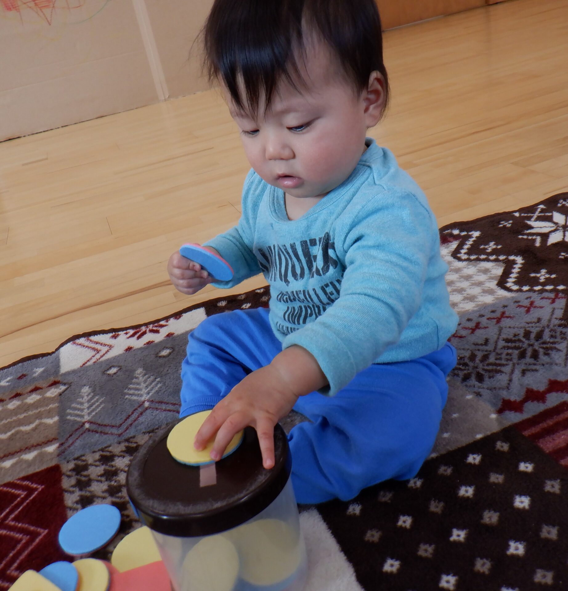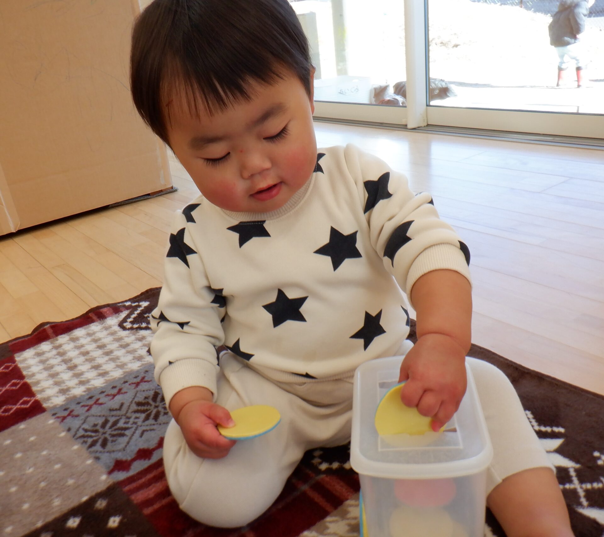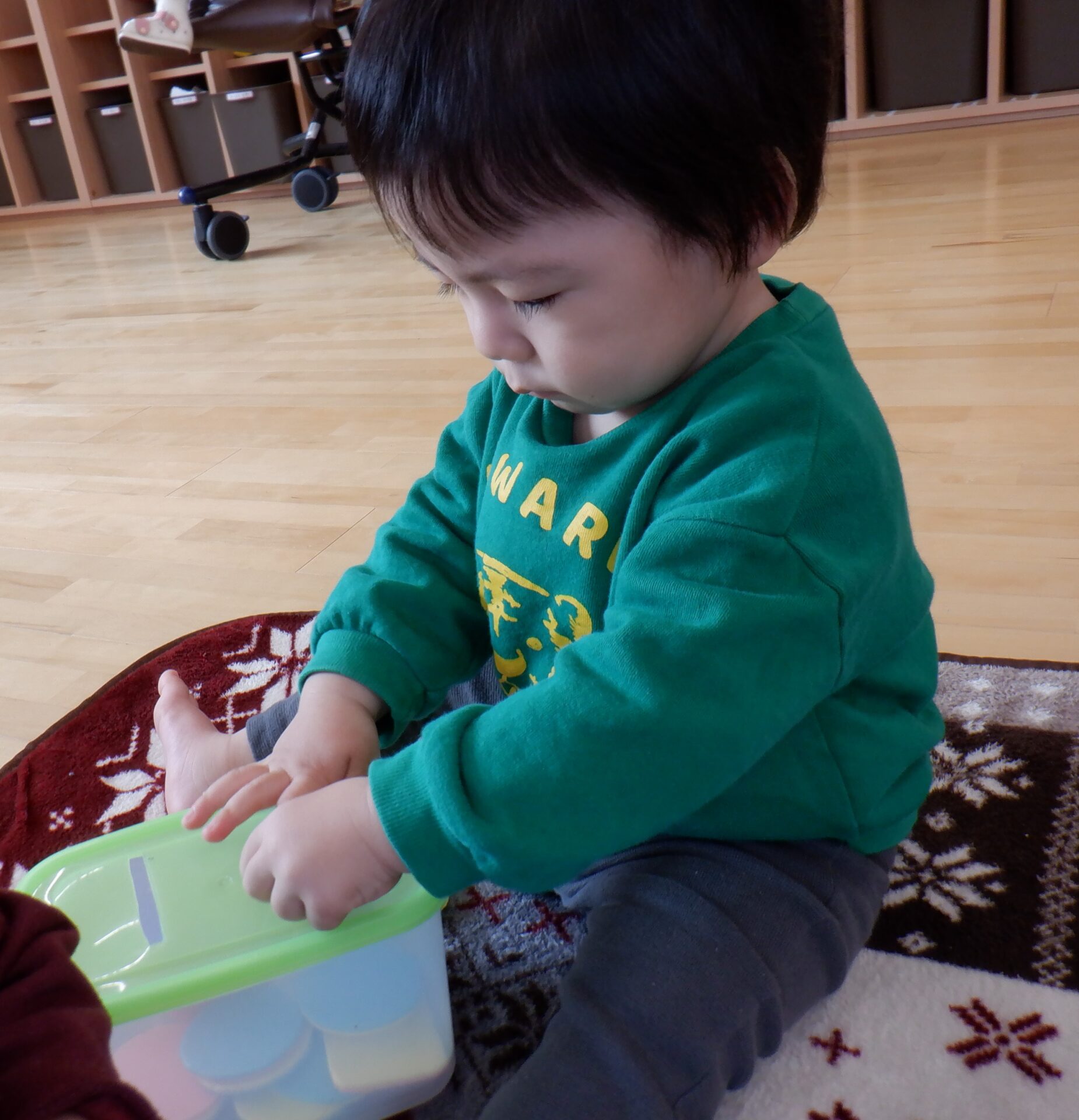 2024.01.30 あい組(0歳児) ブログ 集中して・・・ぽとん! 指先を使って、ぽっとん落としで遊びました。 穴に合わせて向きを変えながら、何回も挑戦! 集中しながら、夢中で穴に落として・・・ 「もう一回。」と繰り返し楽しむ子どもたちでした。 一覧へ戻る