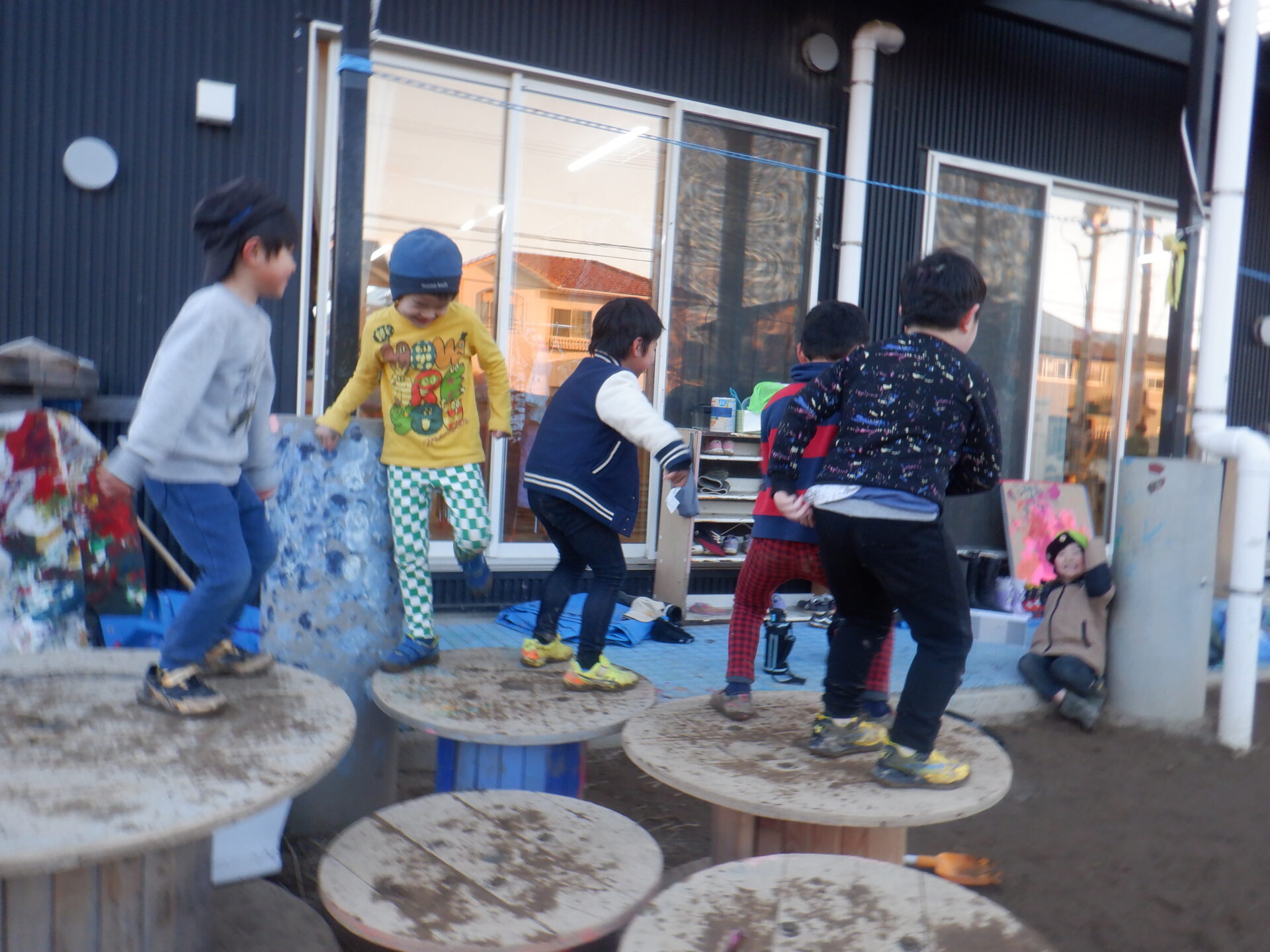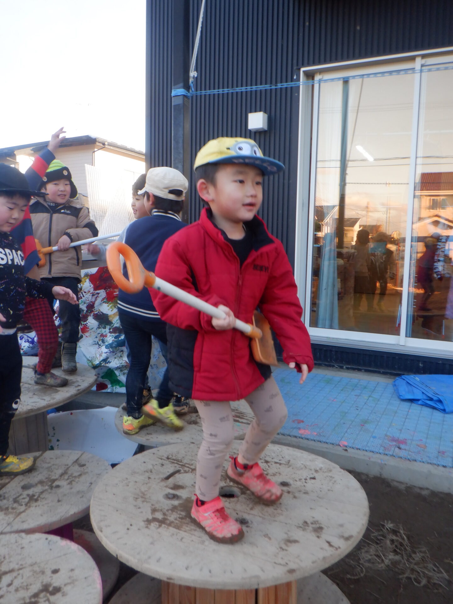 お迎えに来るまでの間、園庭では自分のしたい遊びを見つけ、そこに自然と友だちが集まり思い切り楽しんでいる子ども達です。