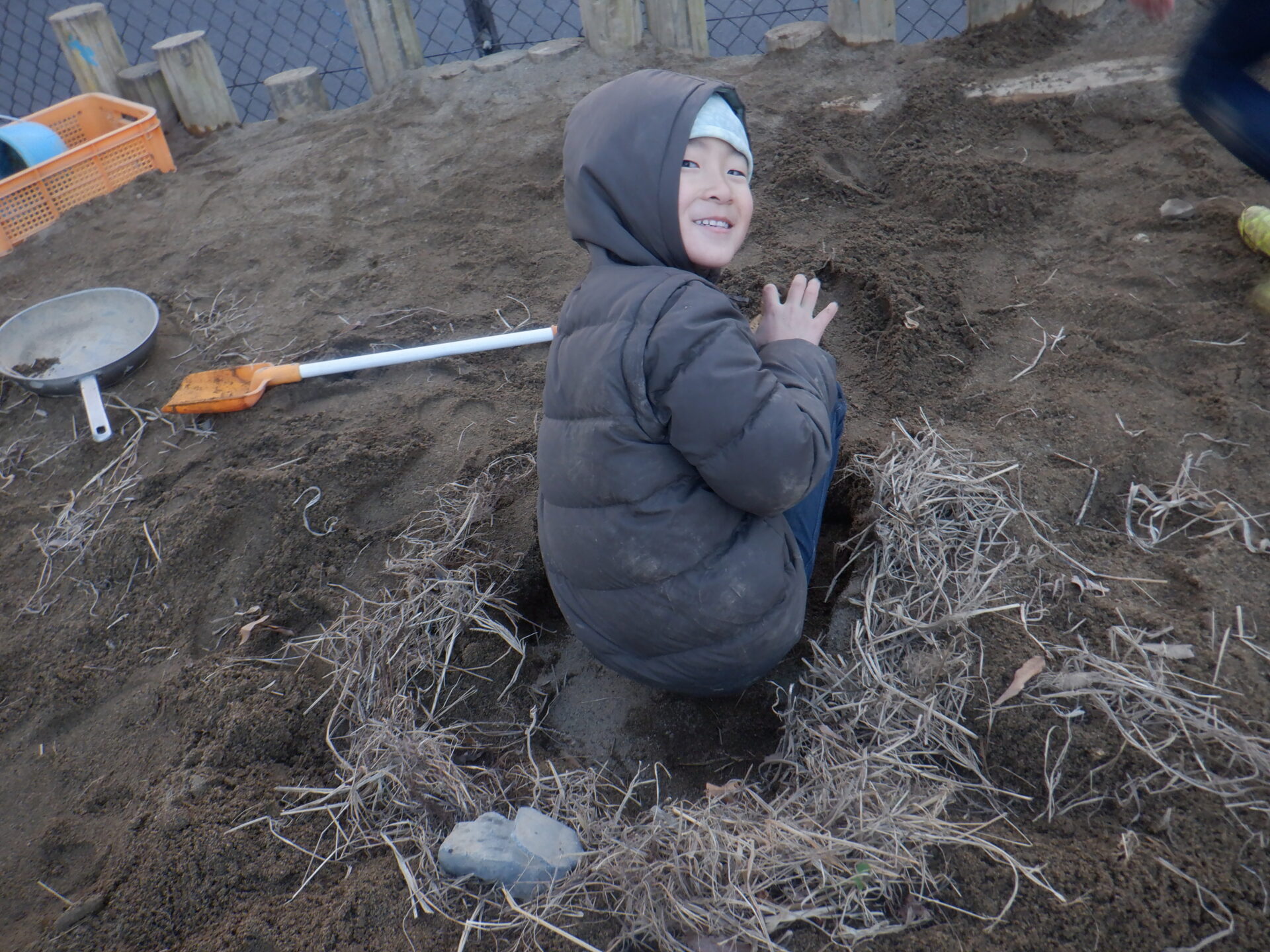 自分のお家を作ってあったかい草を敷いて、ニコッと!