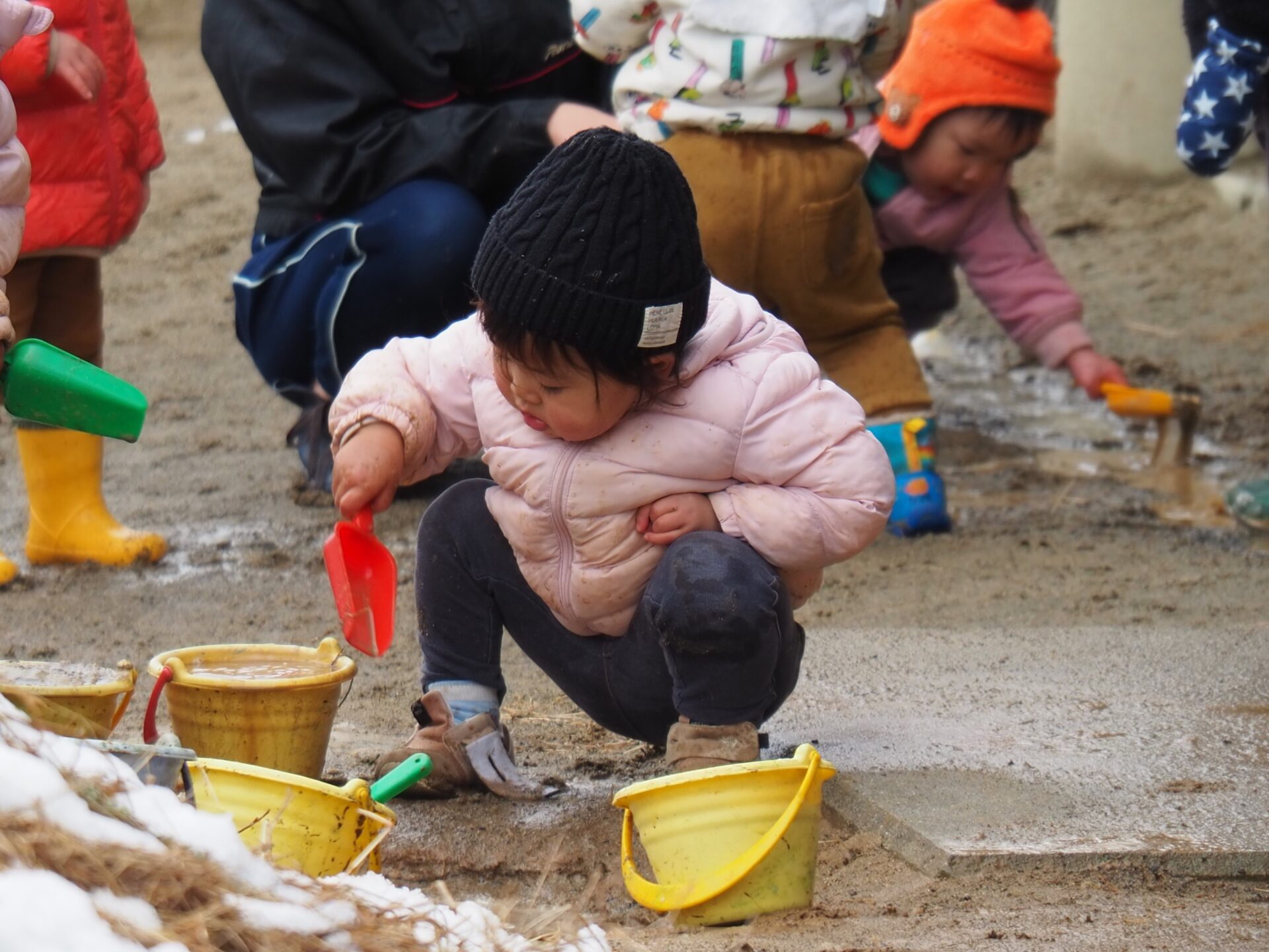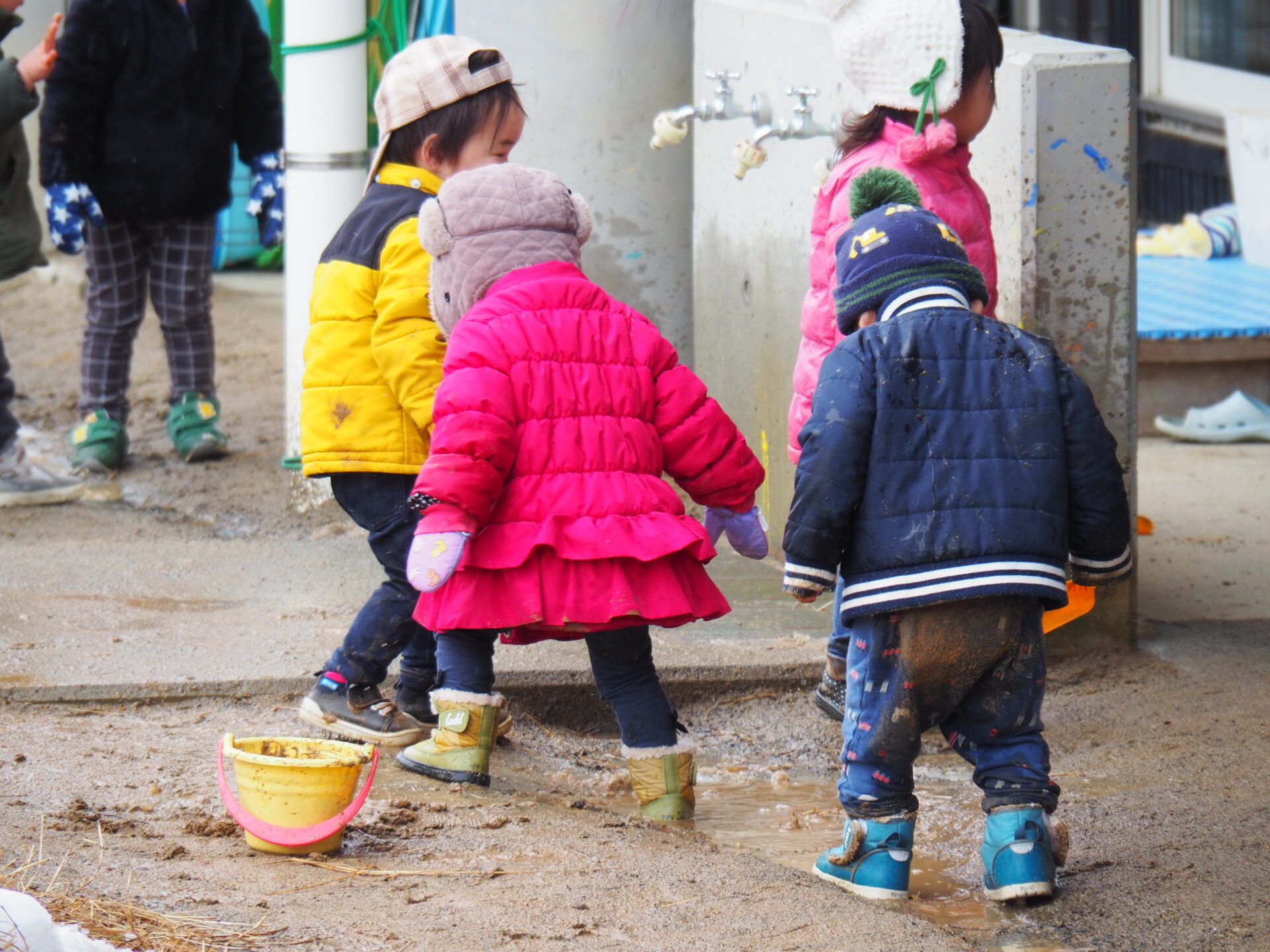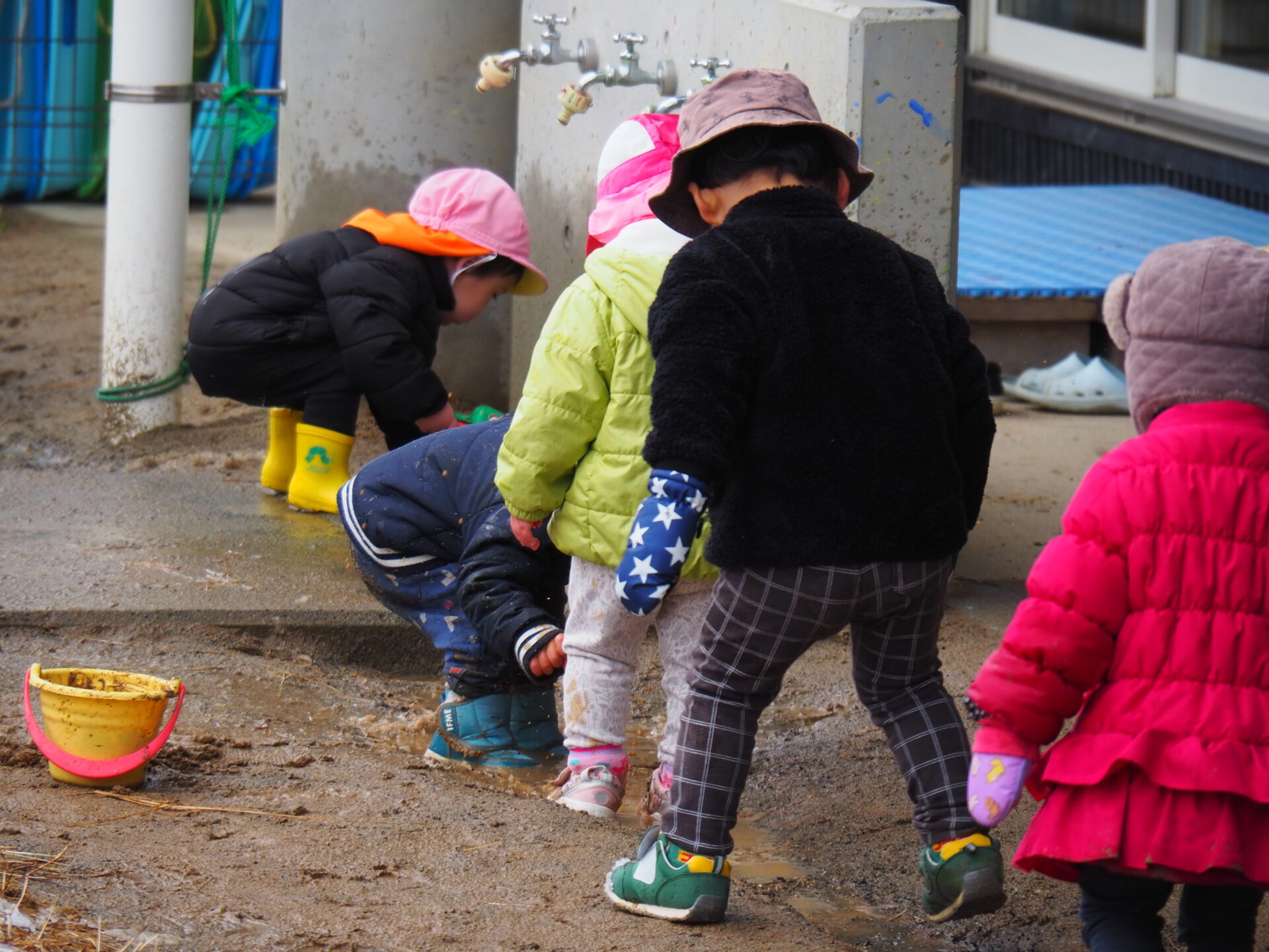 2024.02.26 ブログ 水の道 雪解けの水が、雨どいをつたってポタポタポタ。 長い水の道が出来ていることに気が付いた子ども達。 水しぶきを上げて ”びちゃびちゃ” 濡れないように ”おっとっと” ドロドロになった土も面白い! 子どもは『楽しい』を見つける天才だね! 一覧へ戻る