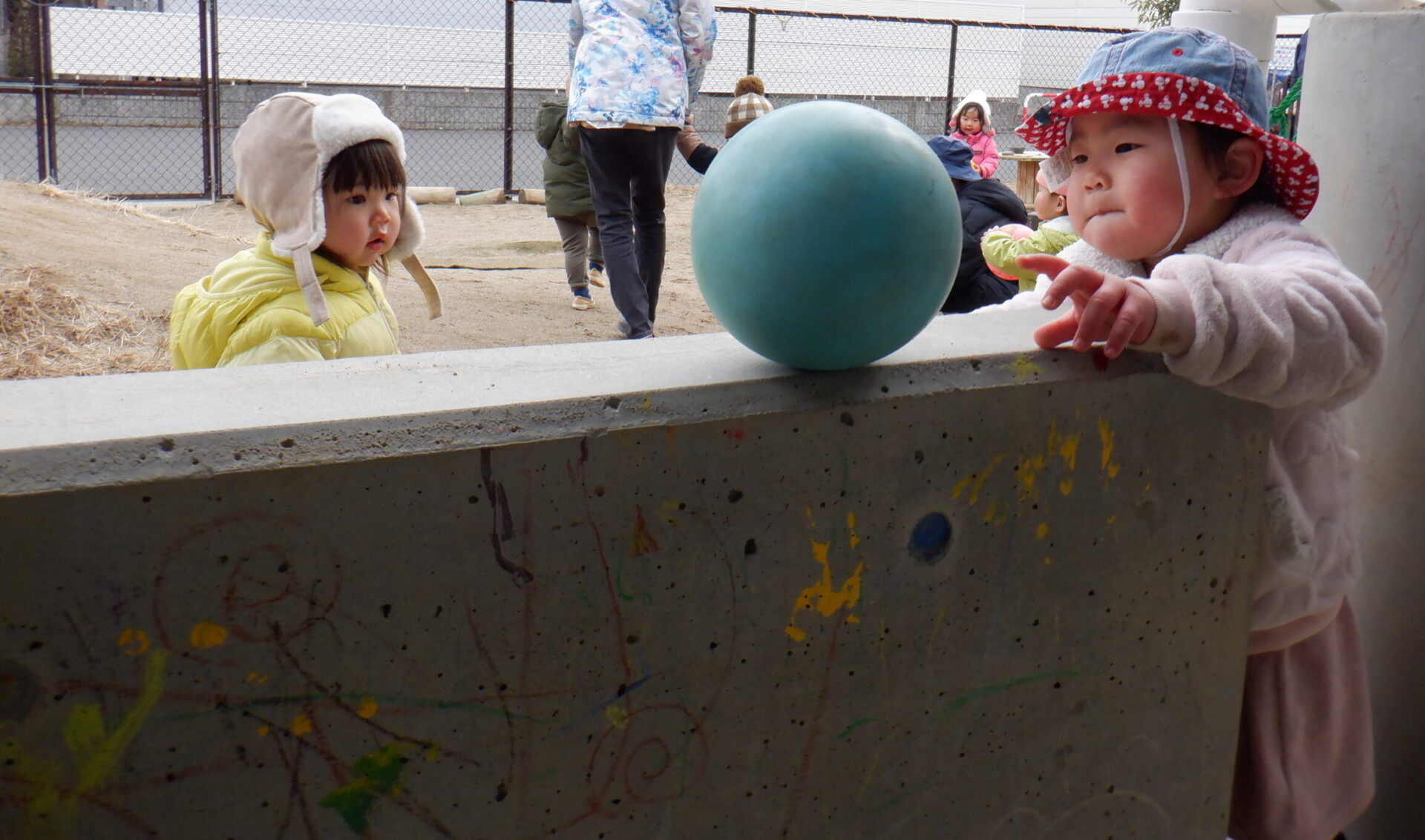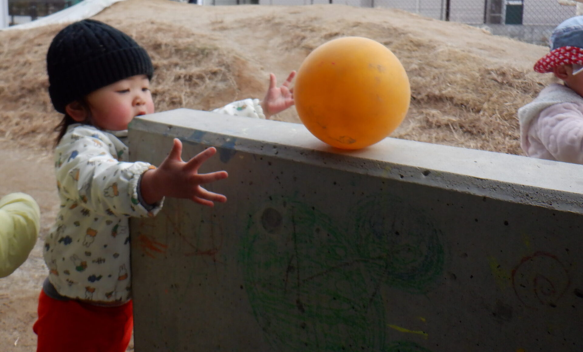 細い所を転がすのは難しいけれど、友だちと一緒に遊ぶのは楽しくて何度も挑戦します。