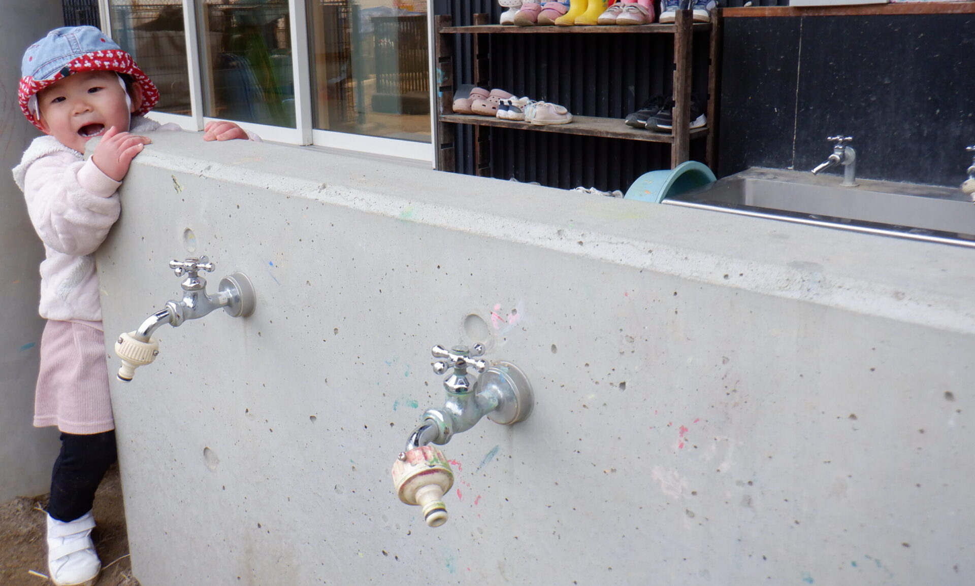 水道場で遊ぶ二人…何やら盛り上がっています。