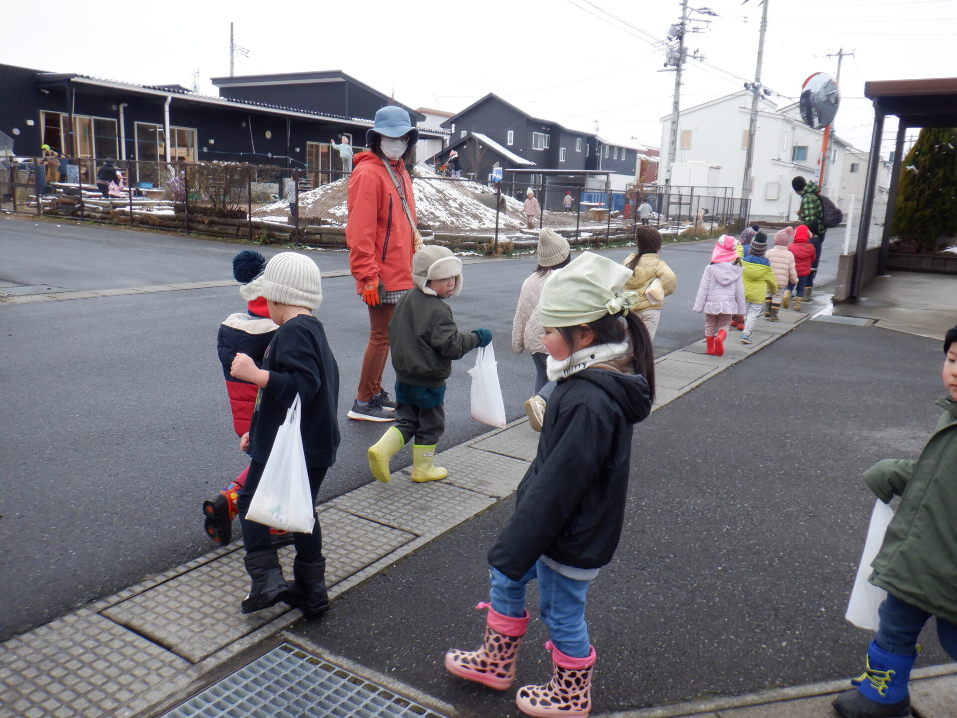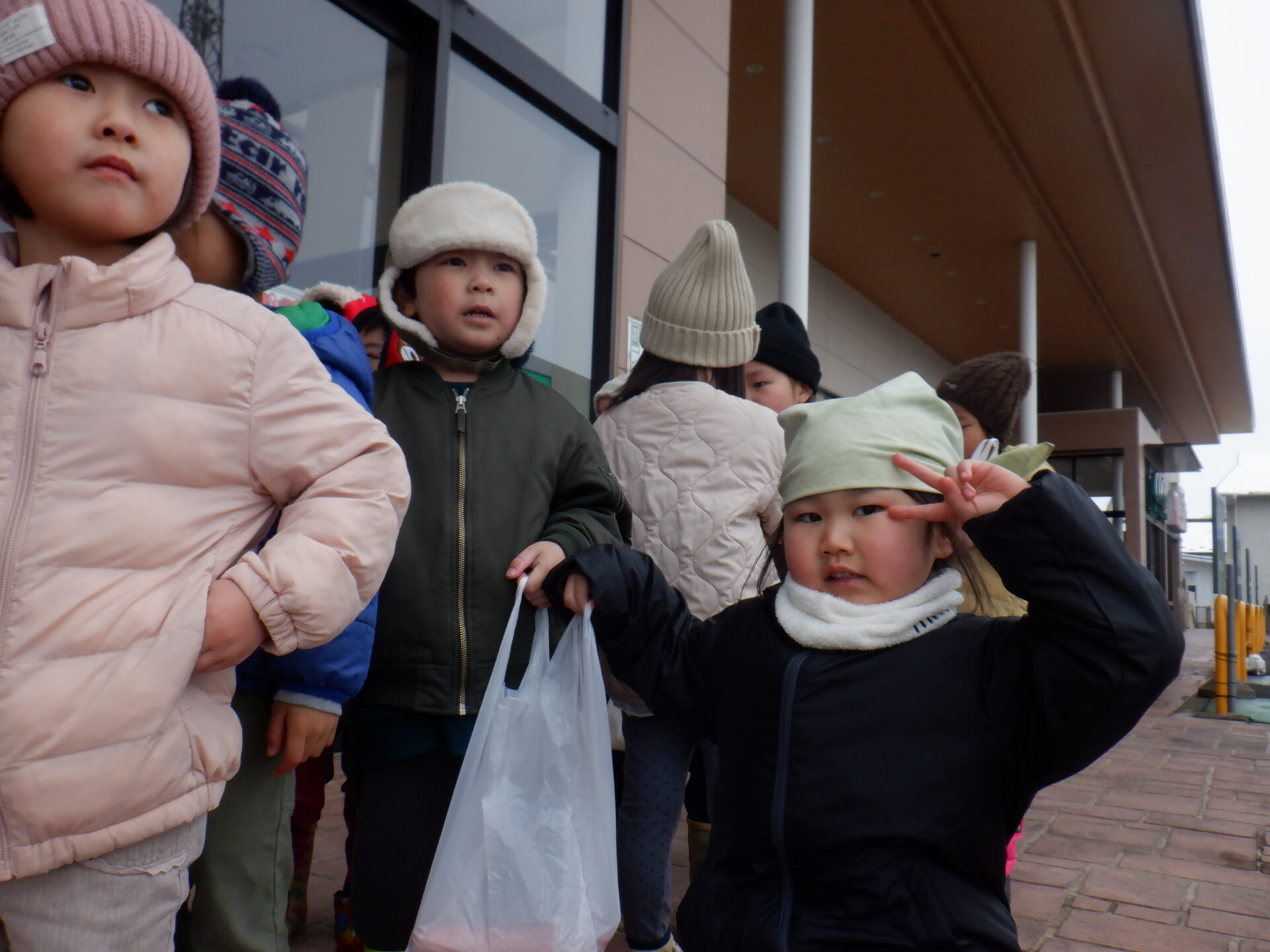 お買い物が終わると、袋をしっかり持ち、帰る準備OK!