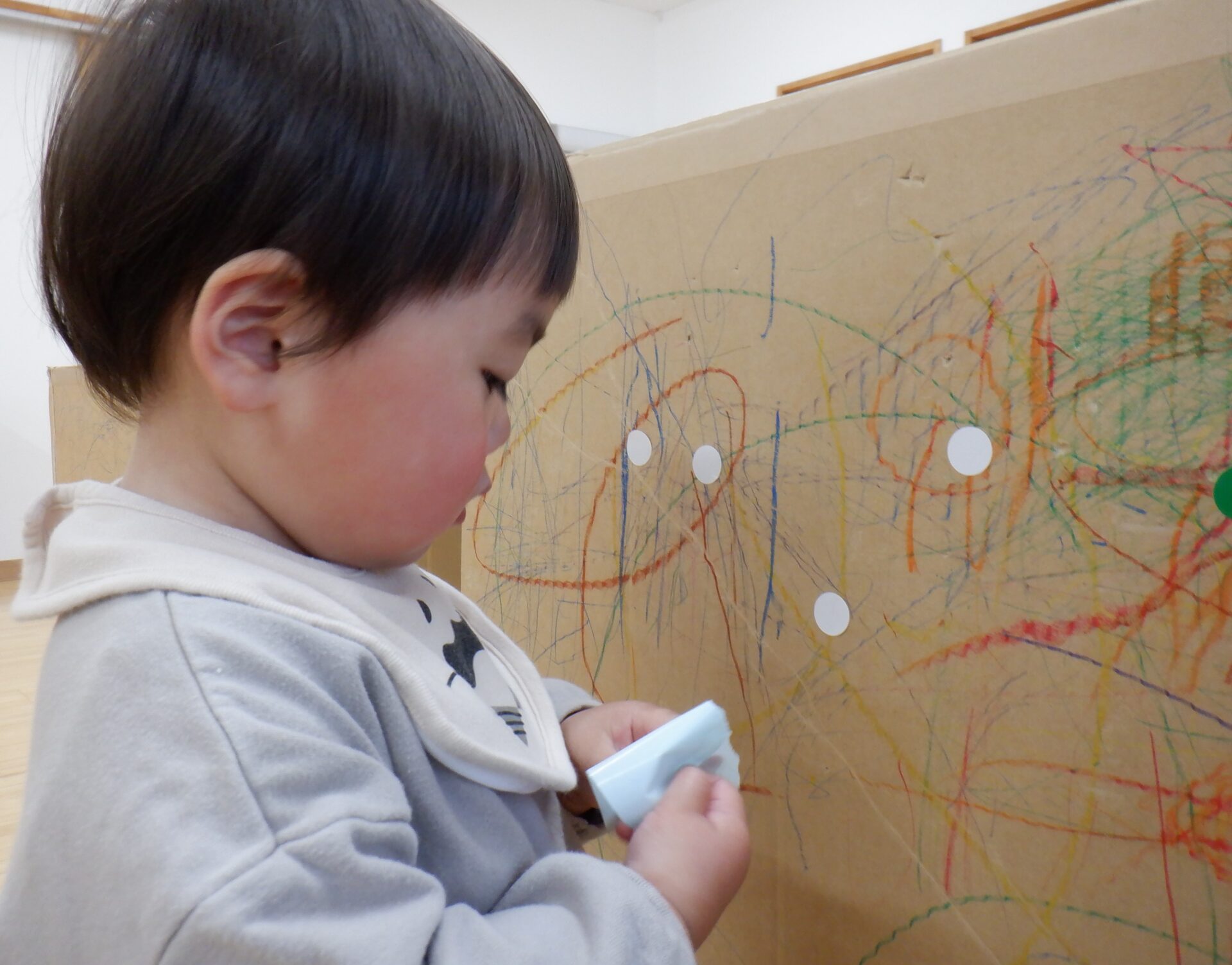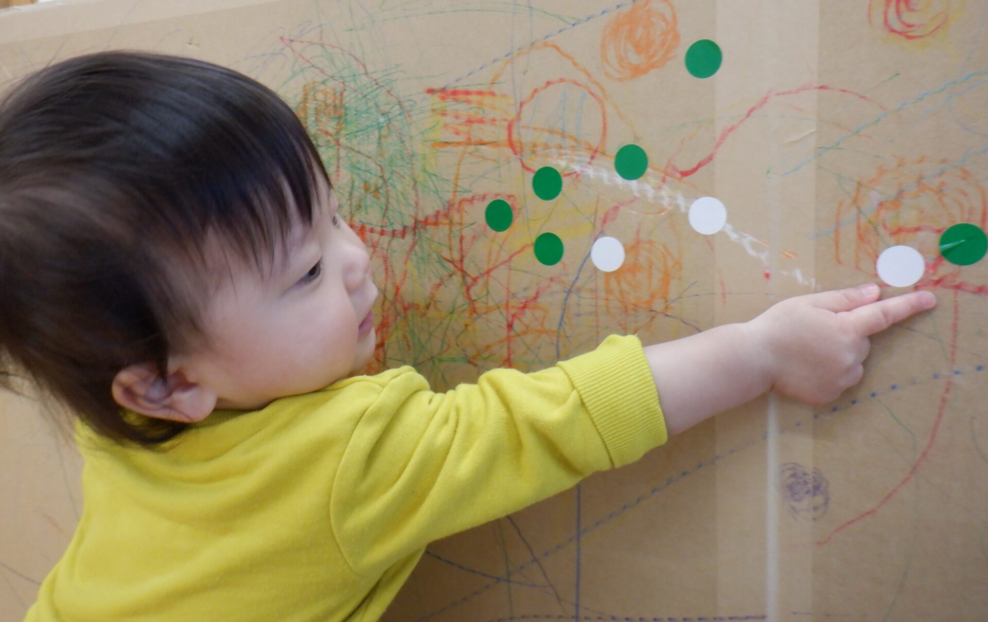 貼り終わると「きいろ!」「しろ!」と教えてくれました。