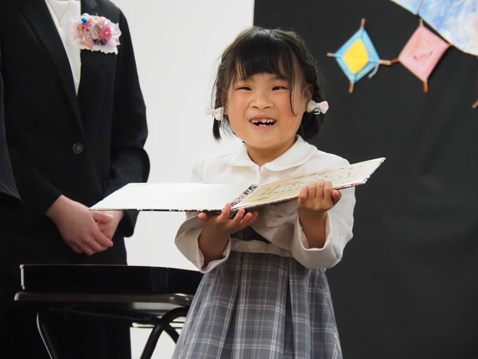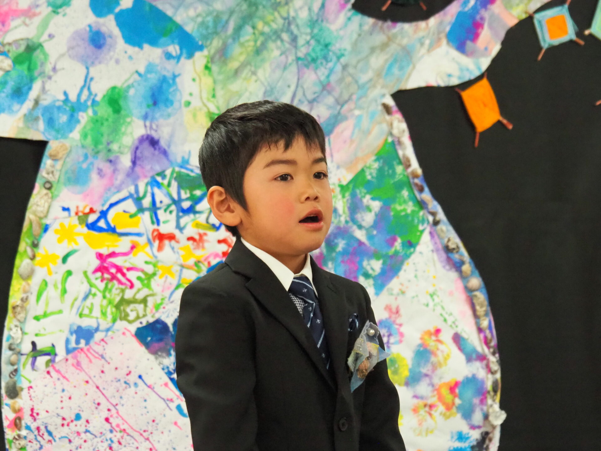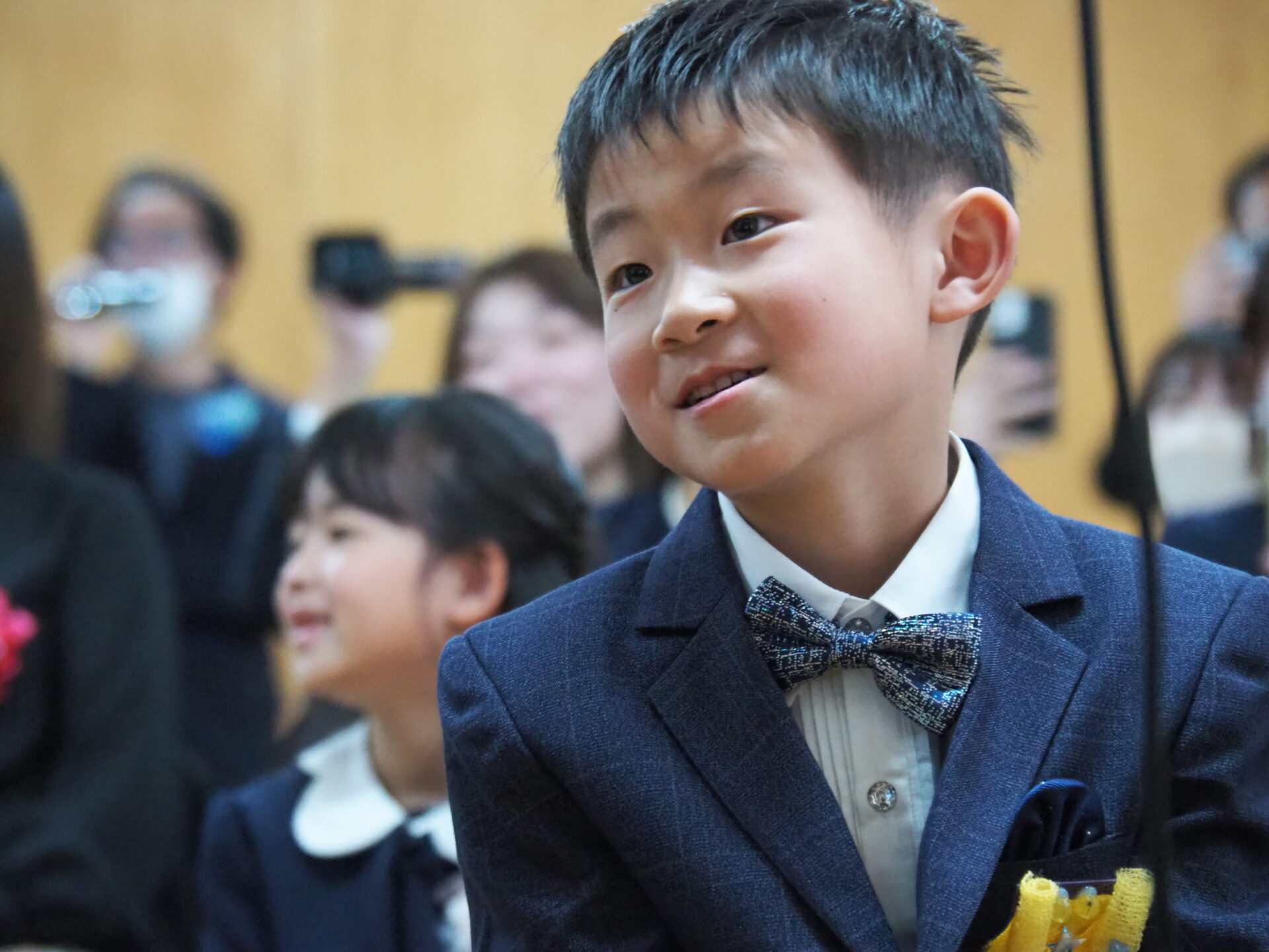 厳かな雰囲気の会場に、ちょっぴり緊張気味の様子です。