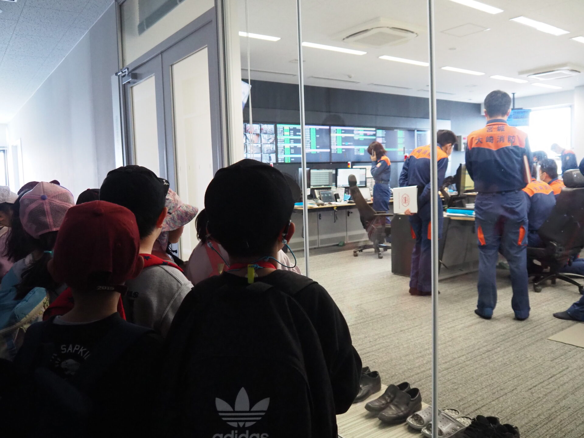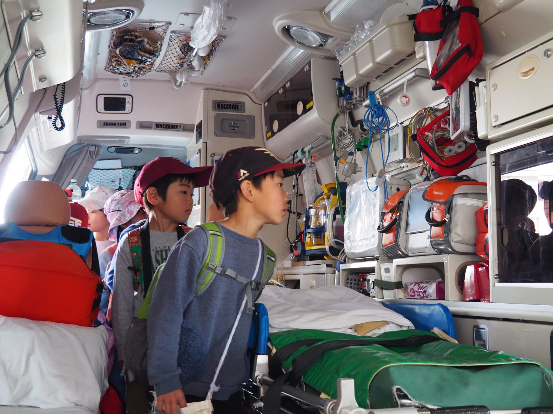 指令室や出動準備室、救急車の中を見学して最後は消防士さんと一緒に記念写真撮りました!