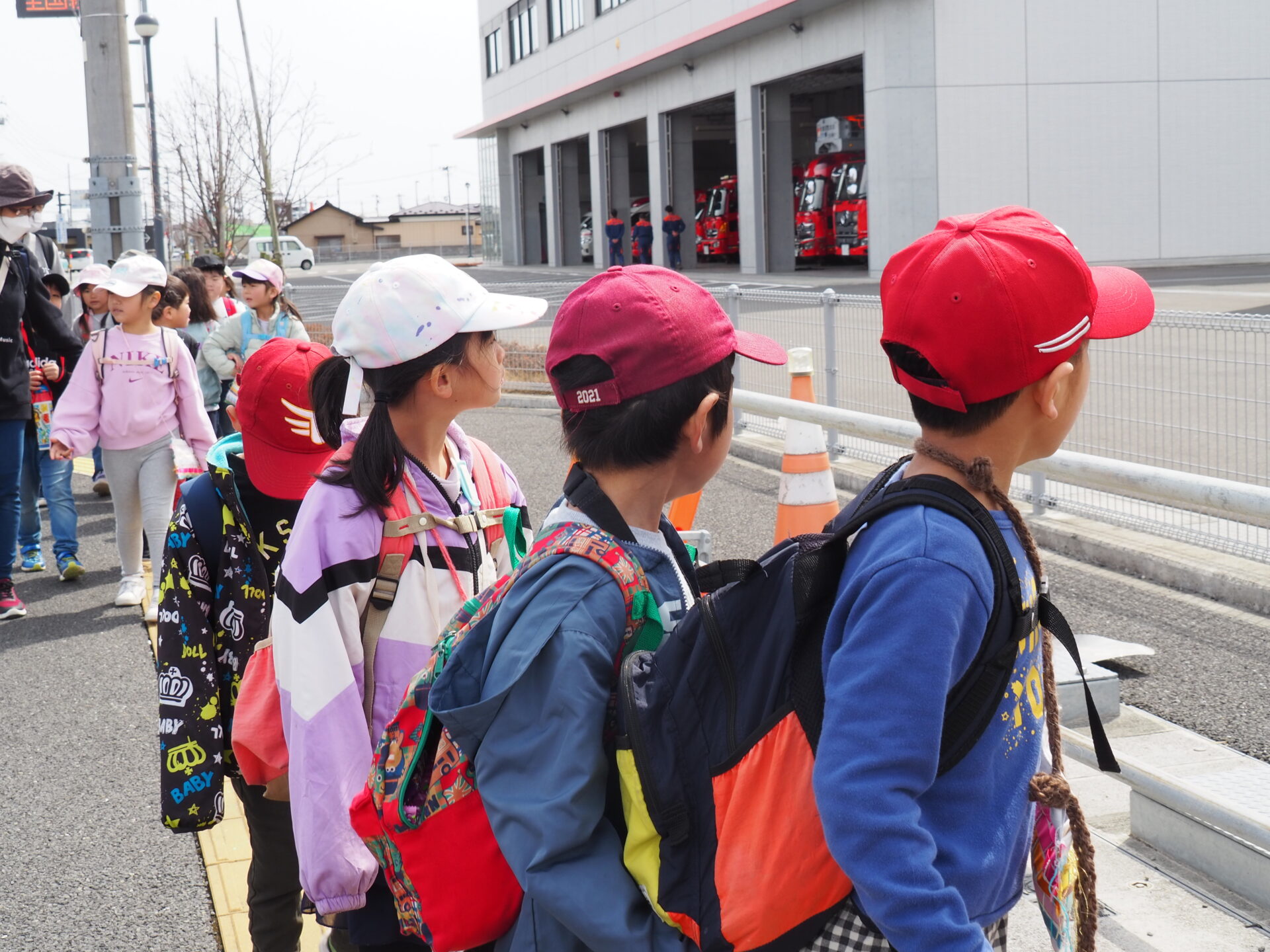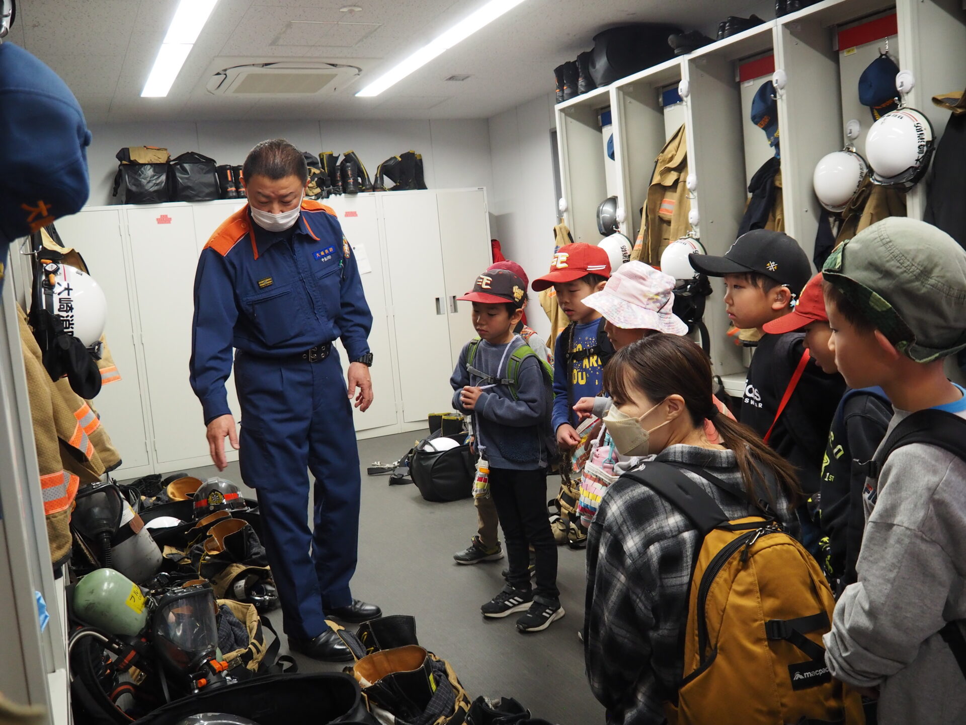 消防署に着くと、説明してくれた消防士さんの声にしっかりと耳を傾けています。