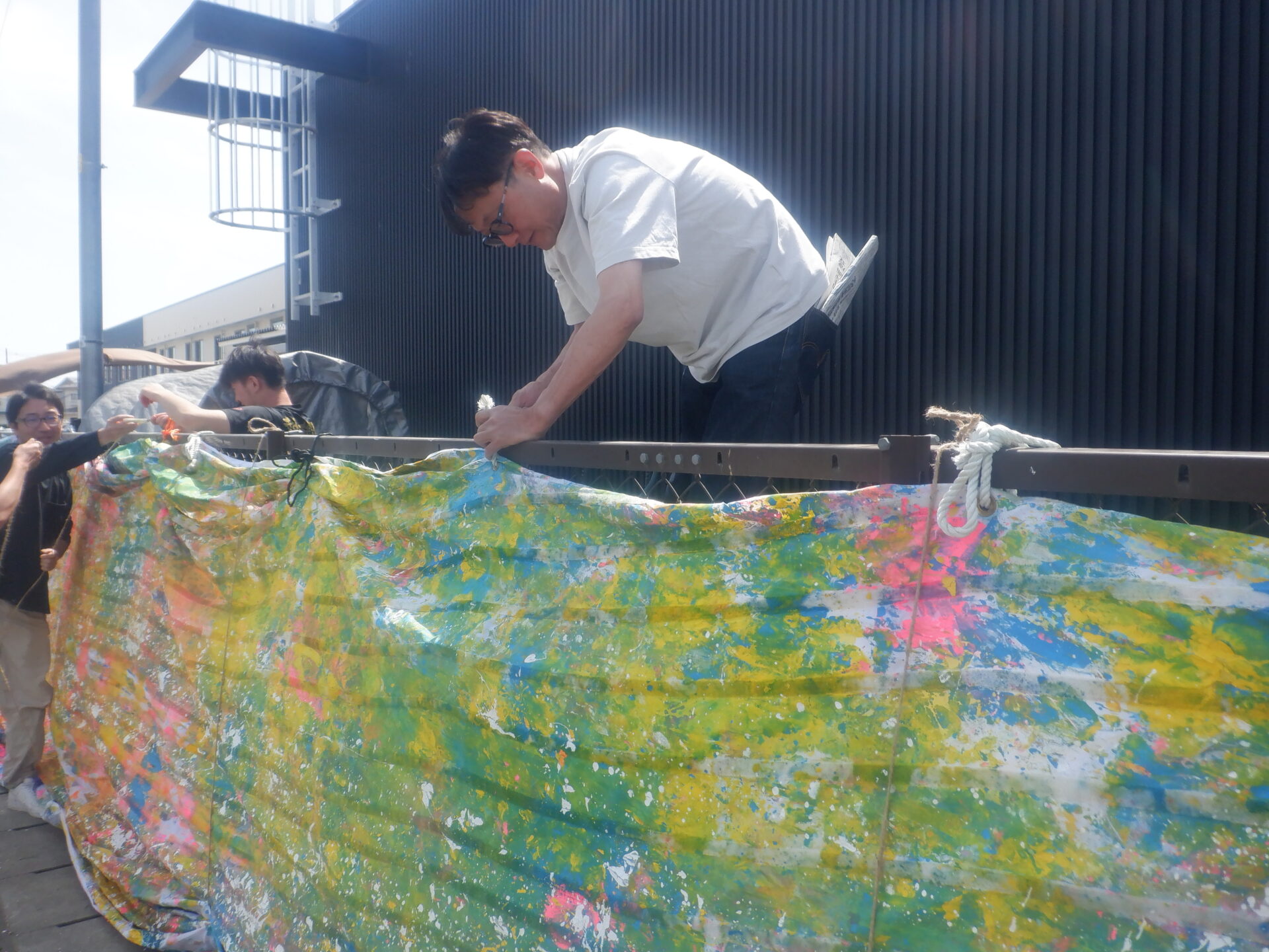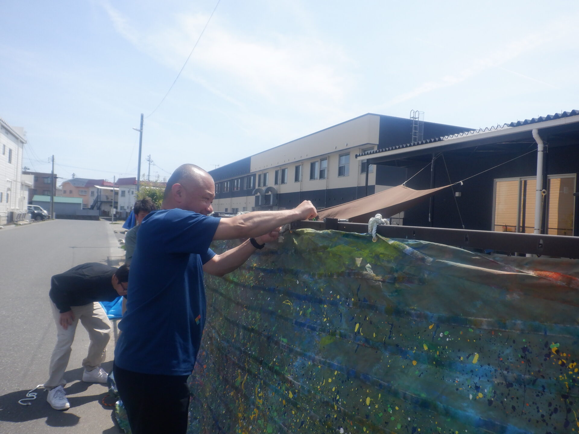 翌日の設置作業は、男会メンバー+宮城の男性職員と共同で設置。