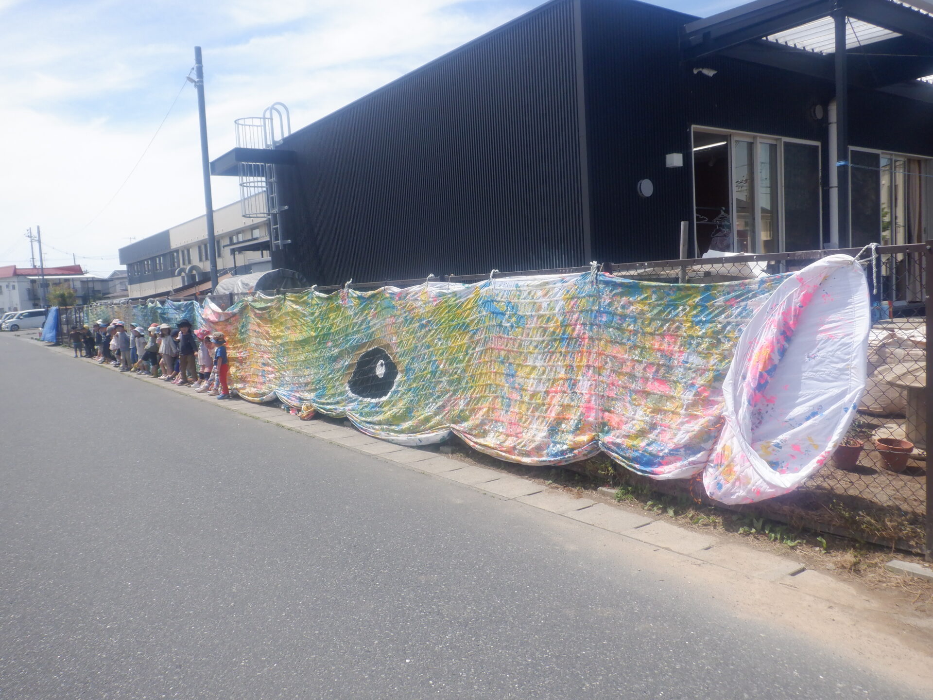 手倉田くじら保育園で泳いでいた「くじらのぼり」がバオバブ保育園にお引越しです。