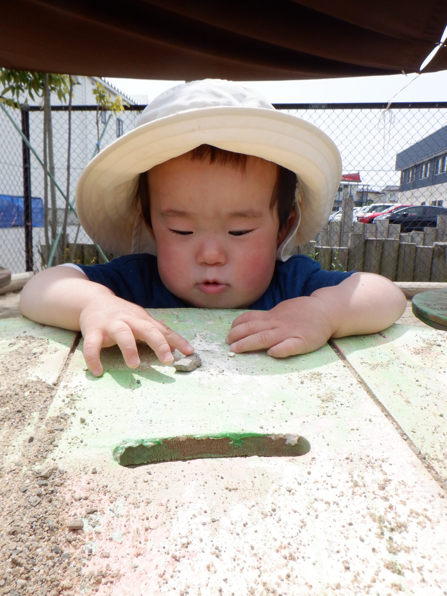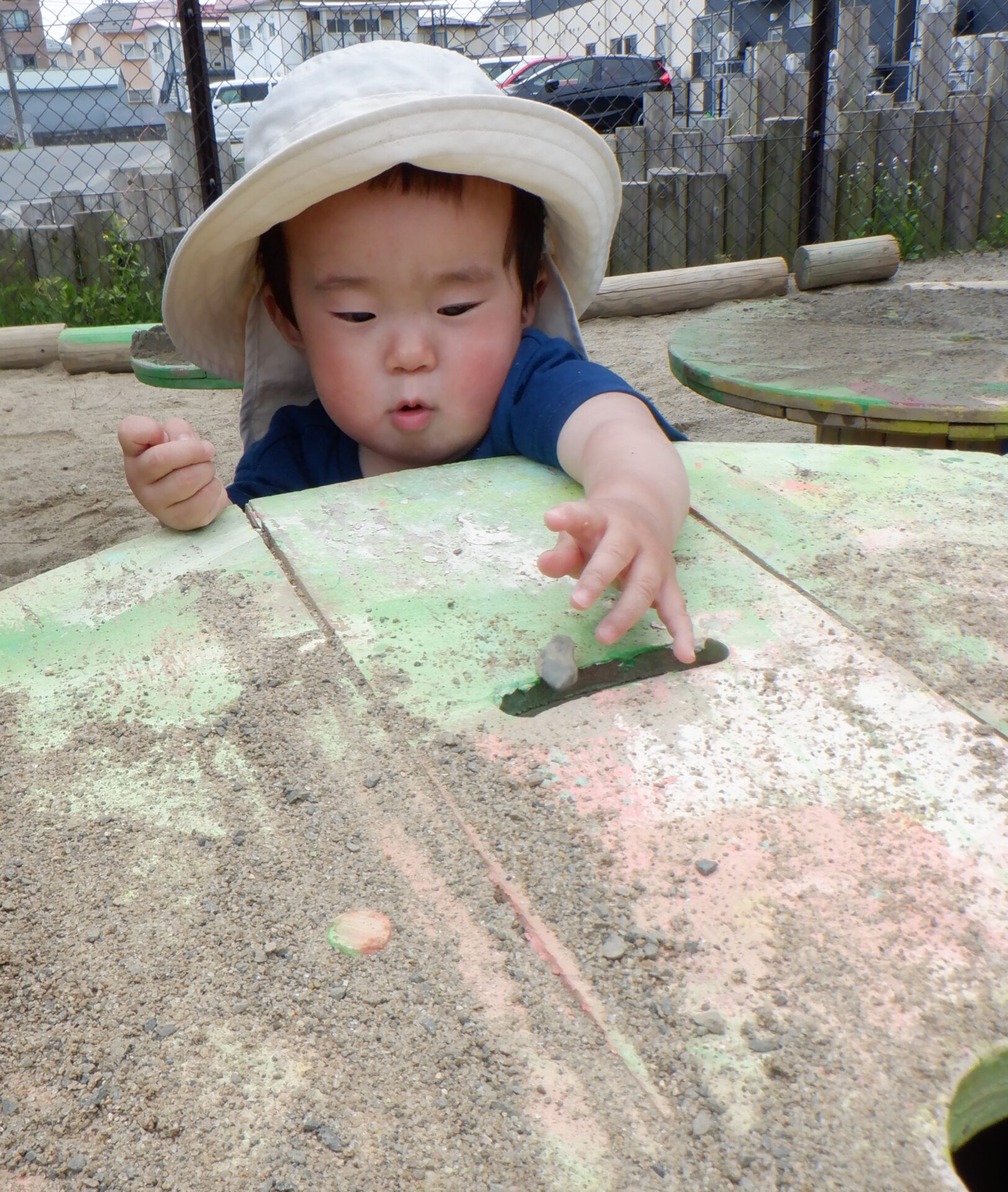 2024.06.06 あい組(0歳児) ブログ 無限ぽっとん落とし 遊んでいる中で、ふと気が付いた穴。 小石を入れると…ぽとん。 夢中になって入れていきます。 手持ちの小石が無くなっても大丈夫! 保育者に拾ってもらい…。 もう一回! 何度でも楽しめちゃいます! 一覧へ戻る