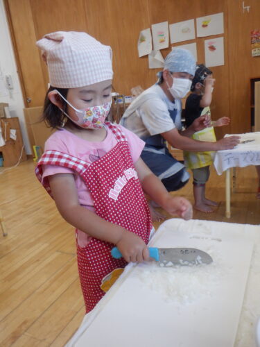 なかなかの包丁さばきに、栄養士も職員もビックリ!!