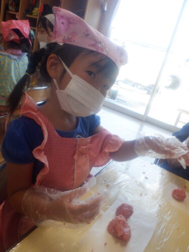 ②豚ひき肉と炒めた玉ねぎを一緒にこねていきます。