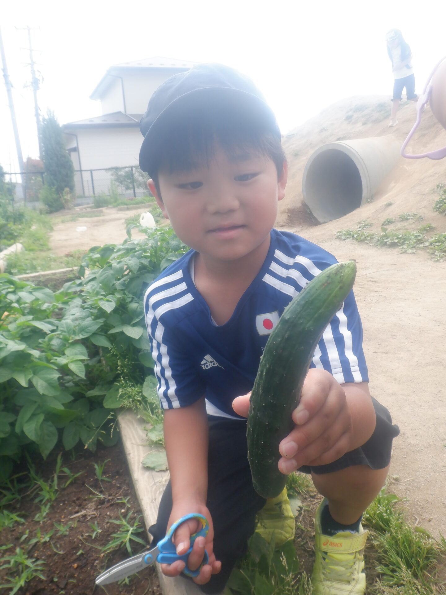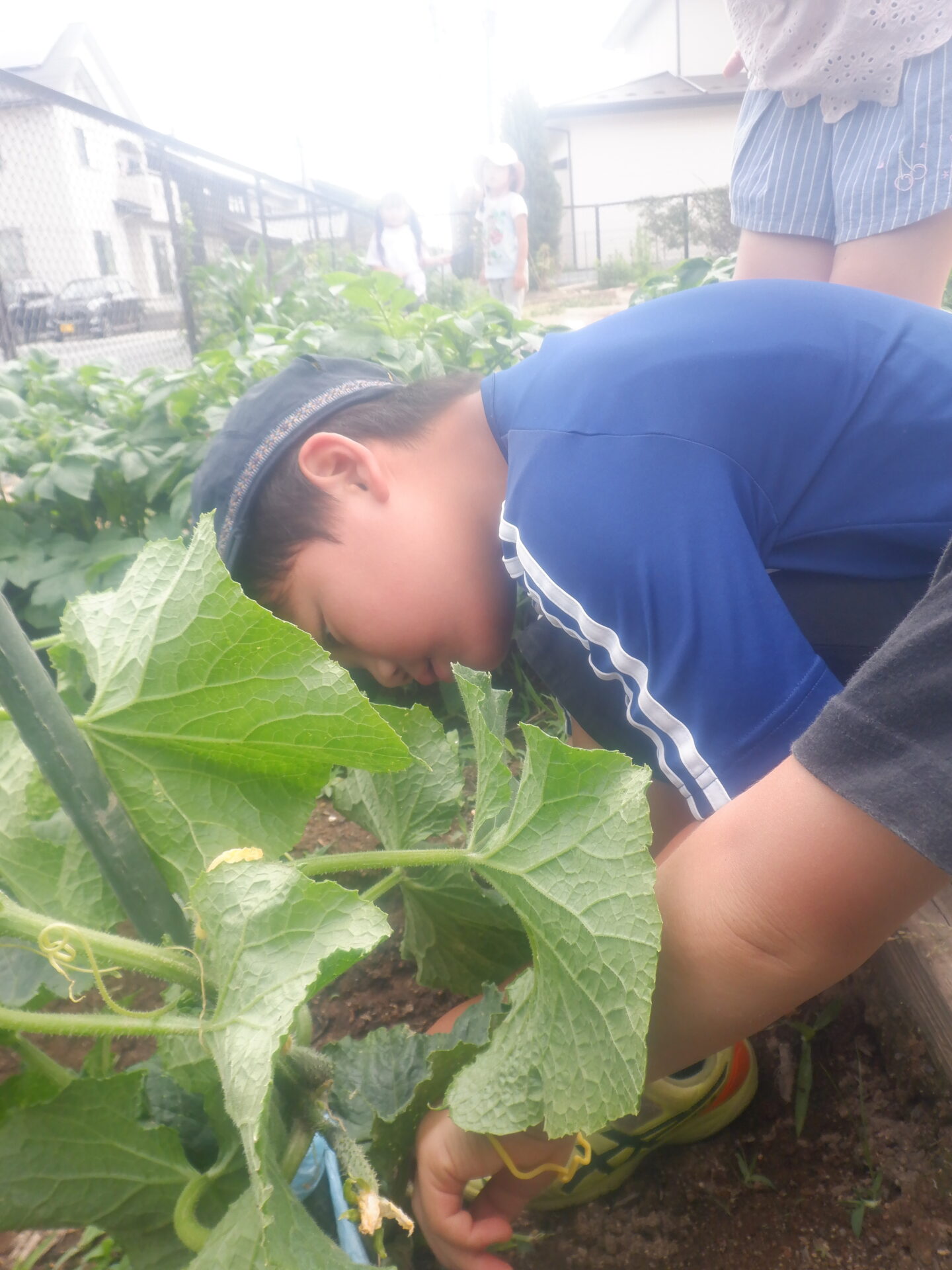 2024.06.13 にじ組(4歳児) バオバブ組(5歳児) ブログ 待ちに待った… 毎日畑に水をあげたり草取りをしたりと、野菜のお世話をしている子どもたち。 花が咲き、実が出来てきて大喜び! そしてついに…。 大きなきゅうりを収穫しました! どうやって食べようかな…。 楽しみはまだまだ続きます。 一覧へ戻る