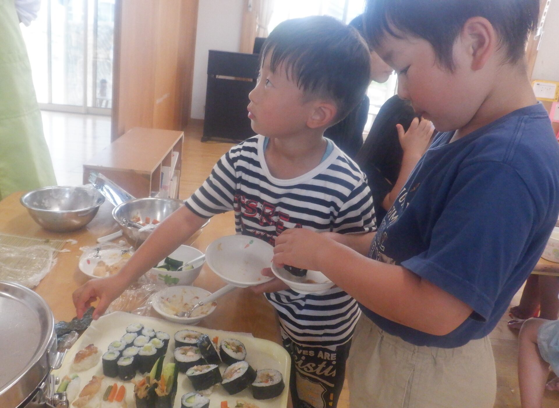きゅうりだけでは物足りず、”切り干し大根の軍艦巻き”と”鶏肉のマーマレード焼き”も握り寿司にしてみました。(全部を巻いた太巻き寿司も登場!!)